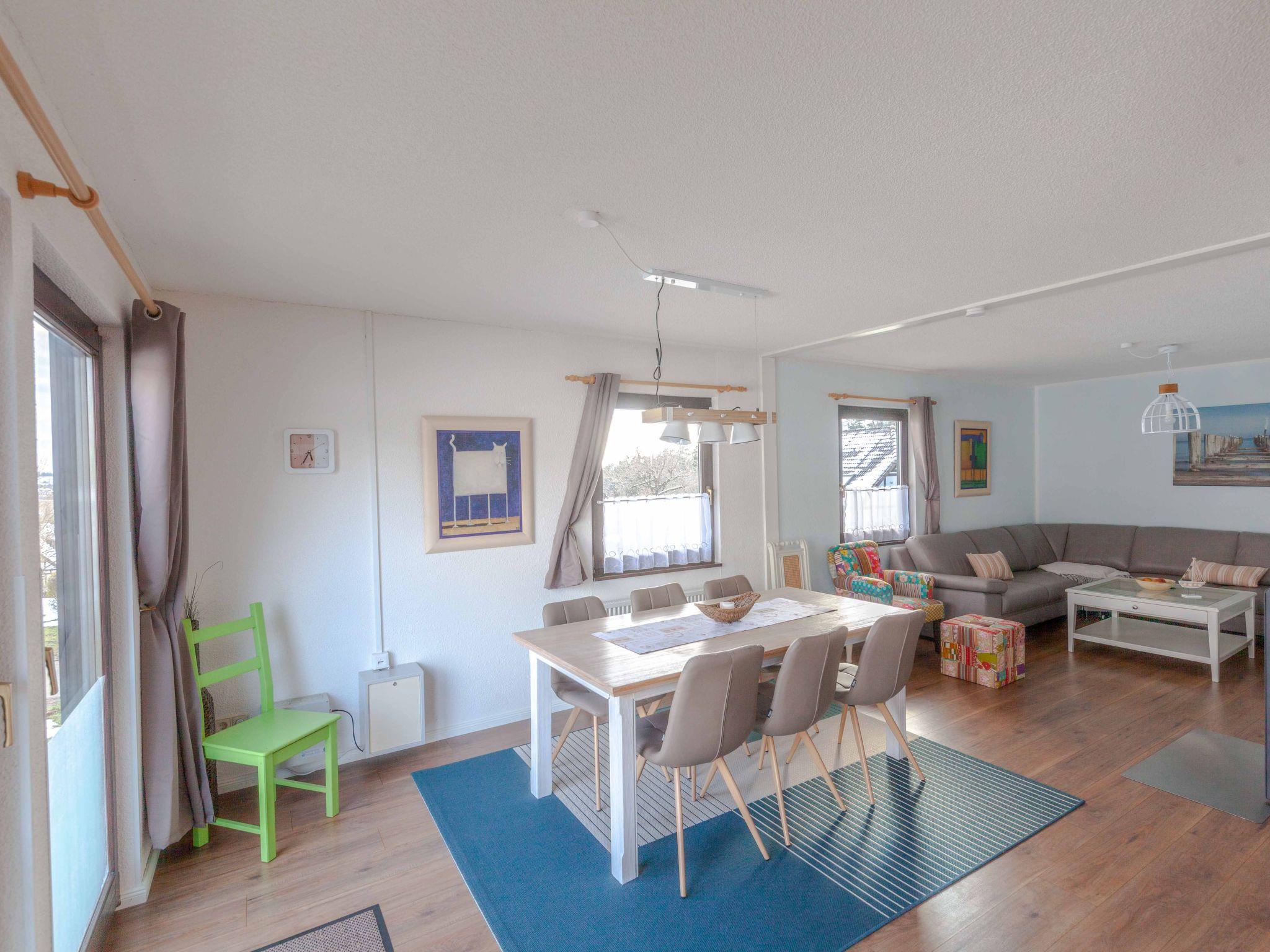Outside, you will find an idyllic lawn and patio area enclosed by a 1.20 metre high picket fence for your exclusive use, which is accessible both via the patio door of the living area and via a garden gate. Equipped with garden furniture and a parasol, the garden area also offers various play equipment for children, which can be used under parental supervision. Up to three well-behaved, house-trained dogs are welcome to explore nature together.