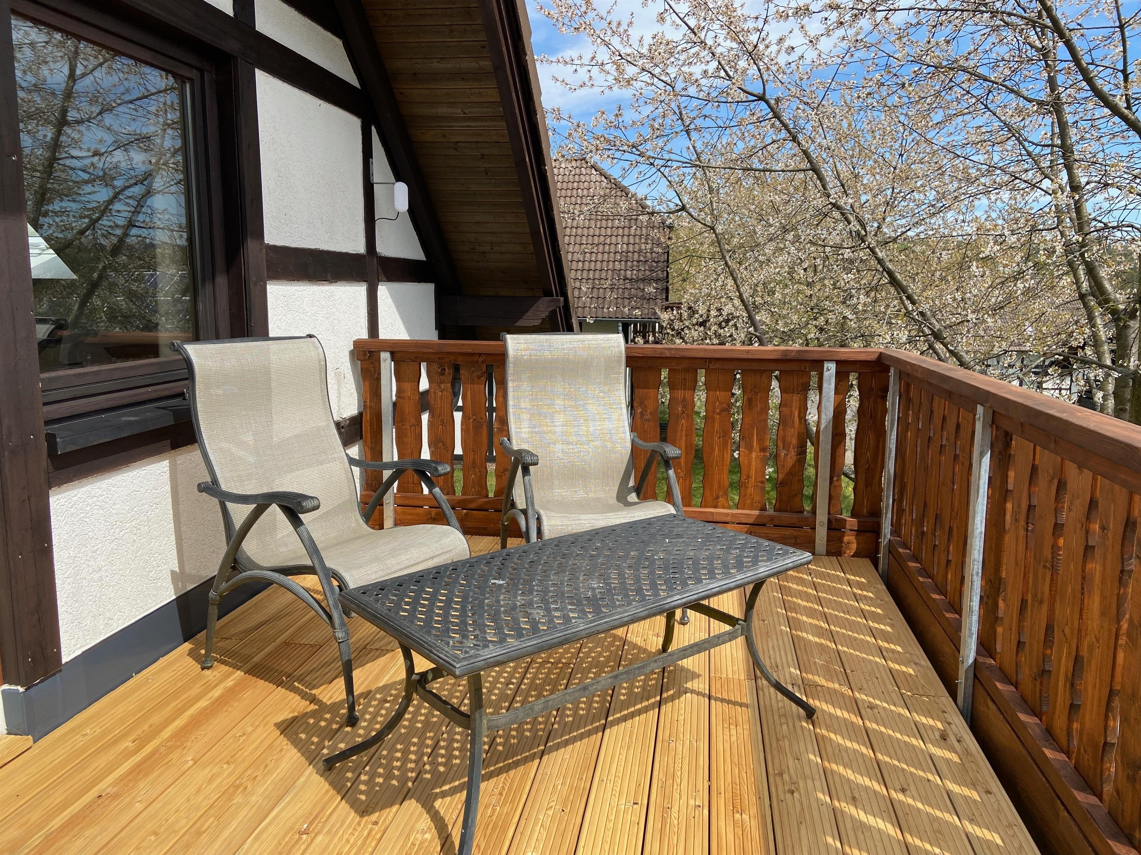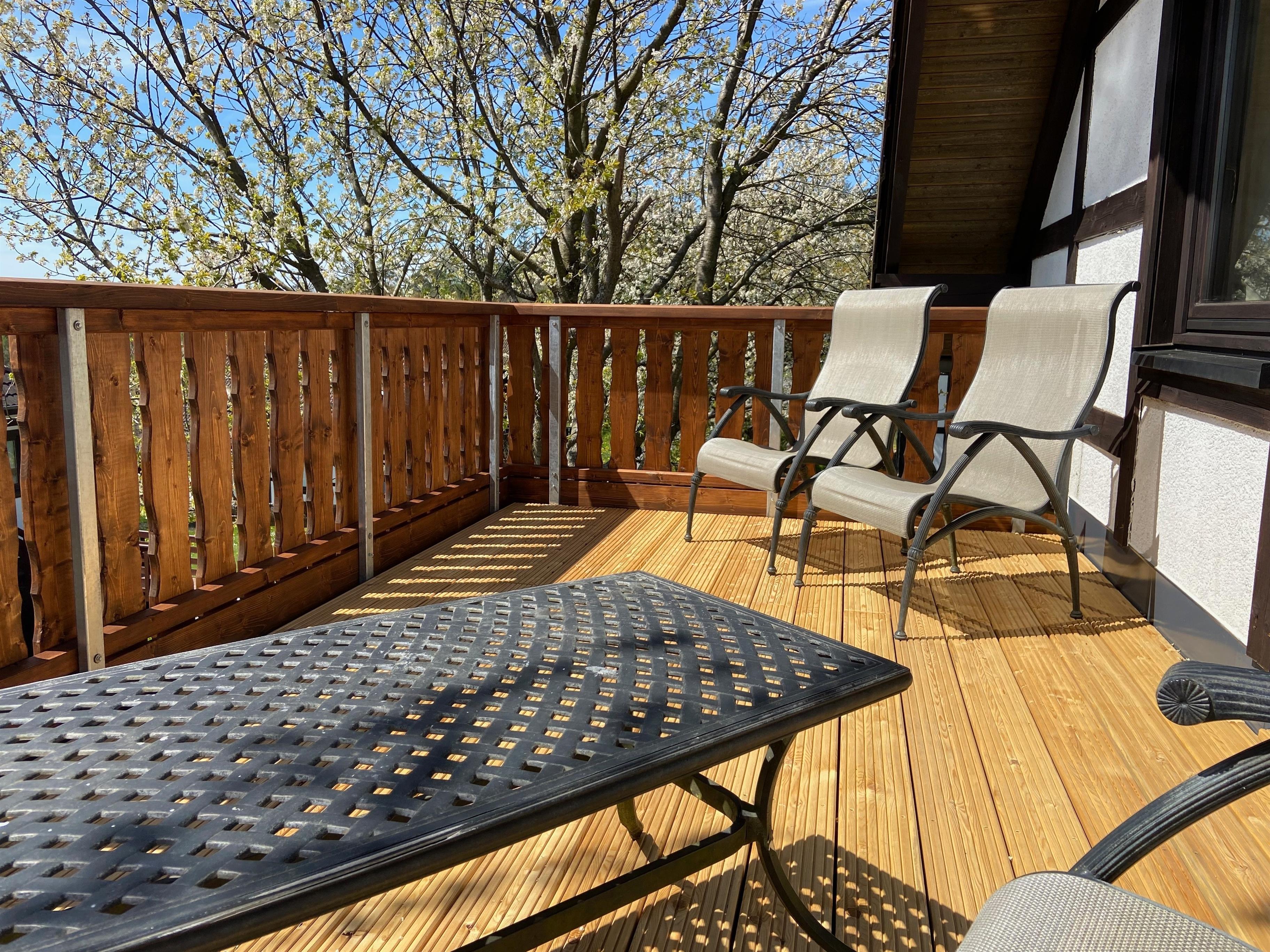 Auf dem Balkonbereich finden Sie einen Tisch mit 4 Sesseln vor. So können Sie auch gemütlich Ihr Frühstück auf dem Balkon einnehmen oder die Abendsonne bei einem Glas Wein genießen.
