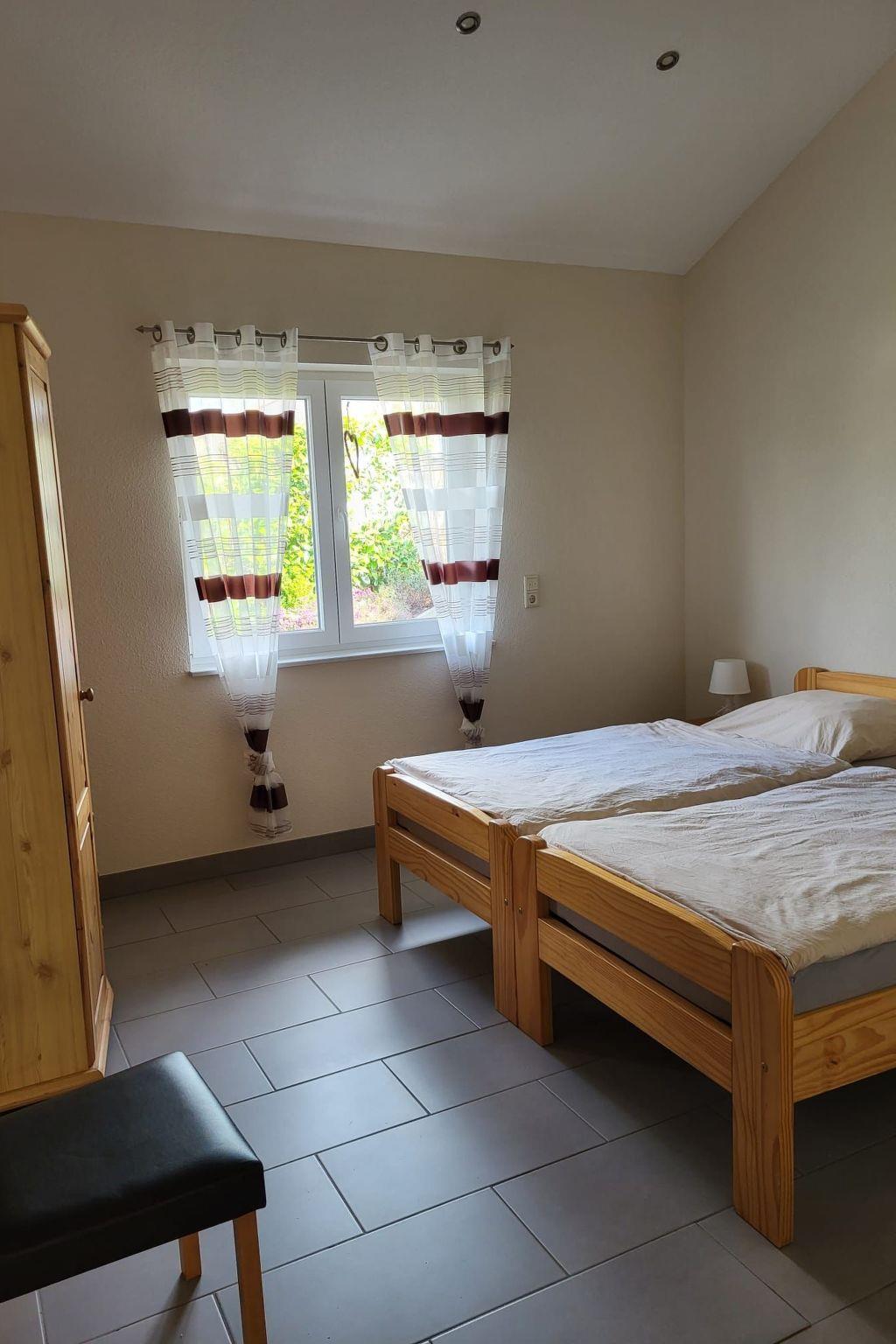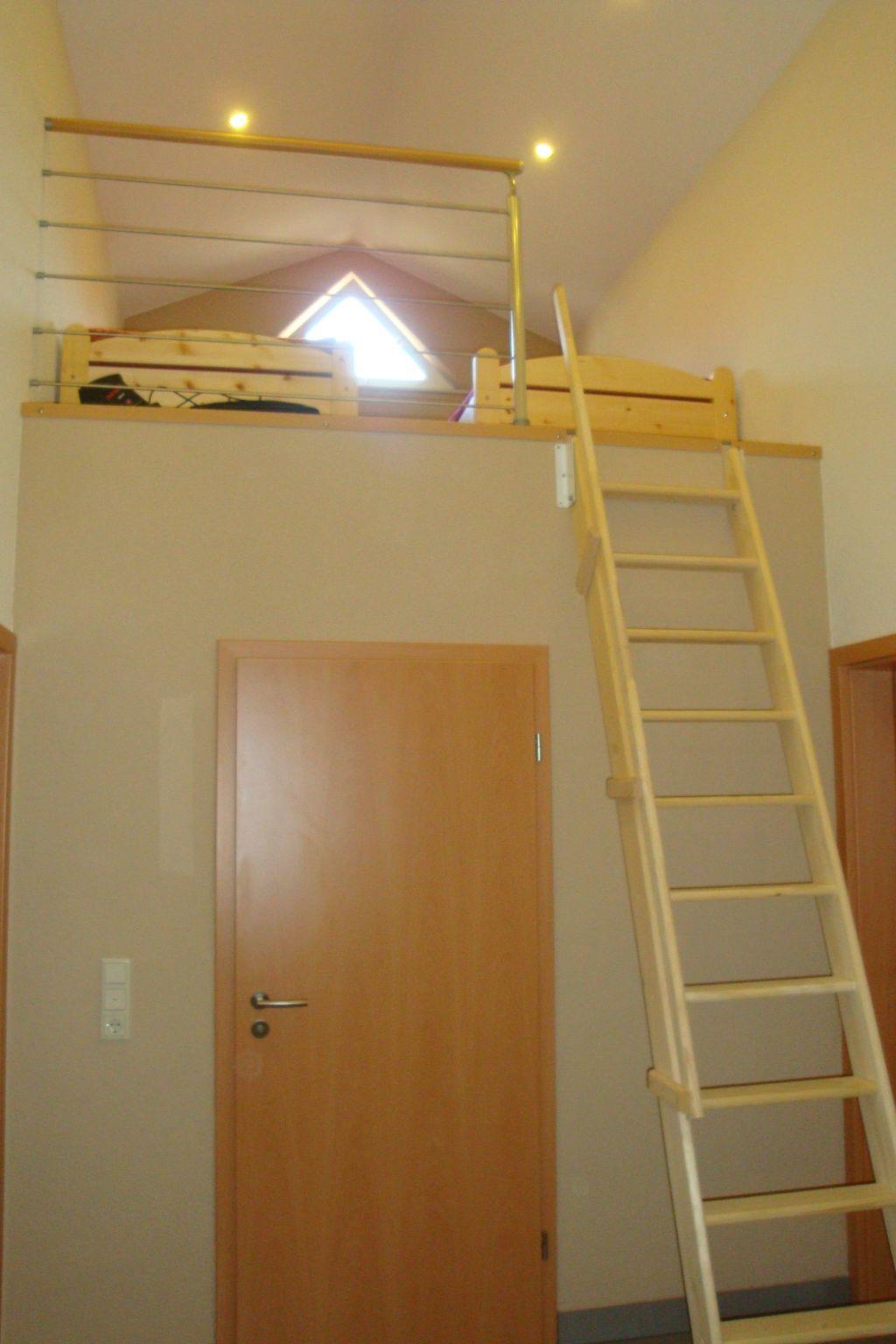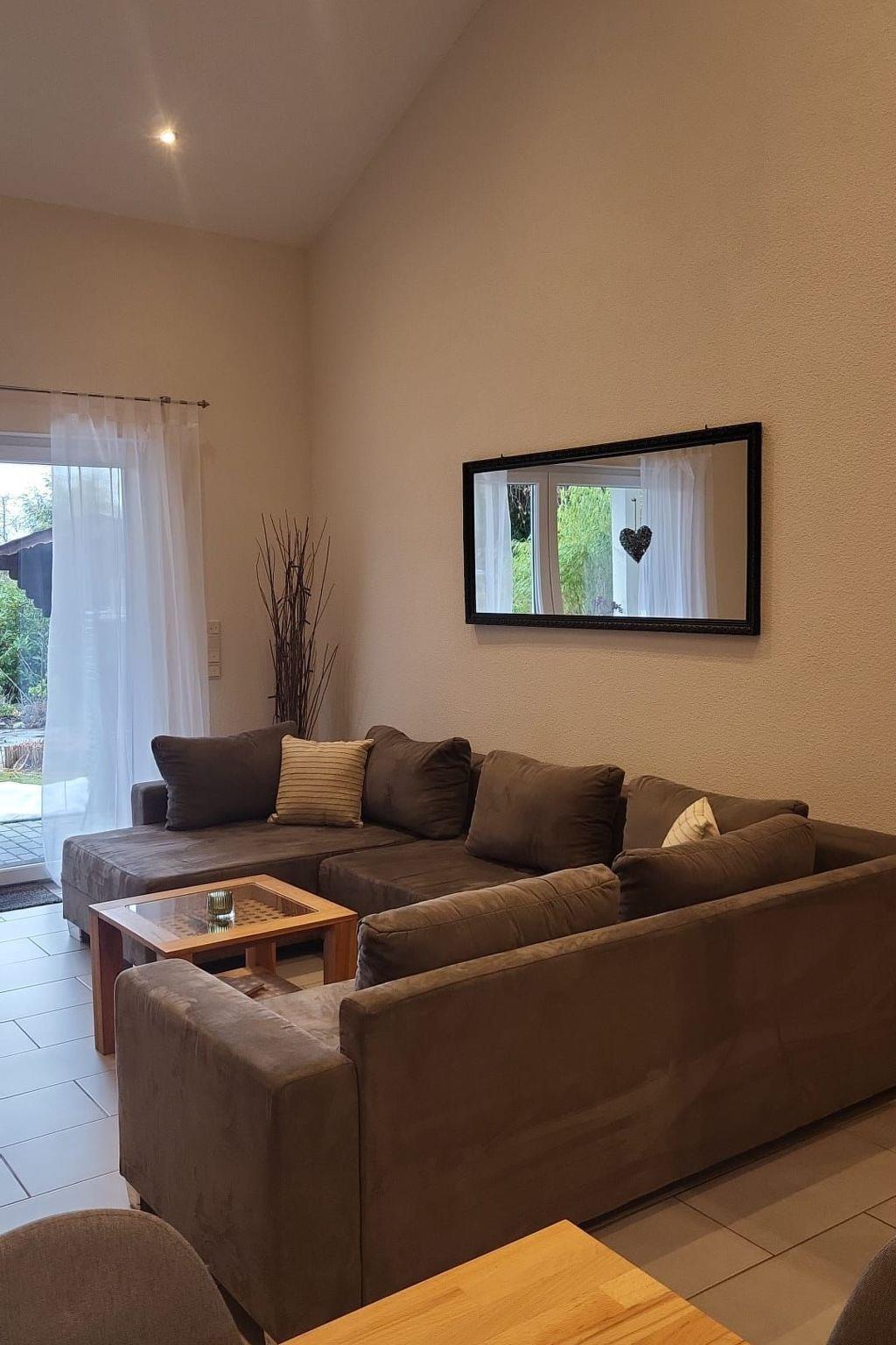 Here you are renting a 79m² holiday house with a living room and a well-equipped kitchen with a dining table. A bathroom with a bathtub, barrier-free shower and WC is also available. A hallway and two bedrooms, one with a double bed and the other with a single bed and a bunk bed, as well as an open gallery with two beds. Wi-Fi Internet, a dishwasher, tea towels, hairdryer, iron, ironing board, three TVs, electric blinds, a washing machine (payable), a cot and underfloor heating are available.