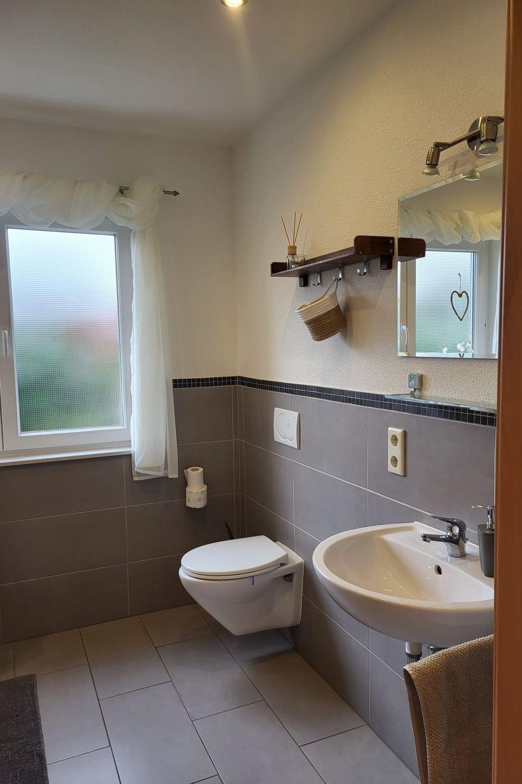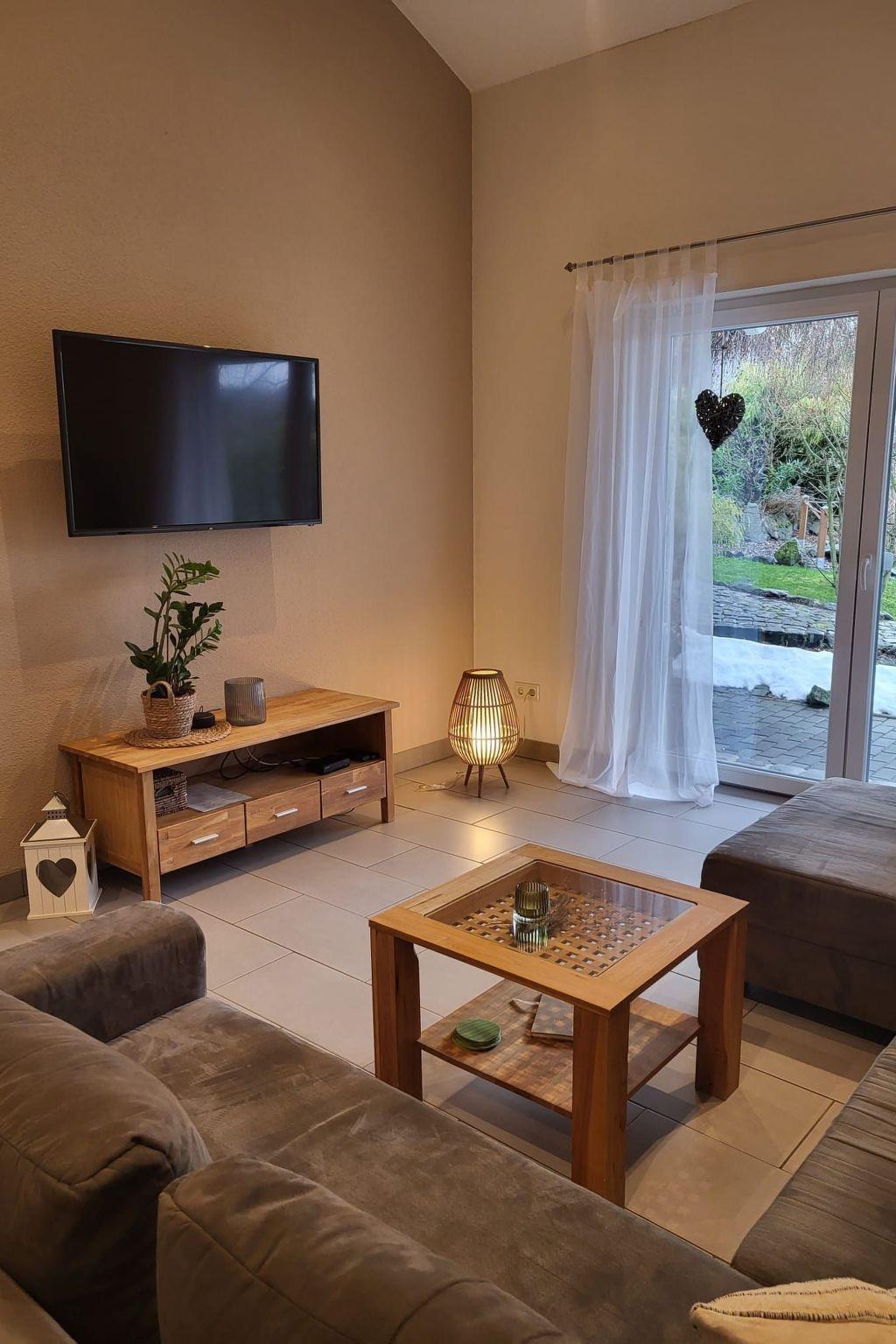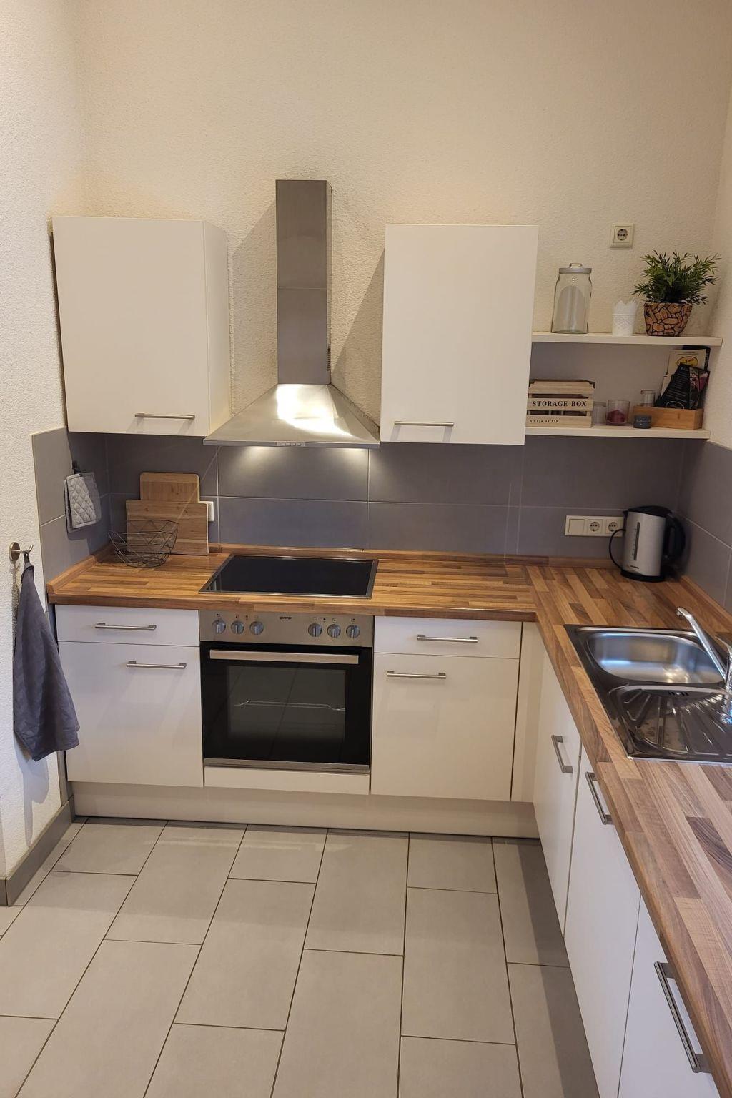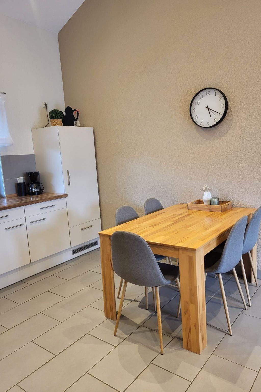 Here you are renting a 79m² holiday house with a living room and a well-equipped kitchen with a dining table. A bathroom with a bathtub, barrier-free shower and WC is also available. A hallway and two bedrooms, one with a double bed and the other with a single bed and a bunk bed, as well as an open gallery with two beds. Wi-Fi Internet, a dishwasher, tea towels, hairdryer, iron, ironing board, three TVs, electric blinds, a washing machine (payable), a cot and underfloor heating are available.