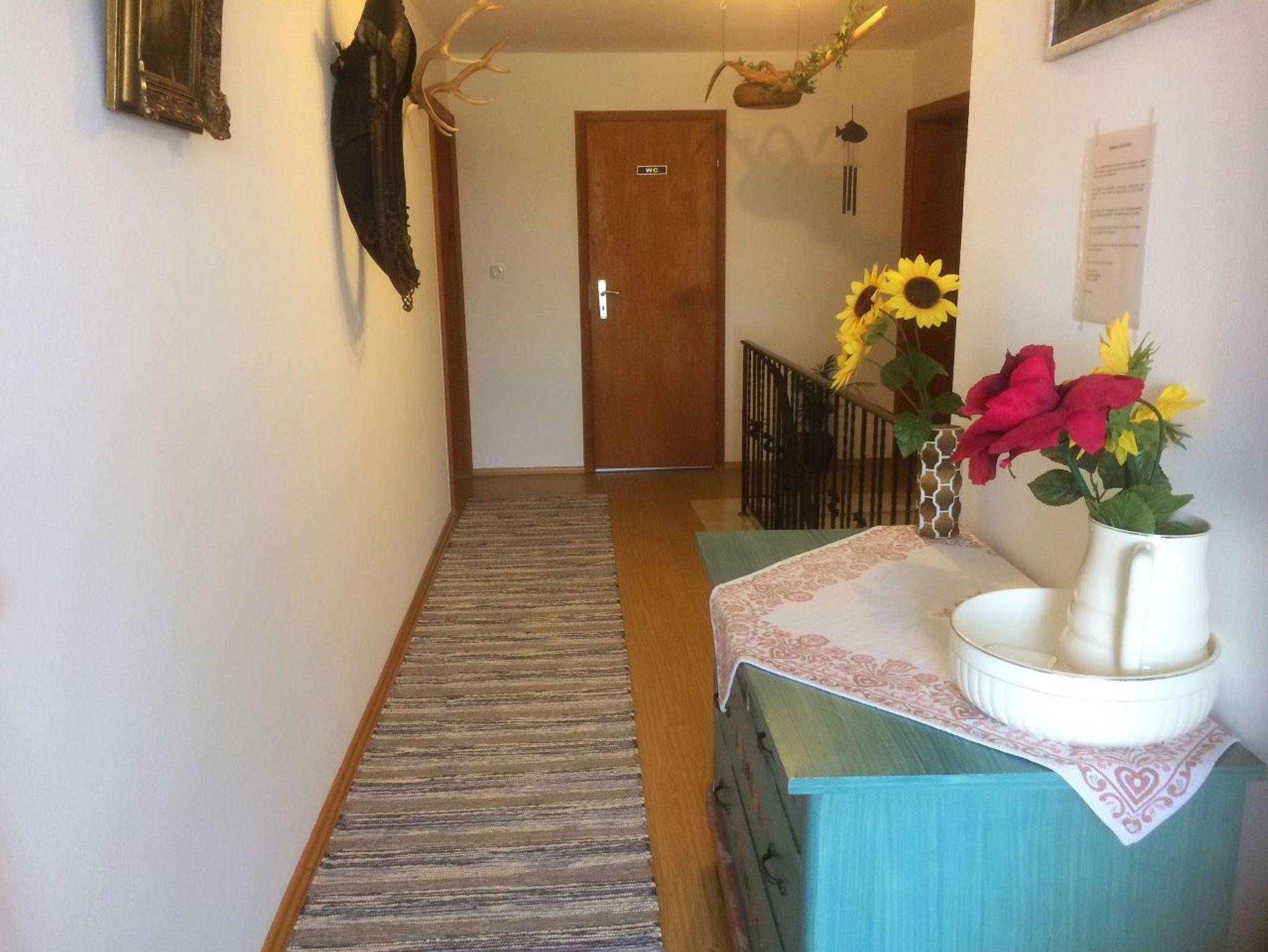 Das helle, freundliche 3 Bett-Zimmer mit DU/WC ist im Landhausstil eingerichtet und befindet sich im 2. Stock mit Balkon. Ausgestattet ist es mit Doppelbett und Einzelbett, Kühlschrank, Sitzgruppe und SAT-TV, WLAN vorhanden. Reichhaltiges Frühstück mit teilweise eigenen Produkten, auf Wunsch auf der Terrasse. Selbstversorgern steht ein komplettes Kaffee- und Speiseservice zur Verfügung.