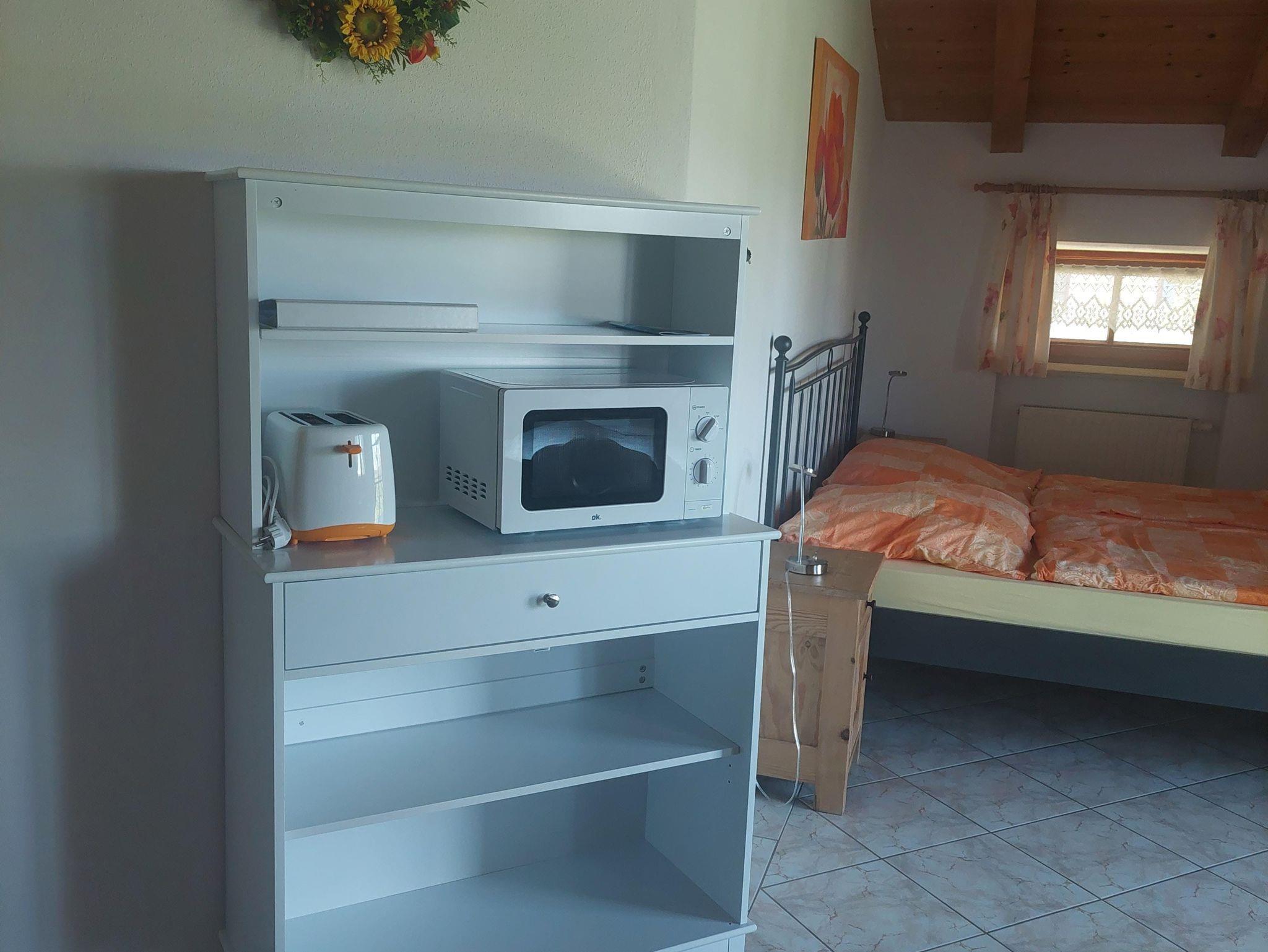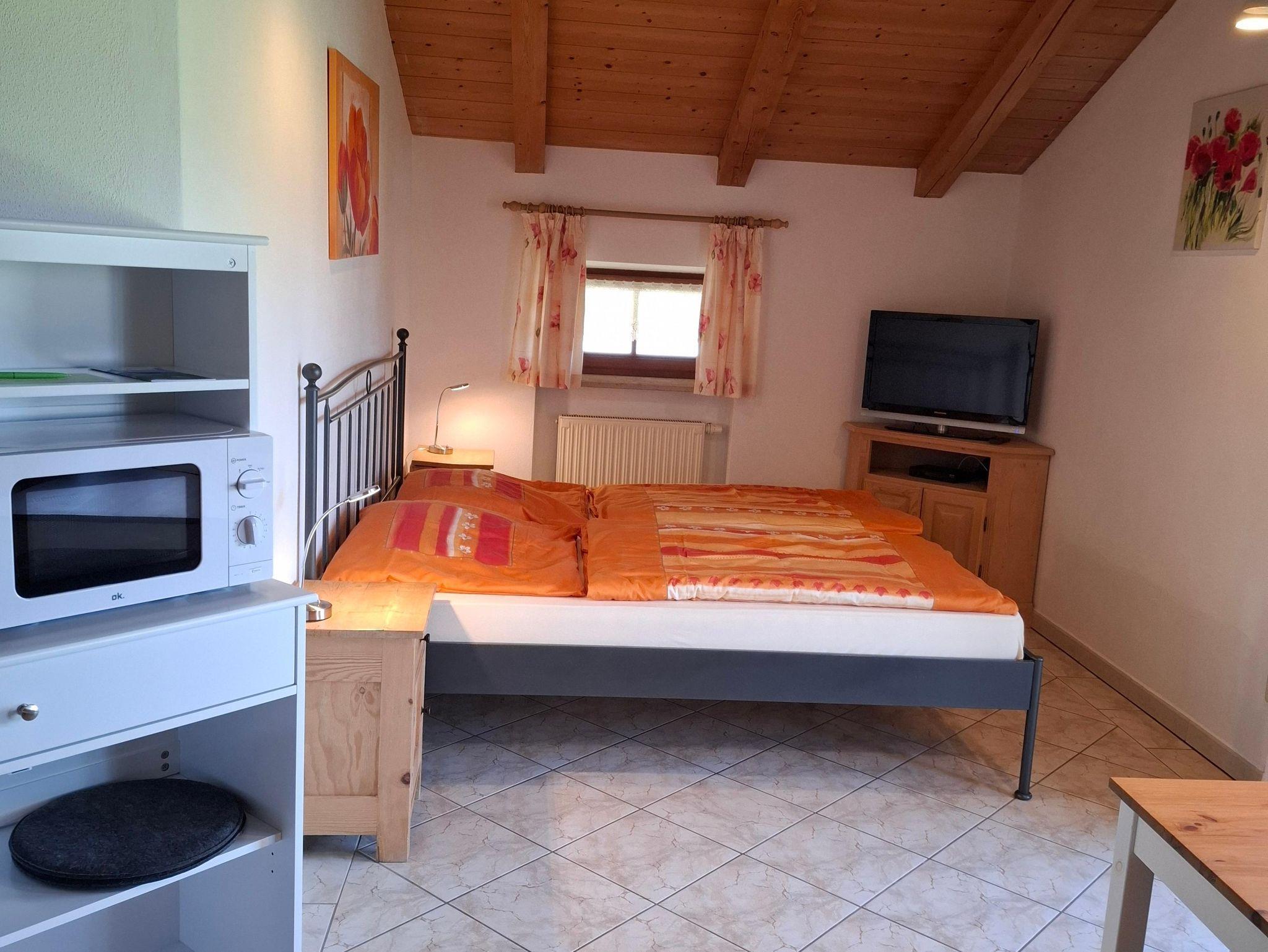 Helle, neu renovierte Ferienwohnung im 1.Stock mit 36m² für bis zu 2 Personen. Wohn-/Schlafraum mit Doppelbett, Kochnische, SAT-TV, WLAN kostenlos, Bad mit Dusche/WC und Balkon. Liegewiese, Grillmöglichkeit und Pavillon mit wunderbarer Aussicht auf die Berge.