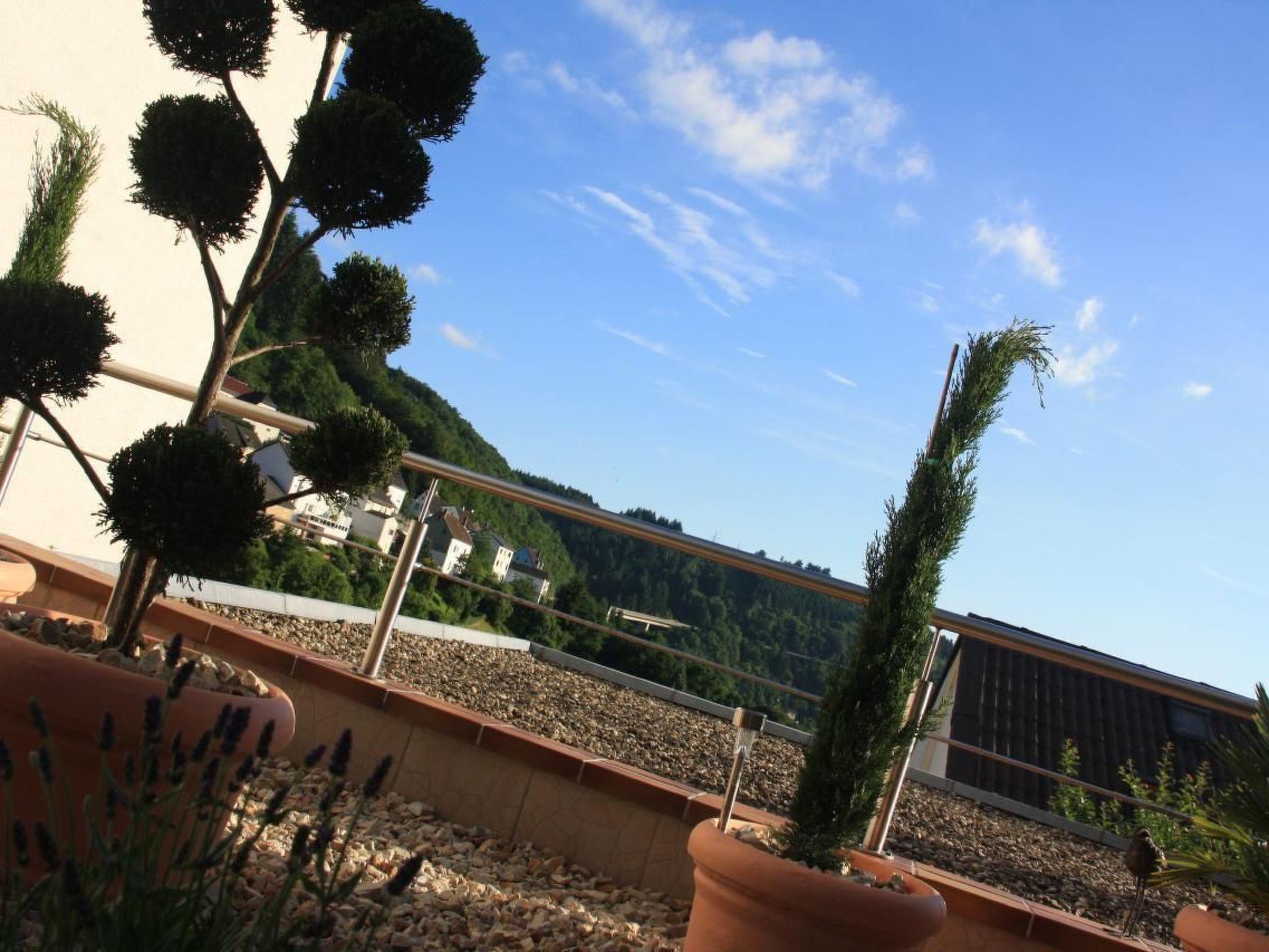 Location description : The holiday flat is located on the main street of the small village of Frauenberg. There are plenty of parking spaces on the street. Frauenberg, a village on the upper Nahe between Westrich and Hunsrück, about 7 km south of Idar-Oberstein. Frauenberg is rich in nature and lies in one of the most beautiful low mountain ranges in Germany. From the Hunsrück heights to the deeply incised Nahe valley, holidaymakers will discover magnificent landscapes everywhere. Experience great hiking opportunities up close on dream loops & vitality tours. The Countess Loretta Trail, which takes you past the medieval Frauenburg castle, can be described as a dream loop with a view. The local cycle path also passes close to our village. You can store your bikes with us or hire them from us. Wine lovers will find marvellous wines here on the Nahe. Rustic wine taverns invite you to stop for a bite to eat!