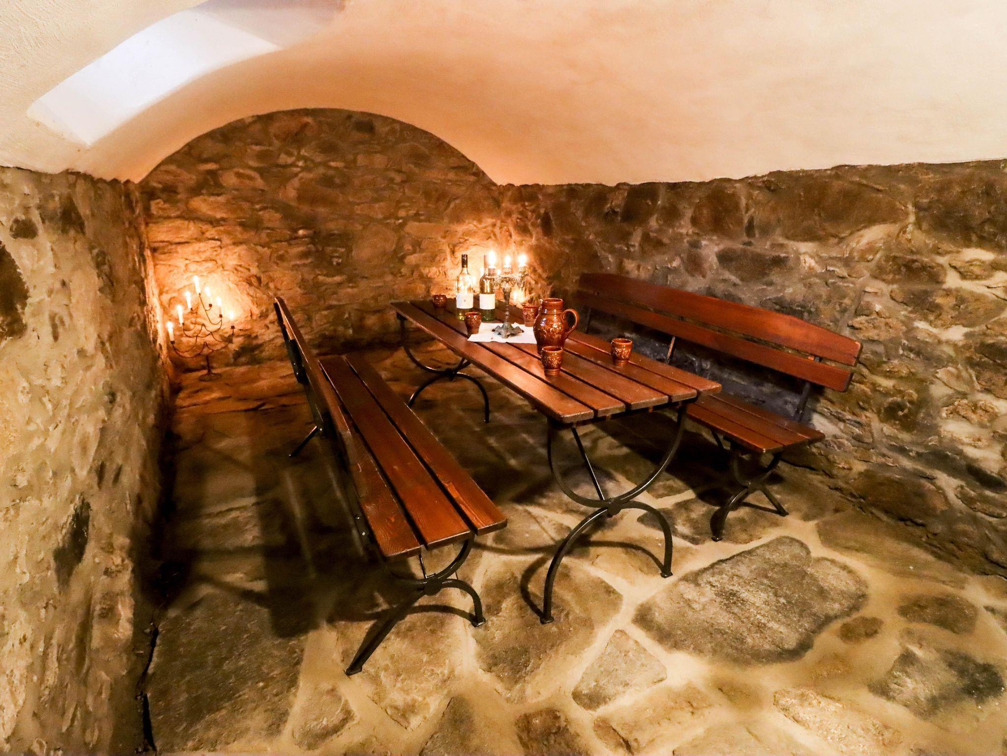 Ein besonderes Highlight ist der Wellnesbereich im Erdgeschoss des Hauses. Dort erwartet Sie eine gemütliche Faß-Sauna und eine Wasserfall-Dusche. Wenn Sie die Kellertreppe hinuntersteigen, finden Sie sich in einem urigen Weinkeller wieder.