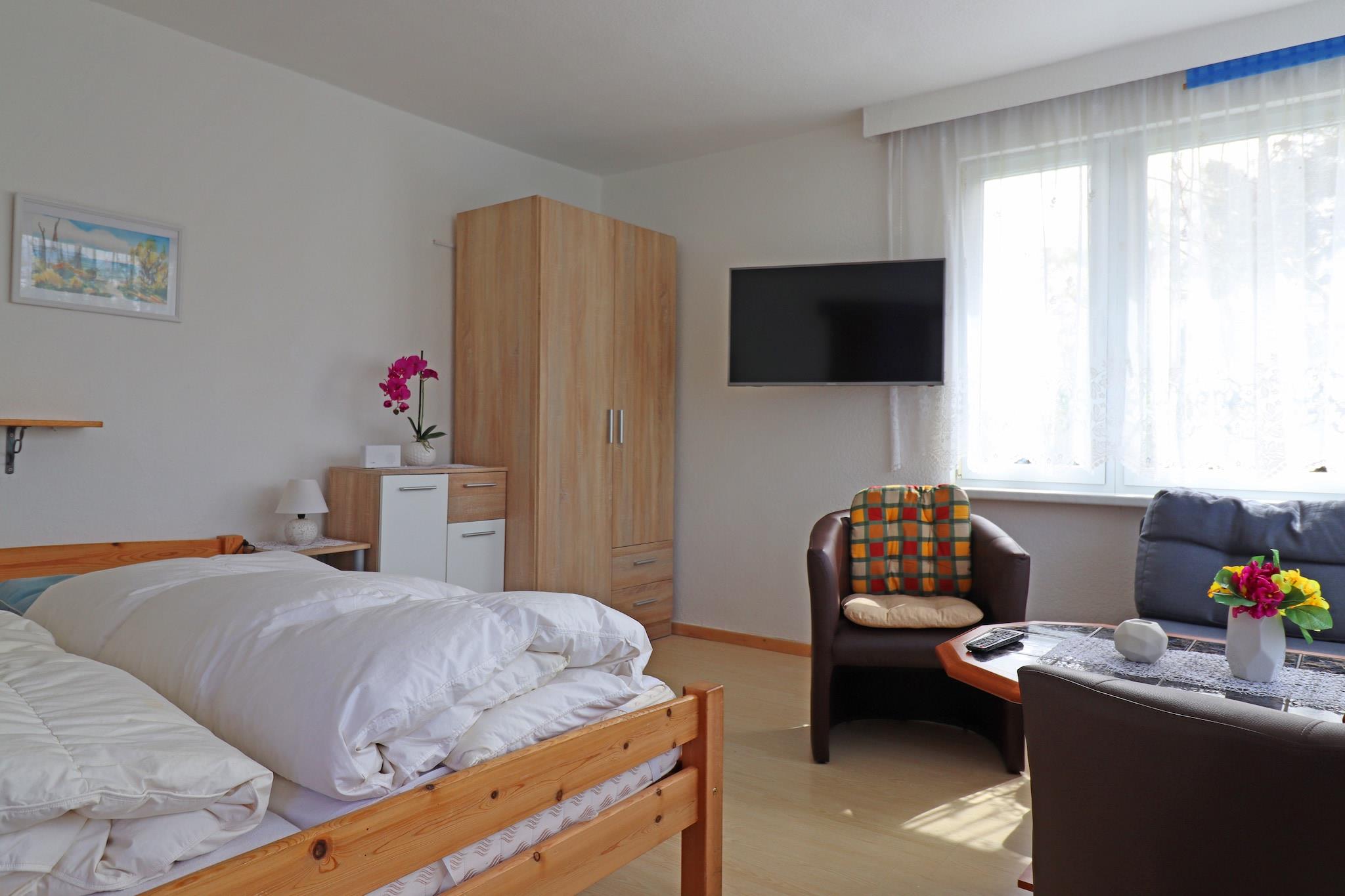 Hyggelig bungalow nær flodmundingen af Peene på en solrig havegrund (1500 m²). Nyd de første solstråler med en solid morgenmad på din terrasse, og kom stærkere ud for dagen. Du når havnen på kun 500 meter, her kan du nyde frisk fisk. Omgivet af vand, skov, enge og strand tilbyder Freest, en typisk, idyllisk fiskerby, de bedste betingelser for hvile og afslapning. Den lille fiskerihavn med kutter og yachter er i dag den mest moderne i Vestpommern. Her kan du nyde den maritime atmosfære under en aftentur. Fra stranden i Freest kan du nyde en imponerende udsigt over flodmundingen og den modsatte by Peenemünde. Freest er et interessant udgangspunkt for udflugter til øerne Rügen, Usedom, Ruden og Oie, det historiske museum Peenemünde og de smukkeste byer i Vestpommern og nabolandet Polen. Aktiviteter i nærheden: Hvis du foretrækker sporty fiskeri, kan du også leje motoriserede fiskerbåde i Wolgast. I den lille fiskerihavn i Freest kan du købe frisk fisk eller tage færgen til øen Oie. Ikke egnet til personer med nedsat mobilitet