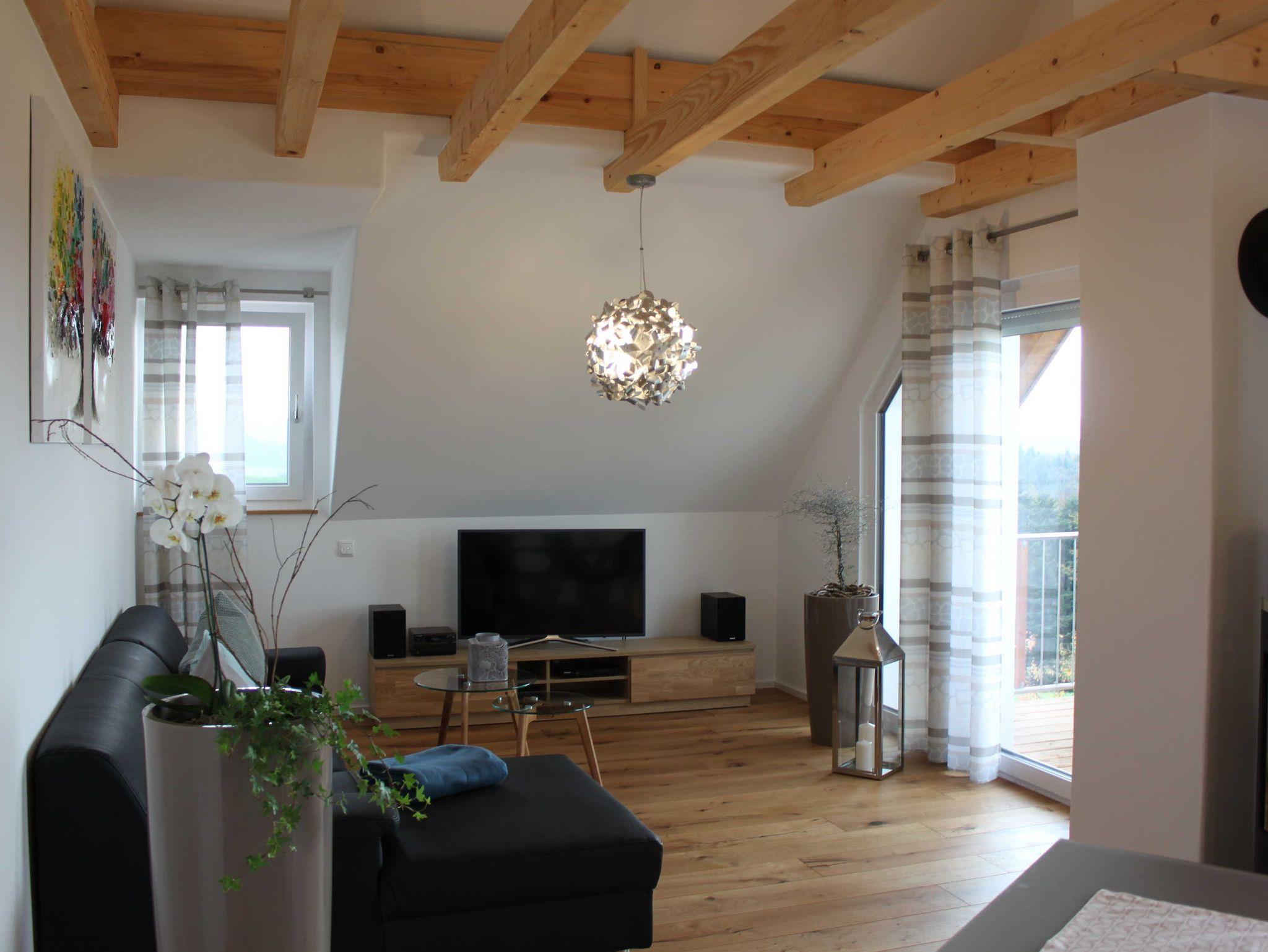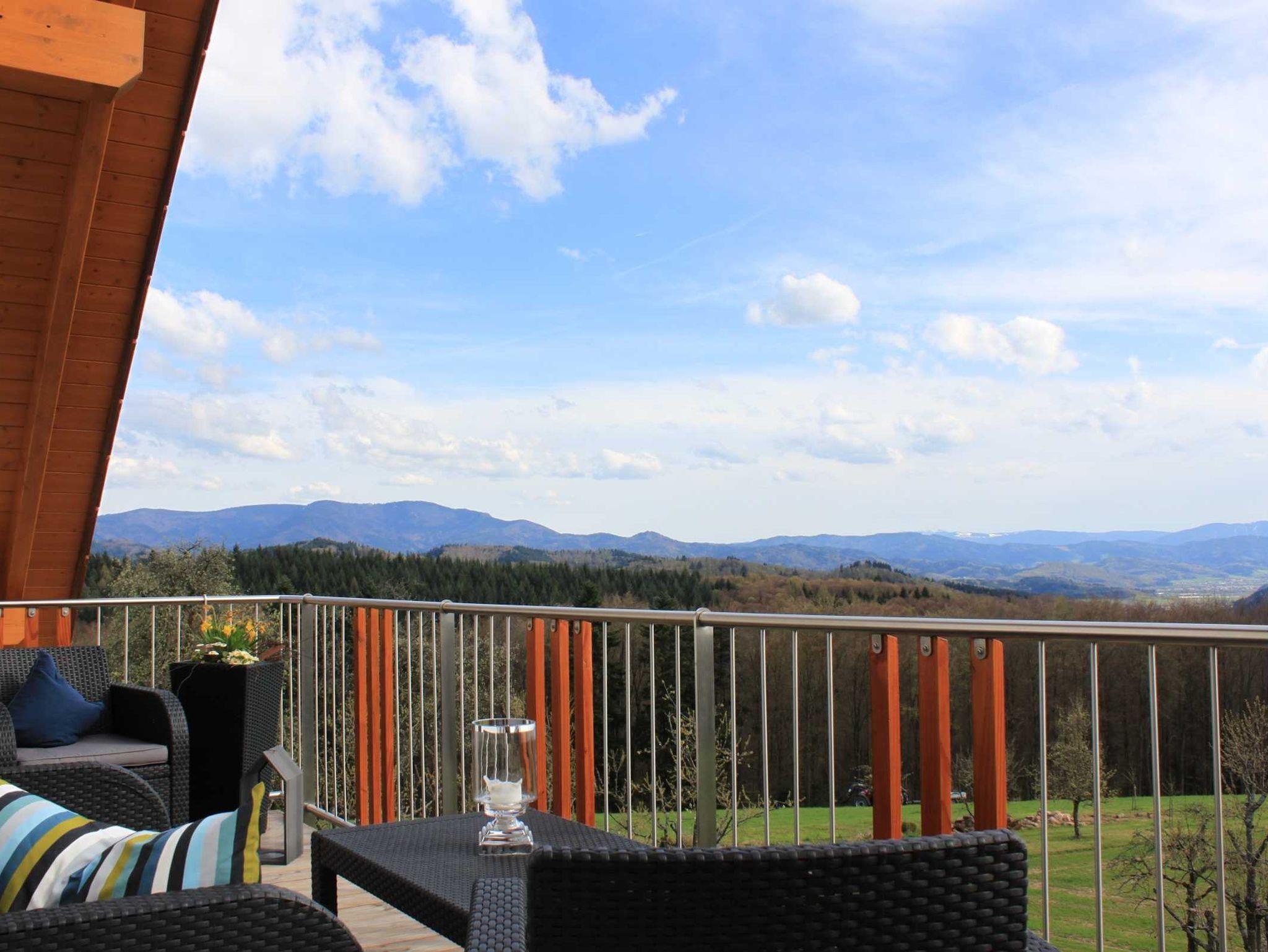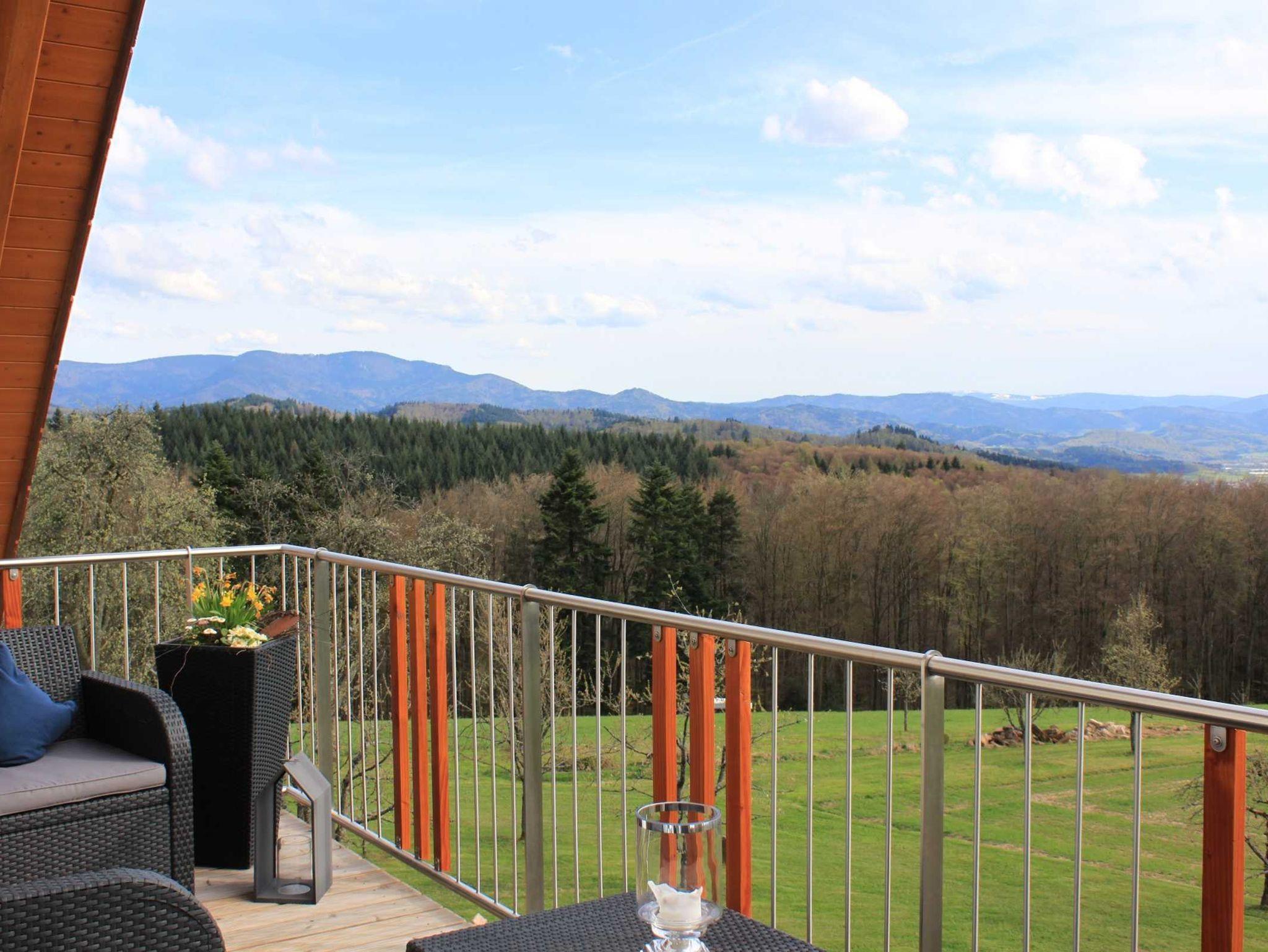 Von dem gemütlich eingerichteten Balkon können sie die wunderbare Aussicht in den Schwarzwald und die Vogesen genießen.