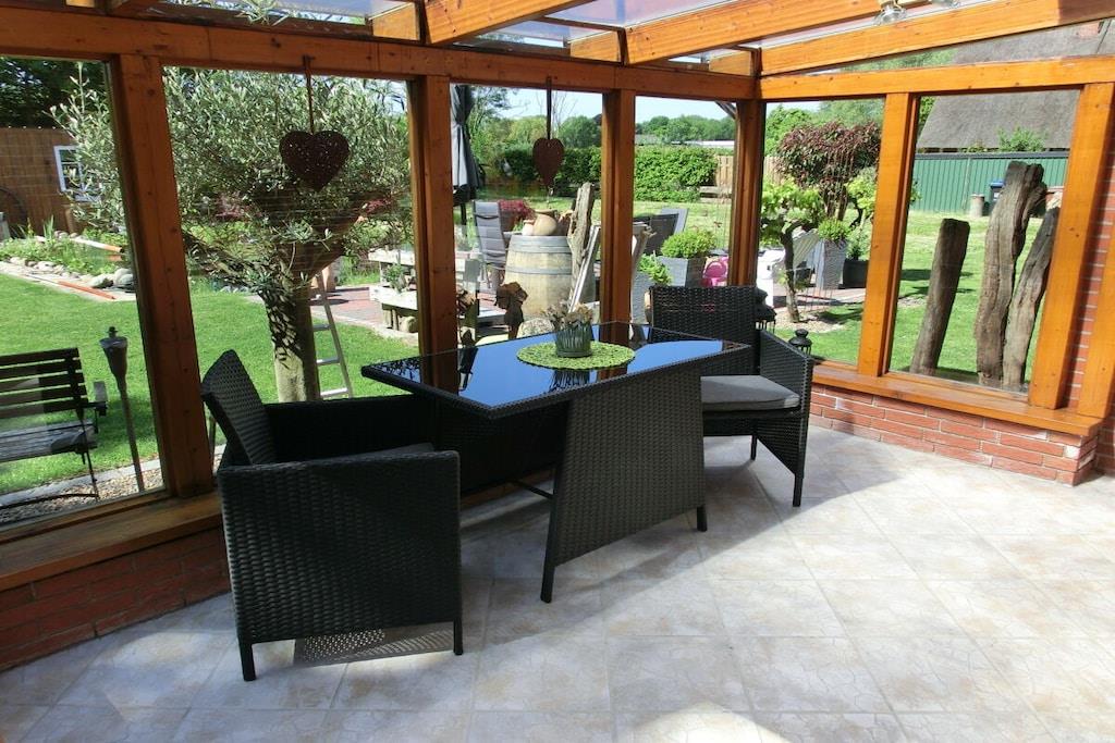 Vores ferielejlighed på cirka 67 m² til 2 personer er røgfri og kæledyrsfri. Den ligger i stueetagen, er moderne og smagfuldt møbleret. Lejligheden er udstyret med alt, hvad du behøver til dine daglige behov. Stuen er komfortabelt møbleret. Der er også satellit-tv. Du sover i en stor dobbeltseng (200x200 cm). Køkkenet er fuldt udstyret. Badeværelset har bruseniche, toilet, håndvask, spejlskab og hårtørrer. I de køligere måneder kan du slappe af i den tilstødende vinterhave med komfortable siddepladser. Vi tilbyder også gratis internetadgang.