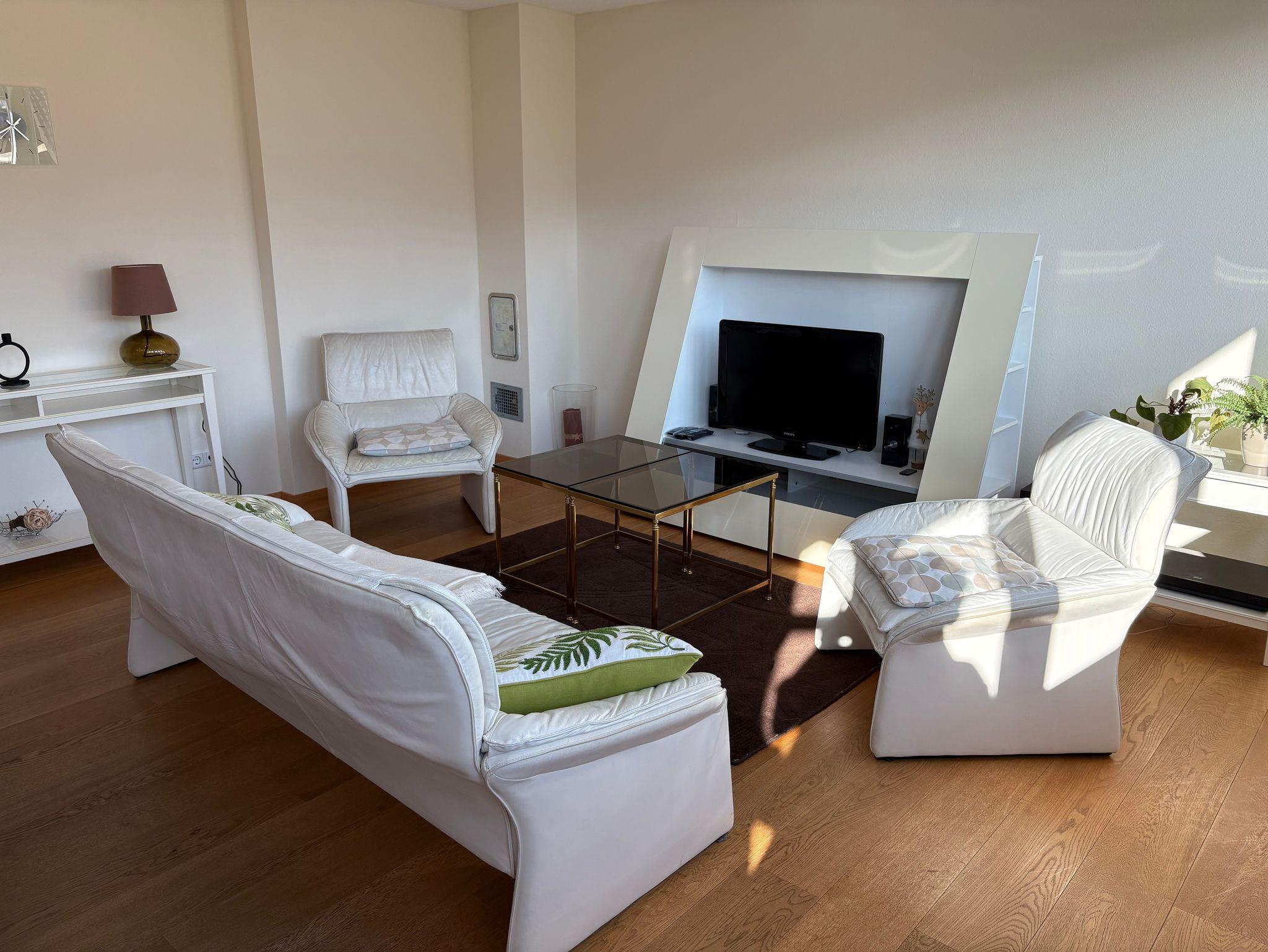 3-Zimmer Appartement (85 qm) mit Balkon im 3. OG; die Ferienwohnung ist ausgestattet mit einem französischen Bett, einem Bett zum Ausziehen (für weitere 2 Personen), Kleiderschrank, TV, Musikanlage, Blu-ray Kommode und einer seperaten Küche. Hier haben Sie alle nötigen Utensilien, wie z.B. Kaffeemaschine, usw.