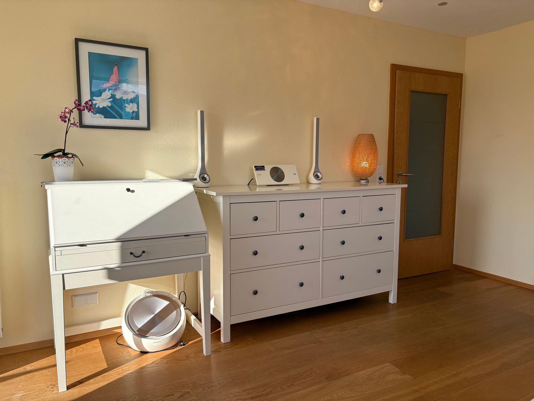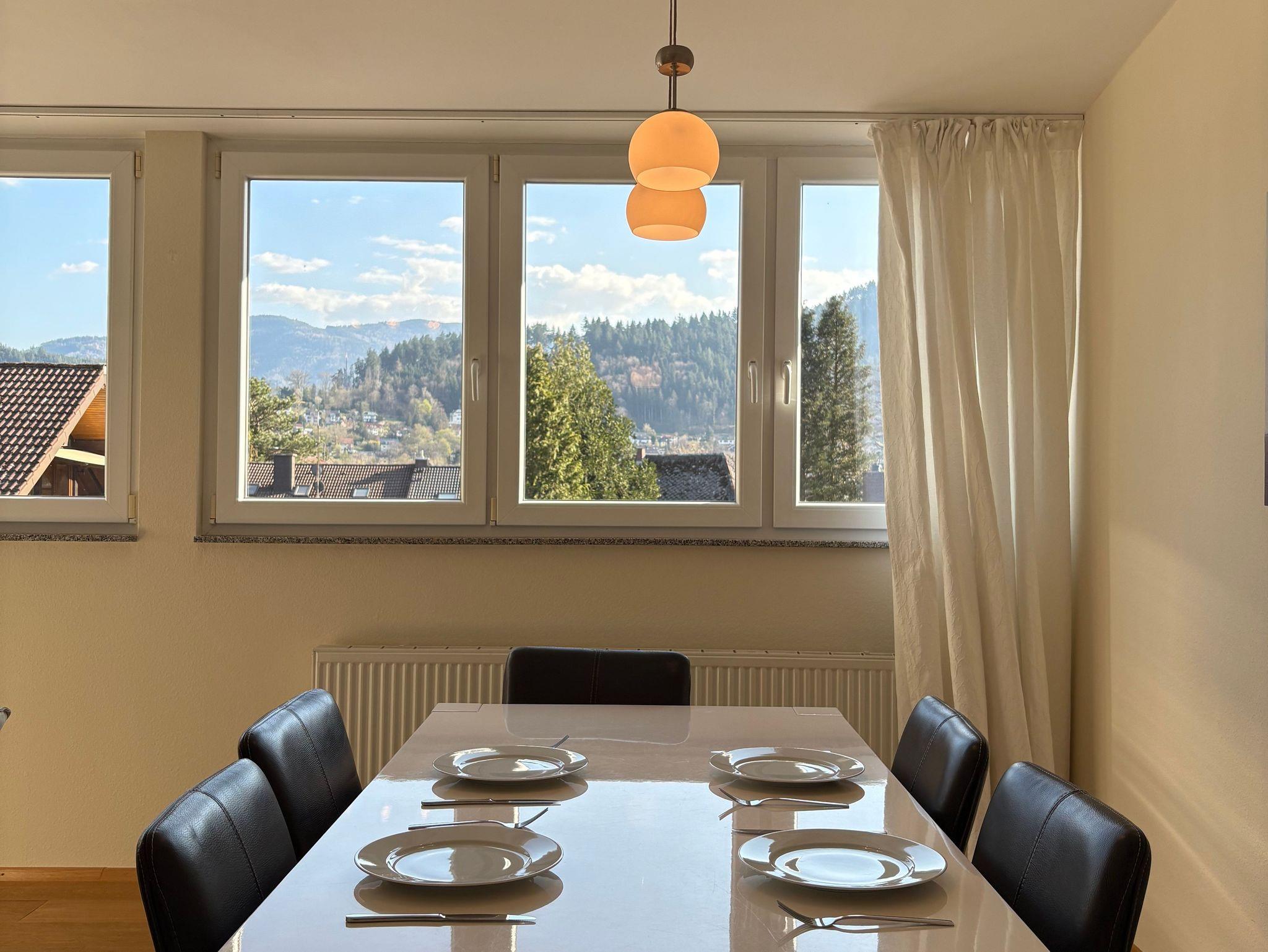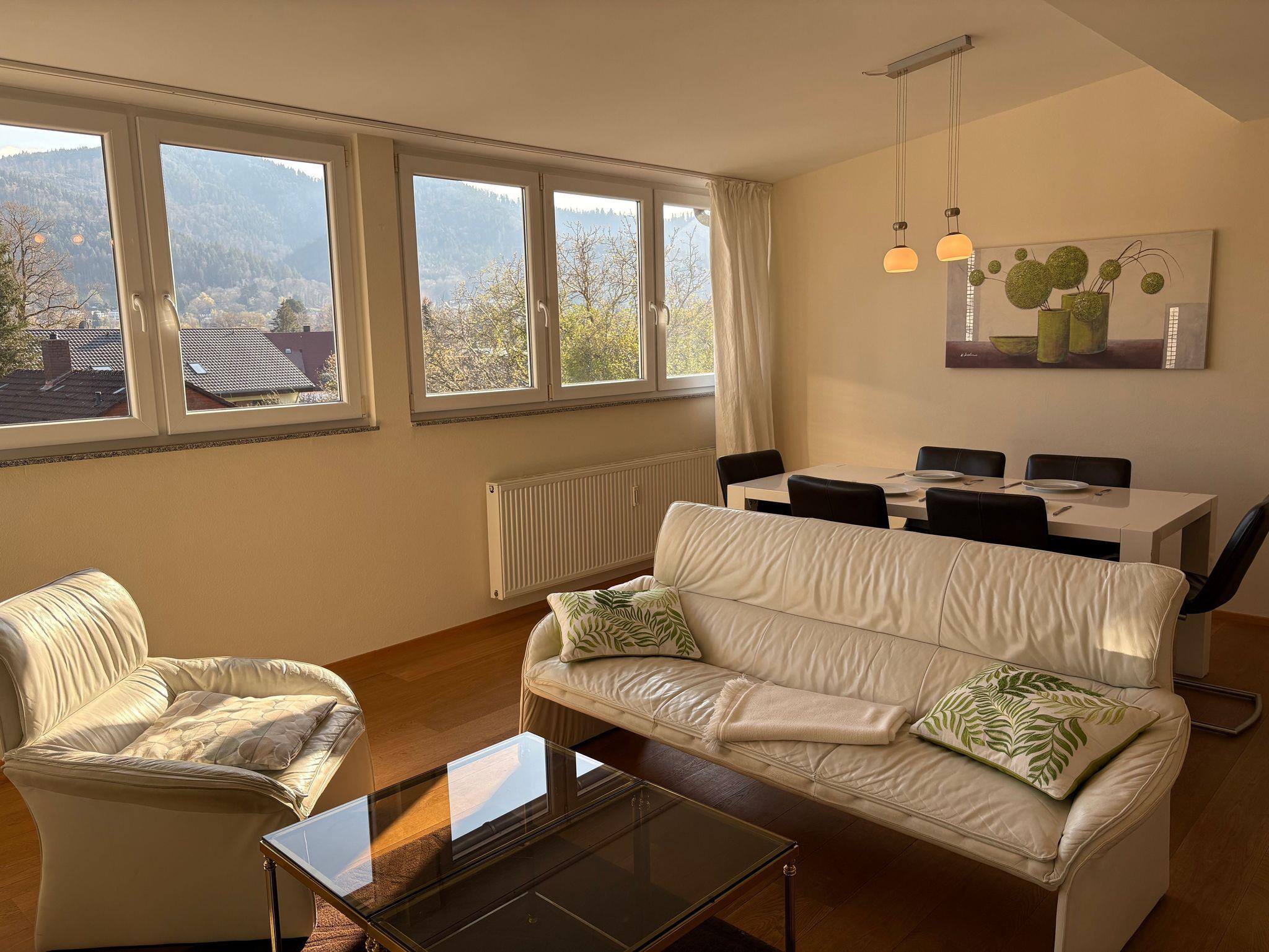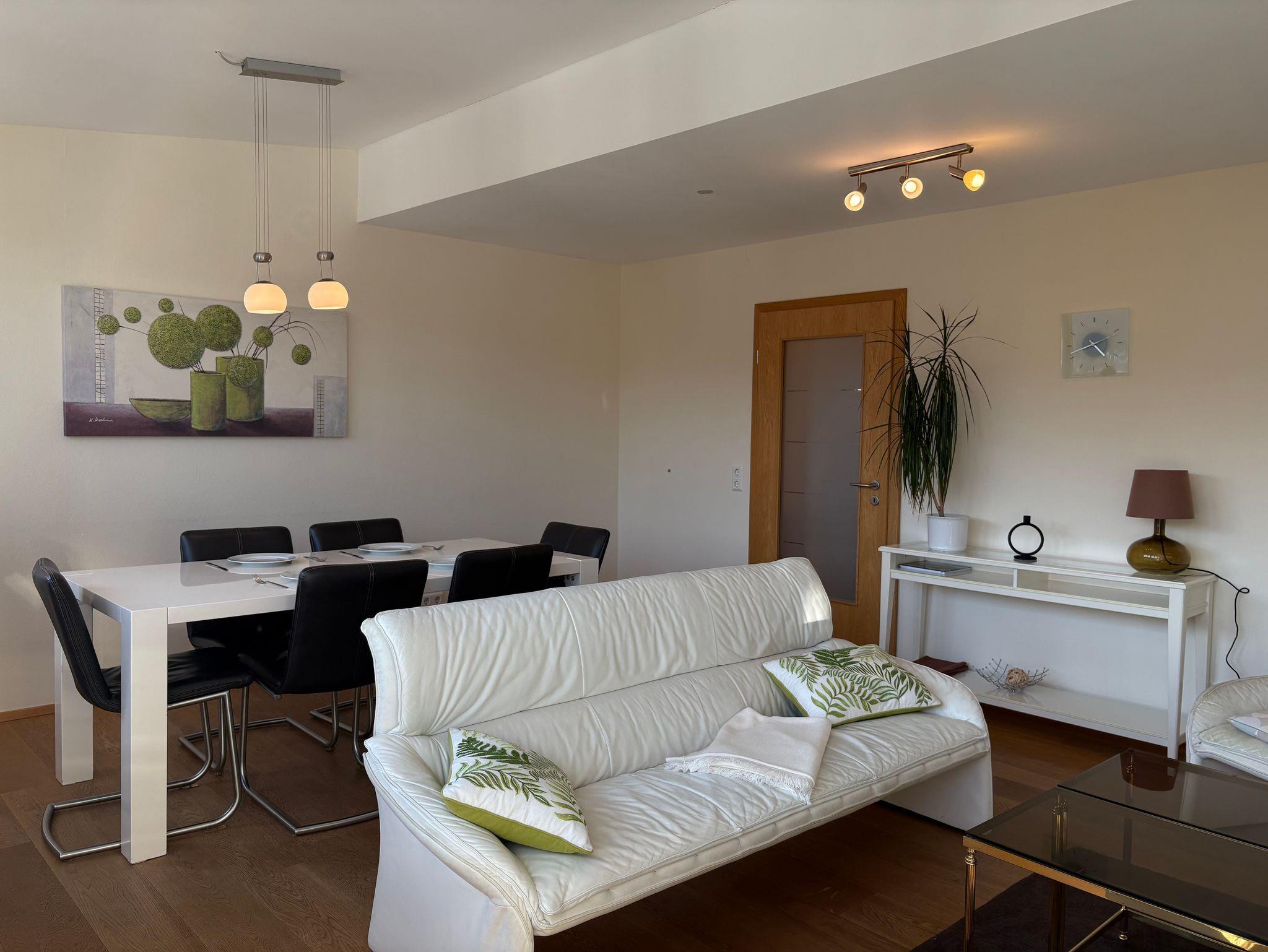 Dieses neue top renovierte, helle, gemütliche 3 - Zimmer Appartement (85 qm) mit Balkon befindet sich im 2. Obergeschoss in einem ruhigen und naturnahen Wohngebiet in Freiburg-Ebnet. Sie haben gute Verkehrsanbindungen zur Stadtmitte, zum Bahnhof oder auch zur Messe und Einkaufsmöglichkeiten befinden sich um die Ecke. Die Ferienwohnung- 2 Schlafzimmer und ein Wohnzimmer, separater Küche) ist ausgestattet mit einem TV, Musikanlage, Blu-ray, Esstisch mit 6 Stühlen, Sessel, 2- und3-Sofa, Kommode und etc. Das erste Schlafzimmer- Doppelbett ( 180X200), Kleiderschrank, Kinderbett, Sofa, Tisch. Das zweite Schlafzimmer- Doppelbett (180X200), Kommode, Sekretär, Chouch zum Ausziehen für weitere 2 Personen. In der Küche haben Sie alle nötigen Utensilien, wie z.b.Kaffeemaschine, Mikrowelle usw. Im Badezimmer stehen eine Waschmaschine und Wäschetrockner zur Verfügung. Kinder bis 3 Jahre im Bett der Eltern frei. Ein Kinderreisebett wird bei Bedarf zur verfügung gestellt.