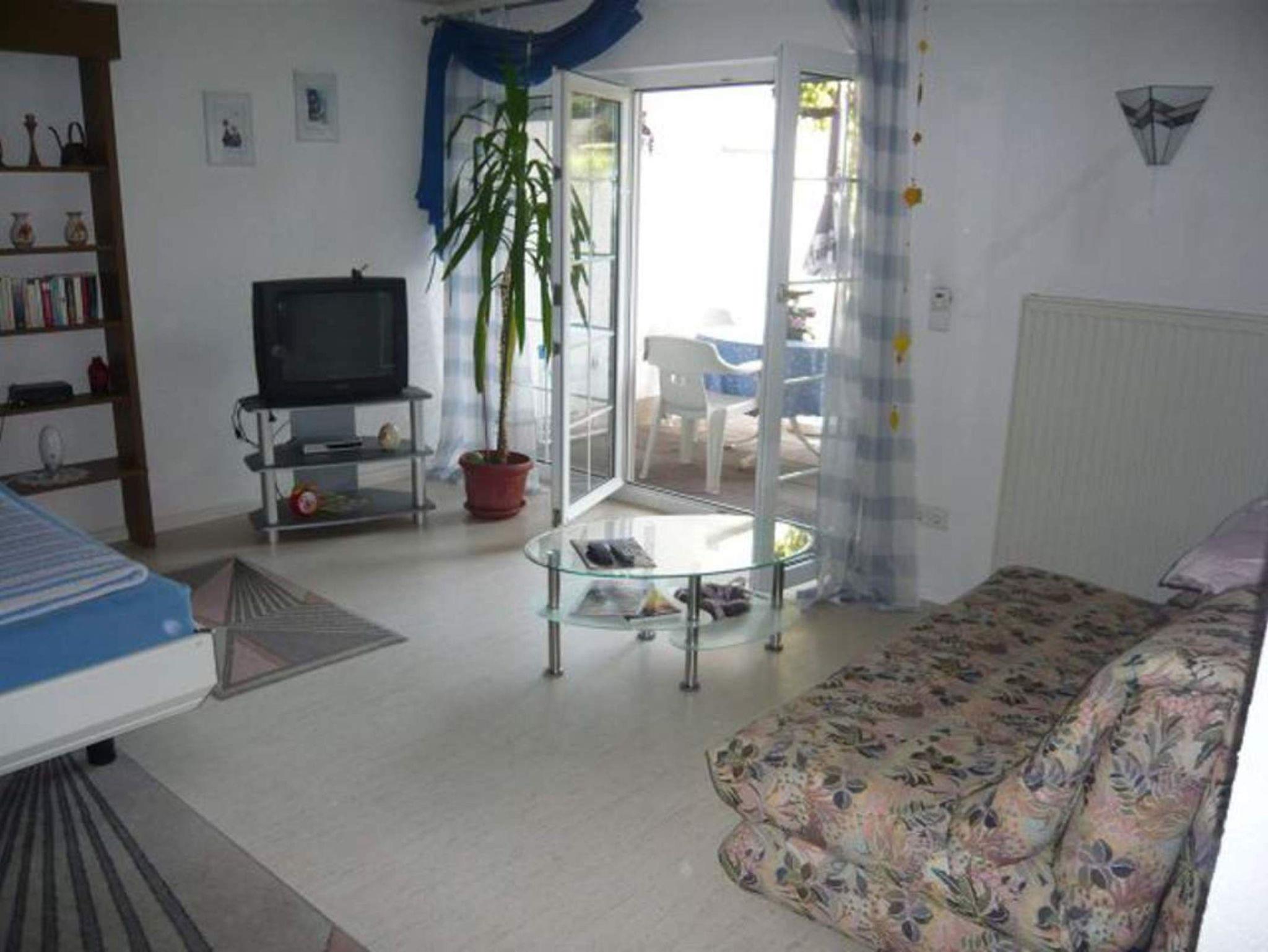 Nichtraucher-Wohnung, großer Wohn- und Schlafbereich mit Doppelbett und Schlafcouch, ein großzügiger überdachter Freisitz, TV, separate Küche mit Backofen und 4-Plattenherd, Kühlschrank, Mikrowelle, Kaffeemaschine,Toaster und Essecke. Badezimmer ist ausgestattet mit Dusche und Urinal und separiert davon die Toilette. Bettwäsche und Handtücher sind natürlich vorhanden und im Preis mit inbegriffen.