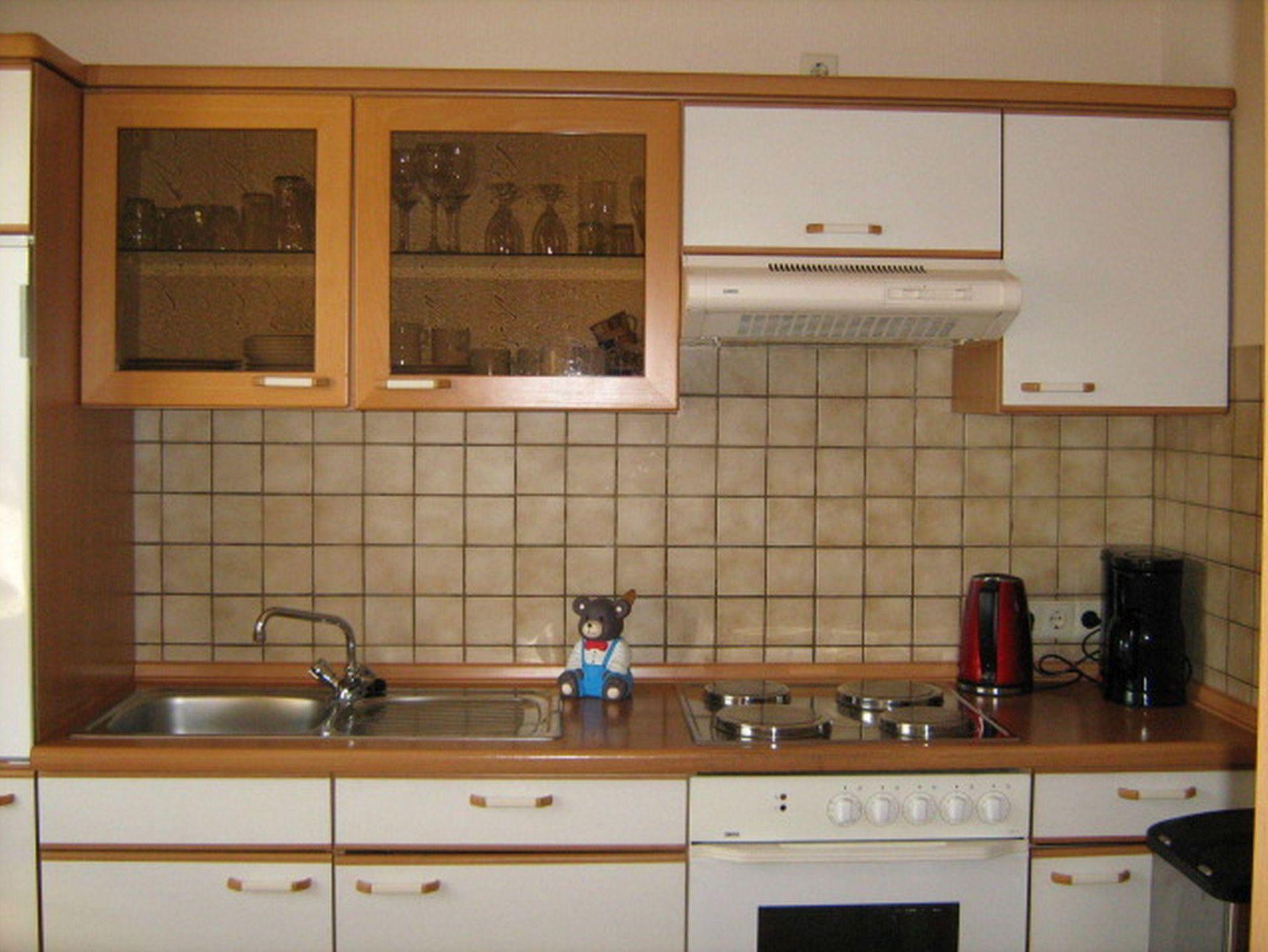 Voll eingerichtete Küche mit Backofen, Toaster, kleine Sitzgruppe. Wohnzimmer mit Balkon, Kabel-TV und großer Sitzgruppe. Platz für Kinder- oder Reisebett (Kinderbett vorhanden). Geeignet bis zu 6 Personen.