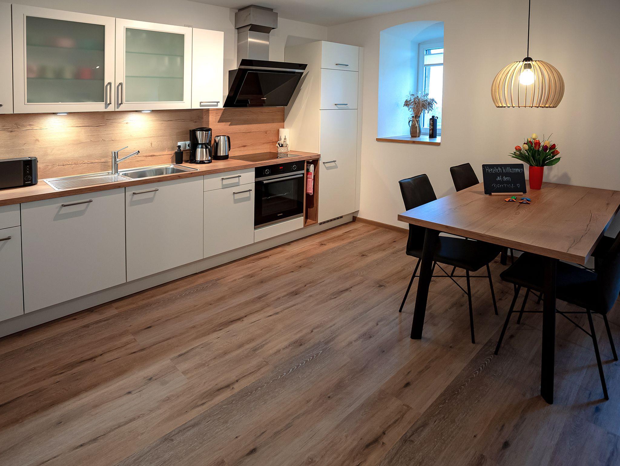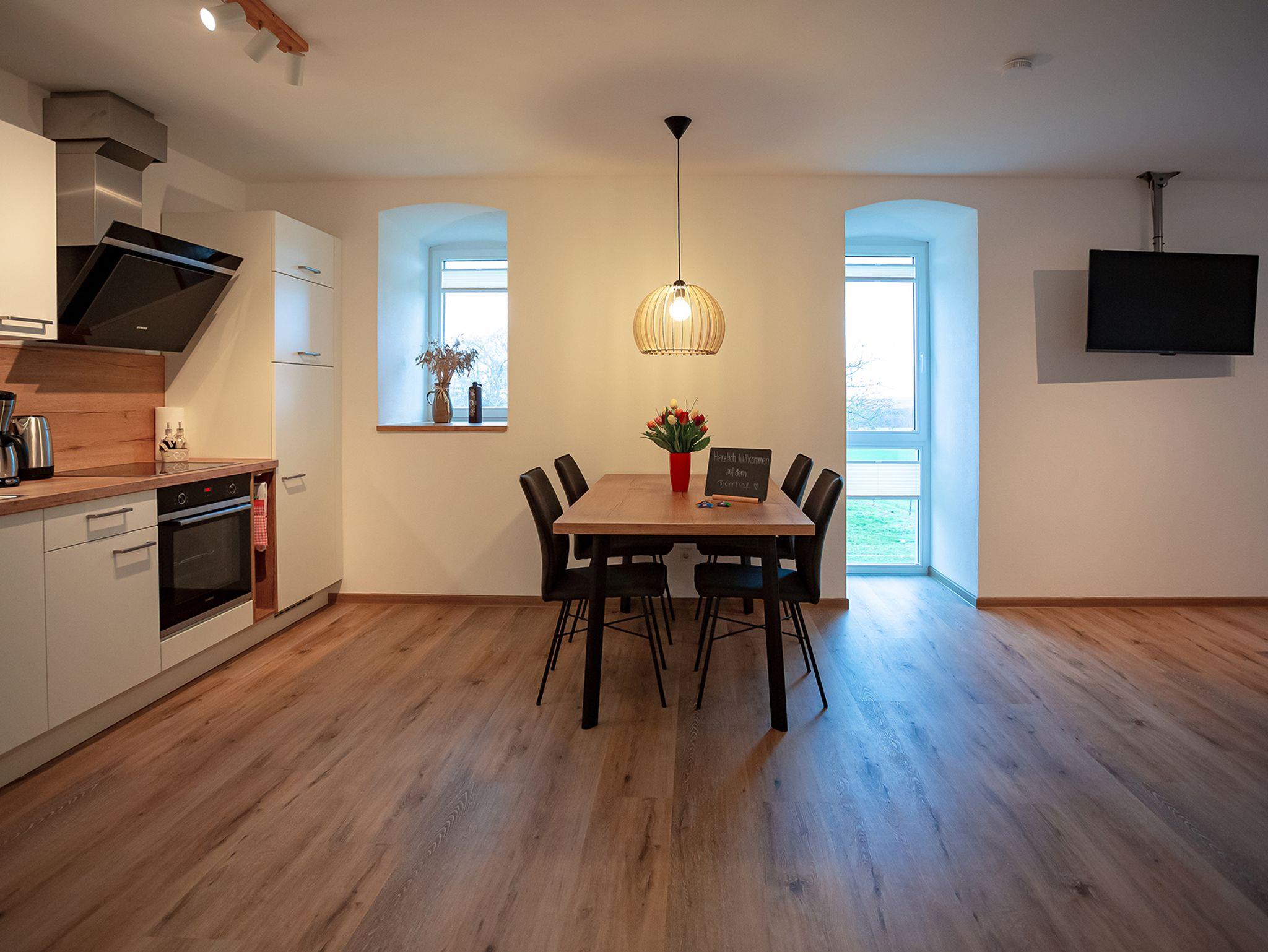 Idyllisch am Waldrand, knapp zwei Kilometer nordwestlich von Rauenberg, befindet sich die Ferienwohnung Miltenberg des heute im landwirtschaftlichen Haupterwerb betriebenen Gutshofs Dürrhof. Die charmante, modern ausgestattete Ferienwohnung Miltenberg lädt mit Blick auf weite Wälder, Wiesen und Felder und die am Hof gelegene Pferdekoppel zur Entspannung und zum Verweilen ein. Erleben Sie modernes Wohnen in den historischen Gemäuern des erstmals 1178 urkundlich erwähnten Klosterhofs. Genießen Sie die ländliche Lage, das Vogelzwitschern in den frühen Morgenstunden und den klaren Sternenhimmel in der Nacht. Es erwarten Sie zahlreiche Freizeitaktivitäten im lieblichen Taubertal, Maintal oder direkt vor der Haustüre. Die Ferienwohnung Miltenberg bietet auf 59 m² Platz für bis zu 4 Personen. Sie verfügt über zwei Schlafzimmer, einen Wohn- und Essbereich mit Küche sowie ein Badezimmer und eine großflächige Terrasse. In direkter Nähe zur Ferienwohnung finden Sie einen kostenfreien Stellplatz für Ihr Fahrzeug.