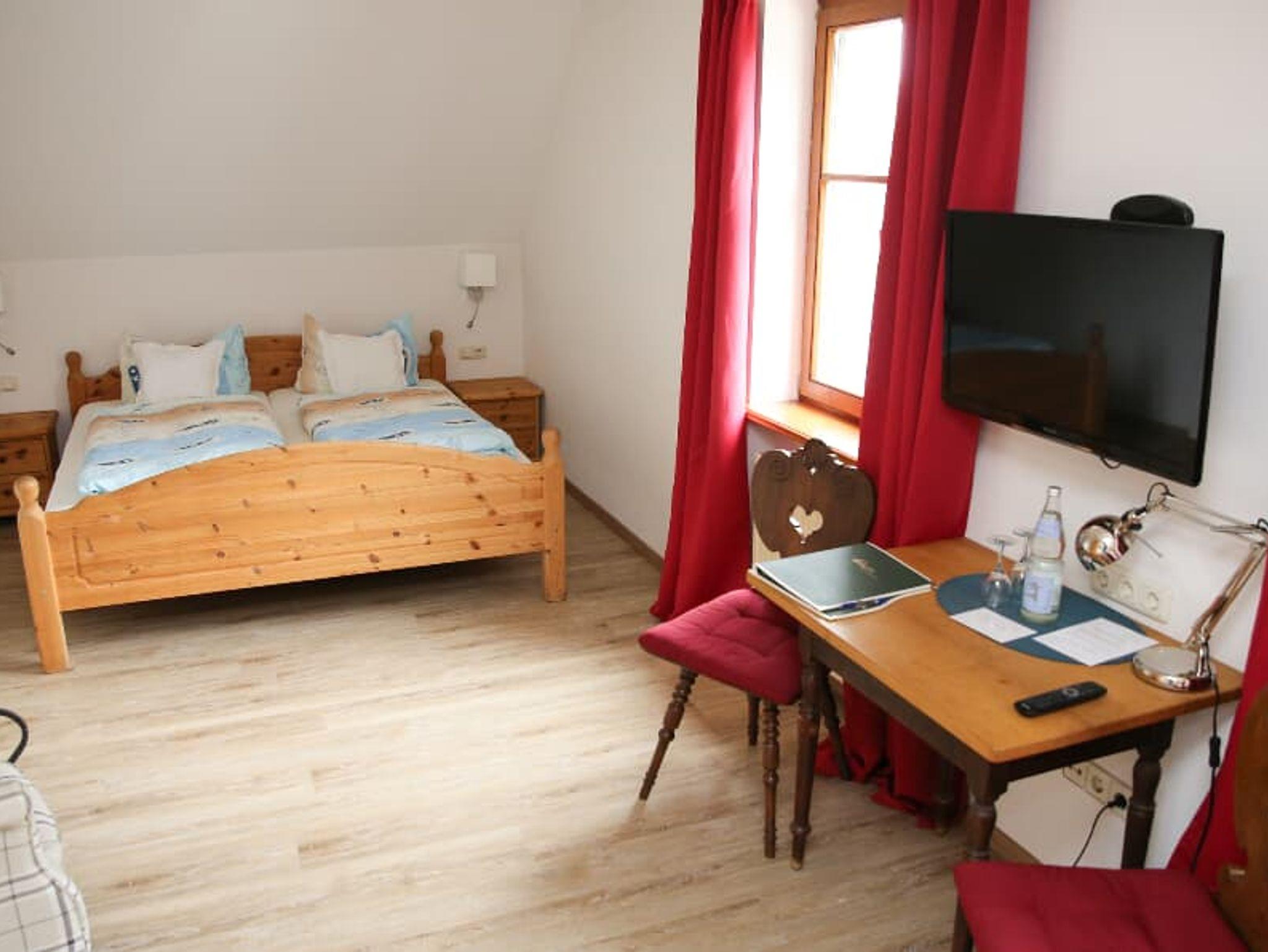Das im Landhausstil eingerichtete Zimmer mit Blick zu den Teichen bietet auf 24 Quadratmetern Platz für bis zu 2 Personen. Das helle Zimmer ist ausgestattet mit einem Doppelbett, Schrank, Schreibtisch, Sitzgelegenheit, Beistelltisch sowie Full-HD-LED-TV, Zimmersafe. Das Badezimmer verfügt über Dusche, WC, Waschbecken und Föhn. WLAN und Parkplatz sind im Preis inkludiert.