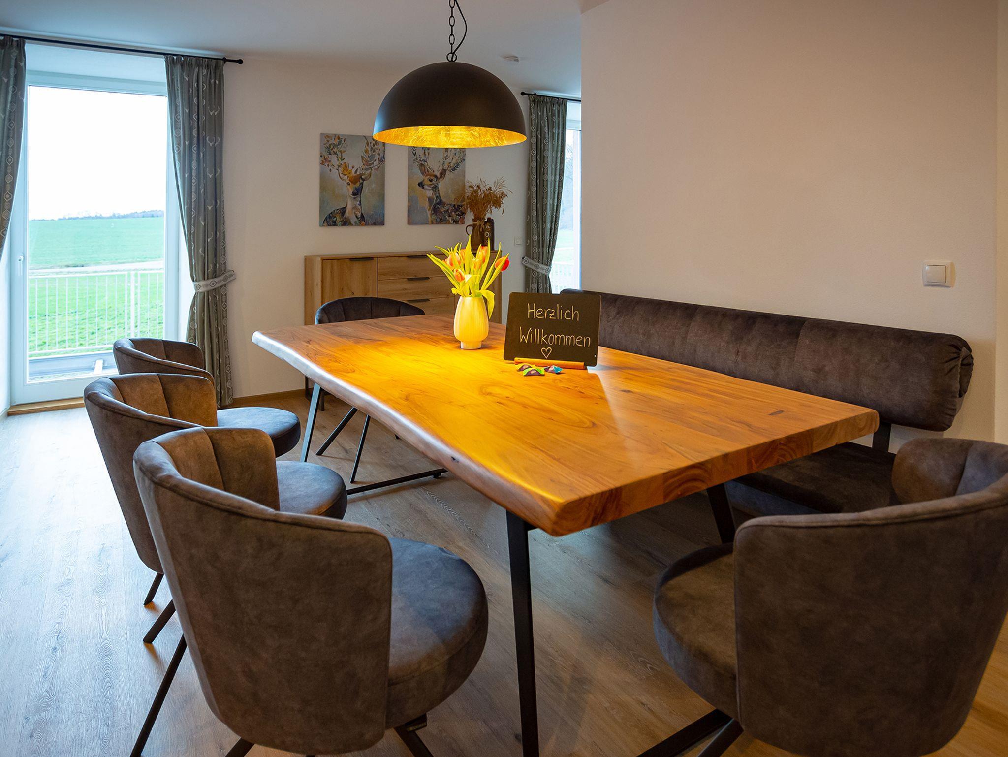 Idyllisch am Waldrand, knapp zwei Kilometer nordwestlich von Rauenberg, befindet sich die Ferienwohnung Wertheim des heute im landwirtschaftlichen Haupterwerb betriebenen Gutshofs Dürrhof. Die großflächige, charmant und modern ausgestattete Ferienwohnung Wertheim lädt mit Blick auf weite Wälder, Wiesen und Felder zur Entspannung und zum Verweilen ein. Erleben Sie modernes Wohnen in den historischen Gemäuern des erstmals 1178 urkundlich erwähnten Klosterhofs. Genießen Sie die ländliche Lage, das Vogelzwitschern in den frühen Morgenstunden und den klaren Sternenhimmel in der Nacht. Es erwarten Sie zahlreiche Freizeitaktivitäten im lieblichen Taubertal, Maintal oder direkt vor der Haustüre. Die Ferienwohnung Wertheim bietet auf 128 m² Platz für bis zu 6 Personen. Sie verfügt über drei Schlafzimmer, einen großräumigen Wohn- und Essbereich mit Küche, zwei Badezimmer sowie eine großflächige Terrasse. In direkter Nähe zur Ferienwohnung finden Sie einen kostenfreien Stellplatz für Ihr Fahrzeug.