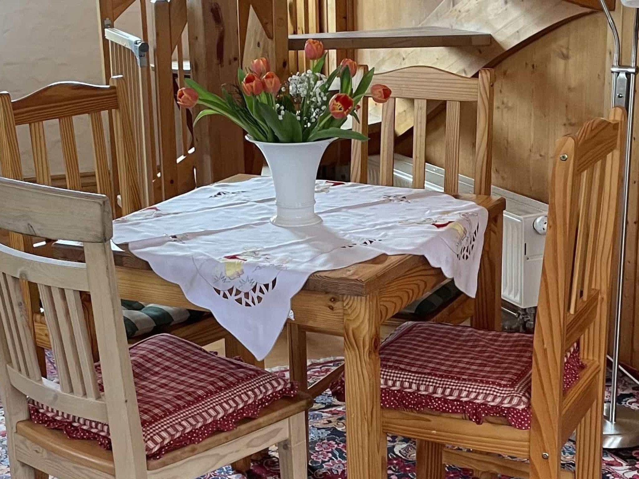 The lovingly furnished holiday flat offers many opportunities for relaxation and socialising. The entrance to the approx. 50m² holiday flat is on the ground floor of the house and offers space for two to three people. In the open-plan living, dining and cooking area you will find a fully equipped kitchenette. In addition to all the important kitchen utensils, there is also a toaster, a kettle, an electric hob and an oven. The dining table not only invites you to eat together but also to socialise. In the adjoining living area, a sofa corner with a TV invites you to linger. The sofa can also be used as a sofa bed (185cm x 125cm). A staircase takes you to the first floor, where you will find the cosy bedroom with a double bed. The shower room with hairdryer and WC completes the offer.
