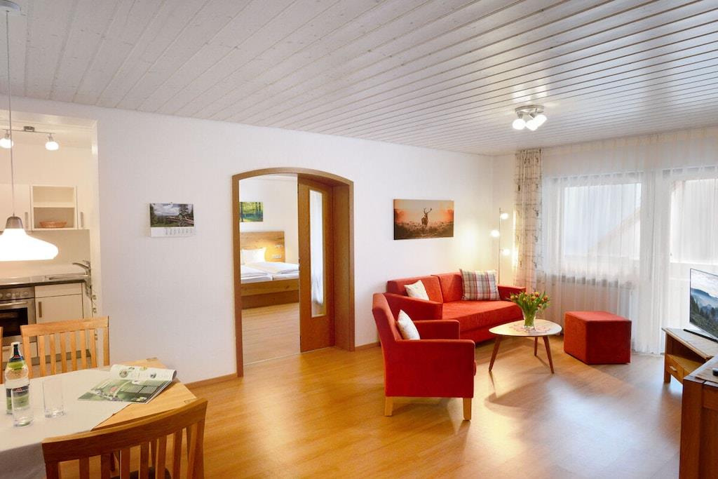 På vores landsted Anja tilbyder vi en moderne og komfortabelt møbleret ferielejlighed i en fuldstændig fredelig beliggenhed. Lejligheden består af en stue, soveværelse, bad/toilet og køkken. Balkonen byder på en storslået udsigt over det omkringliggende landskab. Den to-værelses ferielejlighed på landsted Anja tilbyder al den komfort, du kan ønske dig på dine mest dyrebare dage på året. Vi tilbyder levering af rundstykker til morgenmad. En drikkevarekælder, et gæstevaskeri med vaskemaskine og tørretumbler samt et lille fitnessrum er også tilgængelige. Wi-Fi er inkluderet.