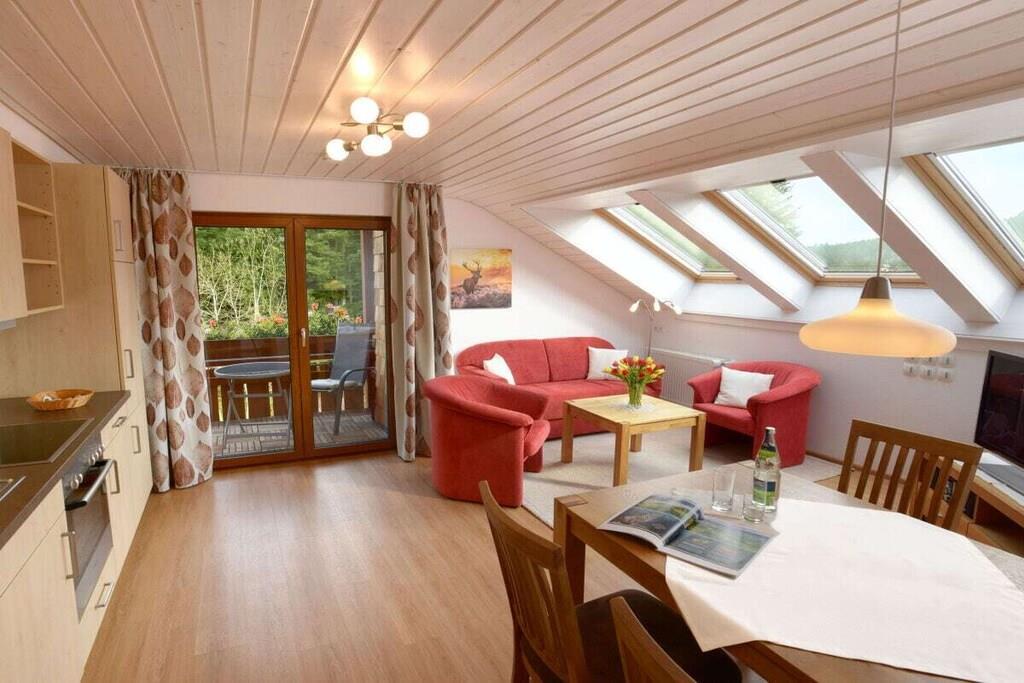 In our country house Anja we offer a modern and comfortably furnished holiday apartment in an absolutely quiet location. The balcony offers a wonderful view of the great outdoors. The light-flooded apartment "Lautertal" offers the comfort you could wish for on the most beautiful days of the year. For breakfast we offer our bread roll service. New: WiFi included.