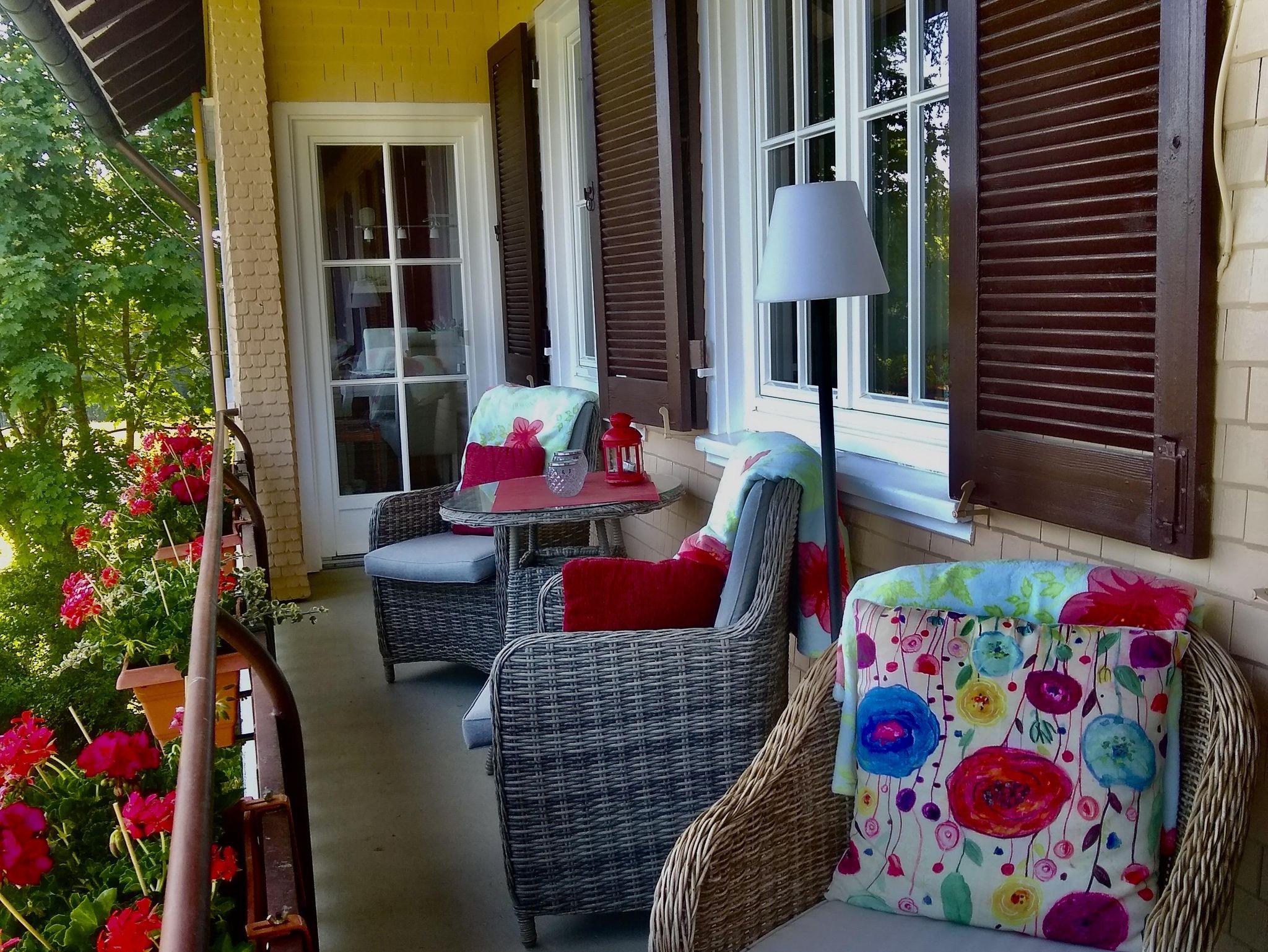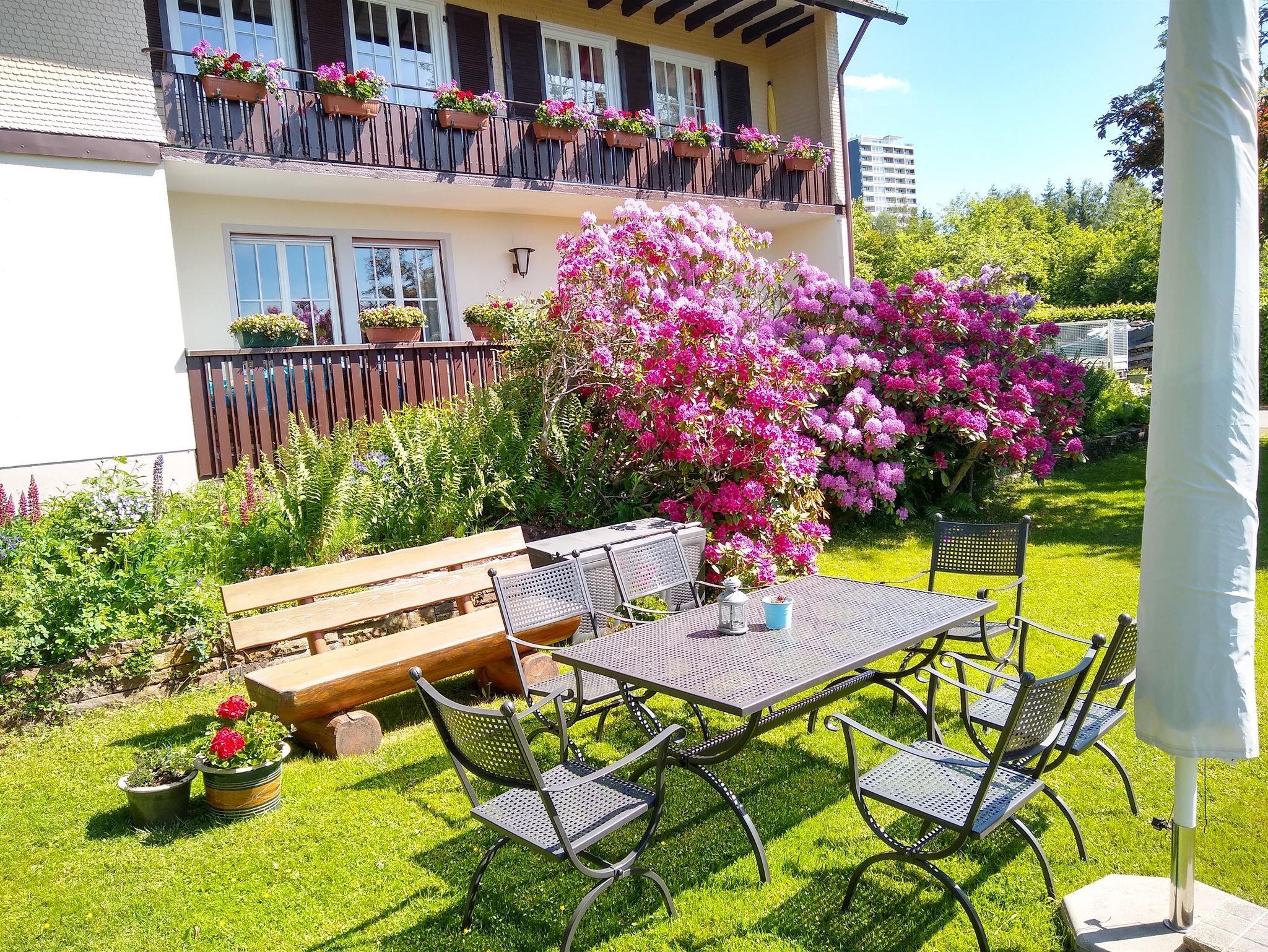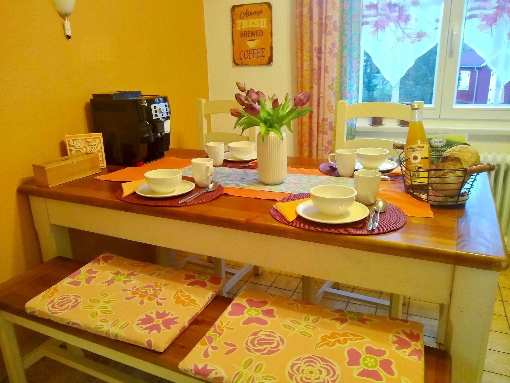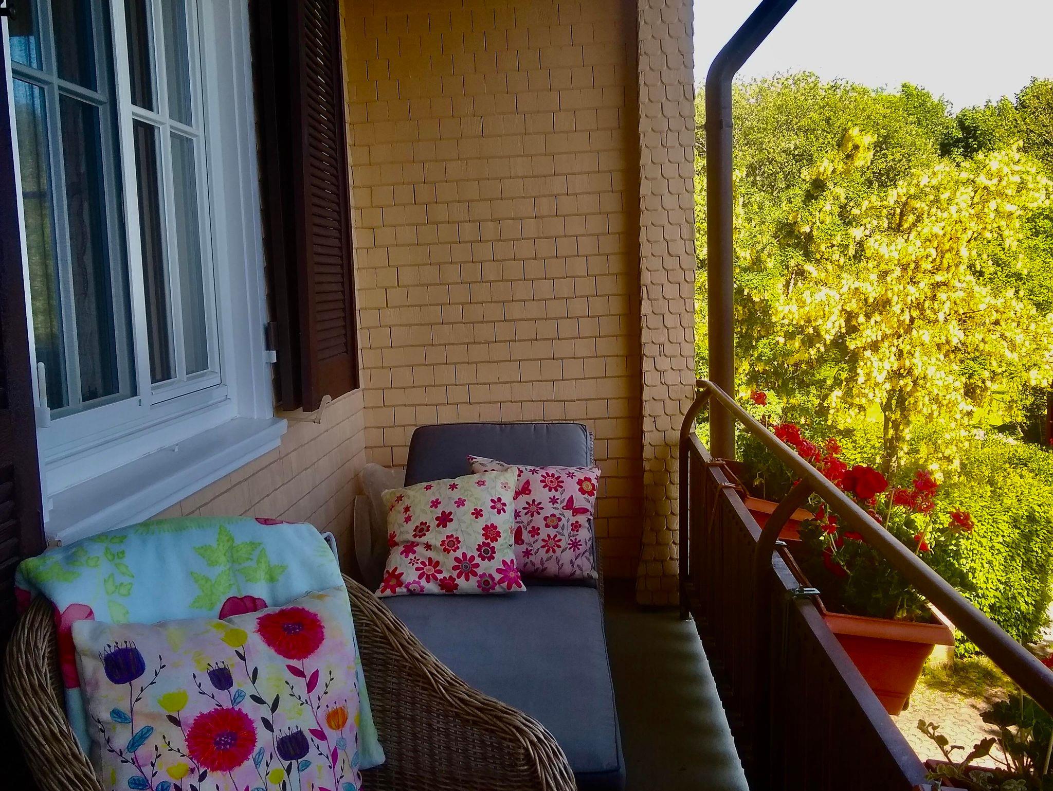 Darüber hinaus steht Ihnen ein Balkon, ein großer Garten mit 3 Sitzgruppen zur Mitbenutzung, kostenloses WLAN und ein PKW Stellplatz am Haus zur Verfügung.