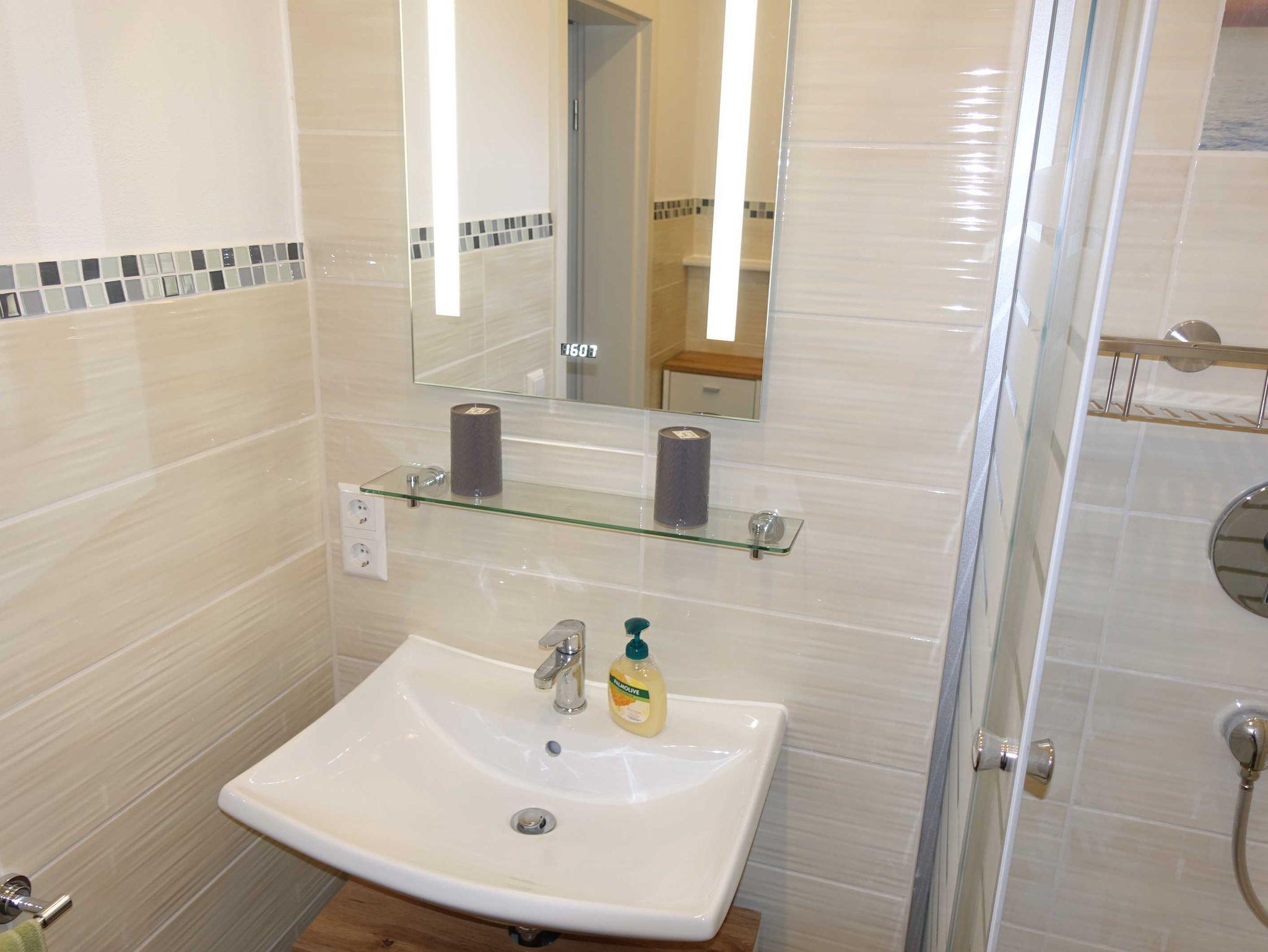 Das kleine aber gemütliche Badezimmer verfügt über Dusche, WC und Waschbecken, Toilettenpapier und ein Handtuchset stehen Ihnen selbstverständlich kostenlos zur Verfügung.