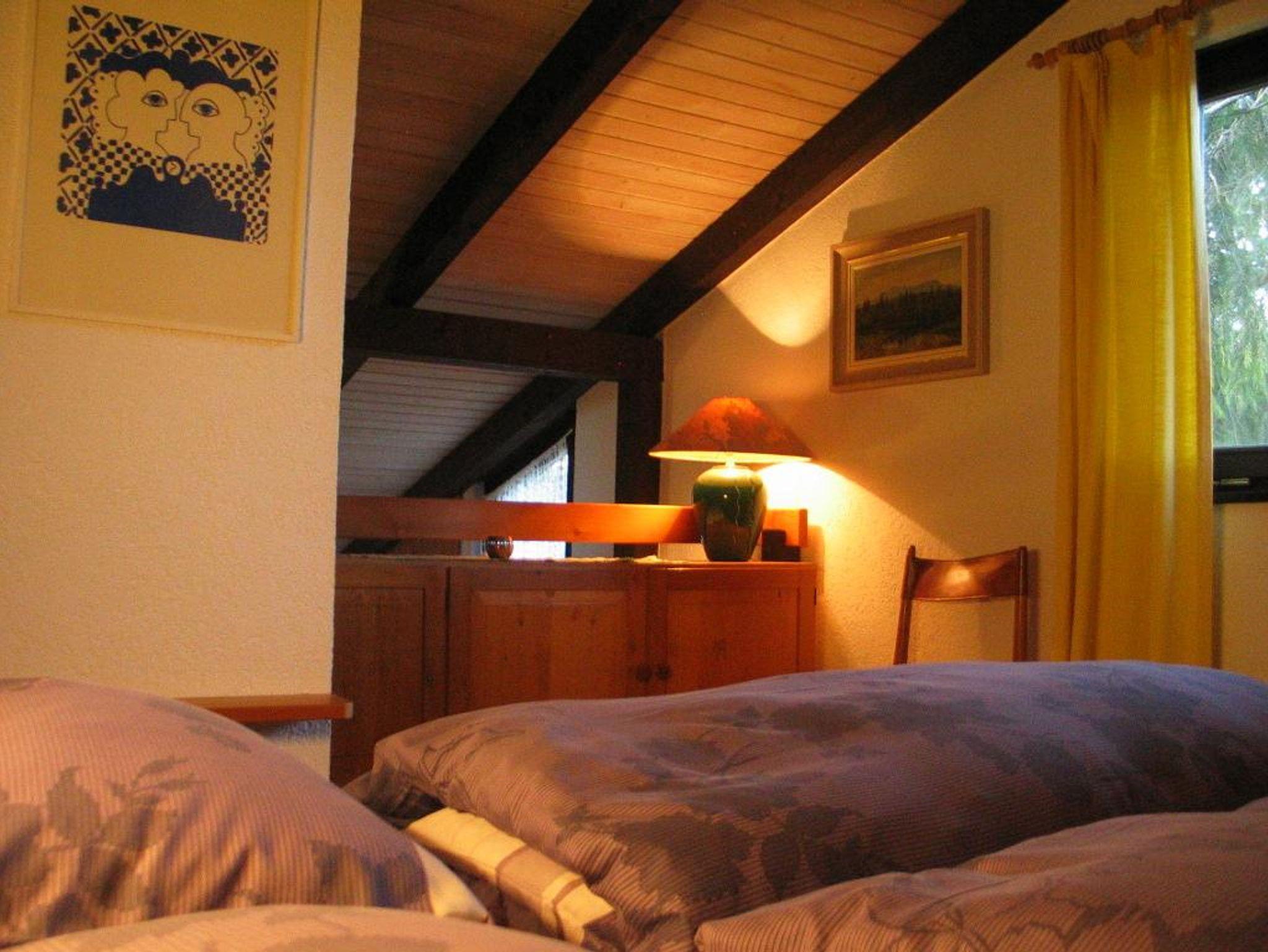 In der Elternschlafzone (obere Ebene) ein Doppelbett, Wäschevitrine.