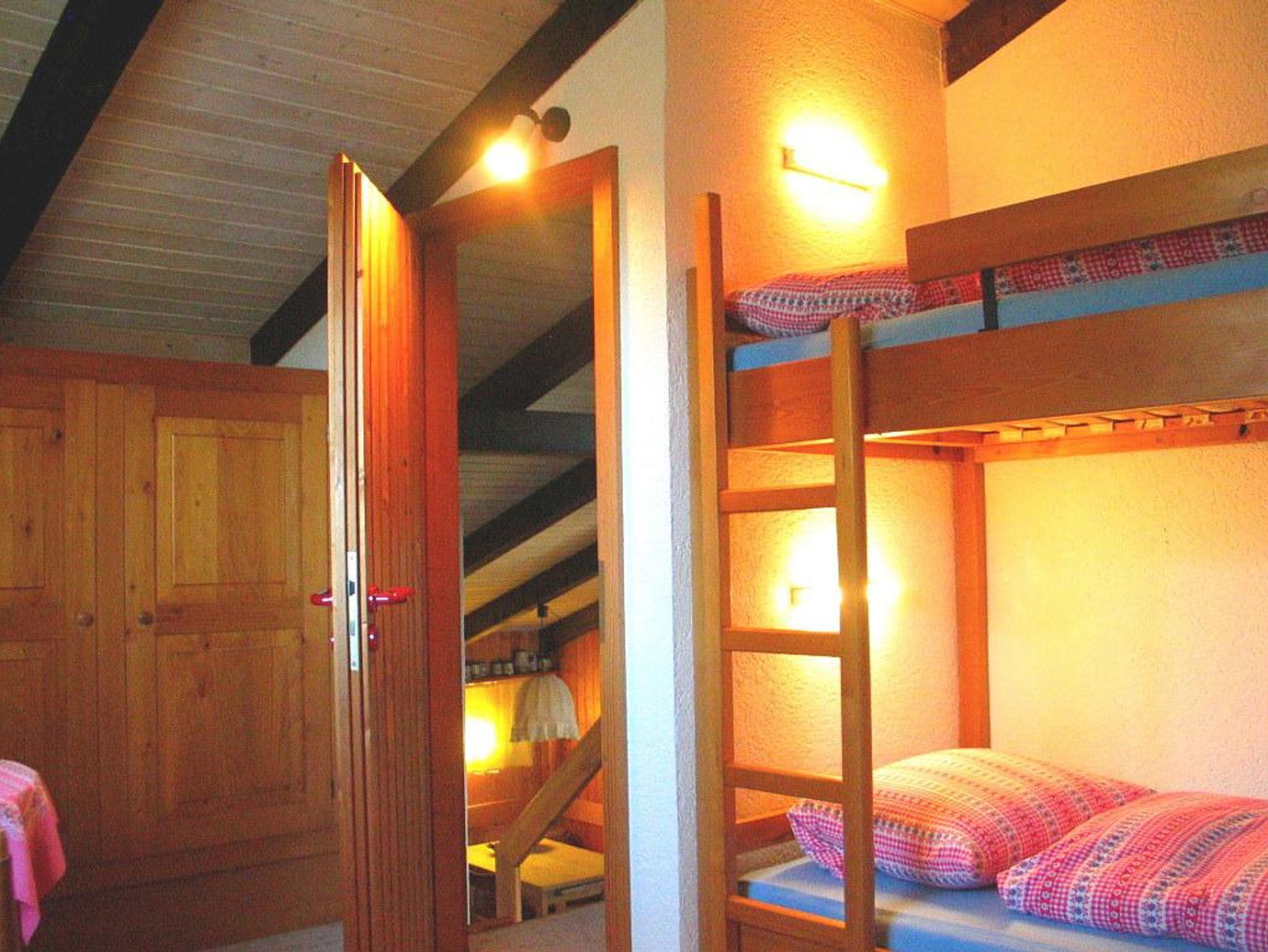 Zweite Schlafzone (verschließbar) ein Einzelbett, 1,9m, ein Stockbett,1.9m, dreiteiliger Kleiderschrank, Tisch mit 2 Stühlen, Elektrozusatzheizung.