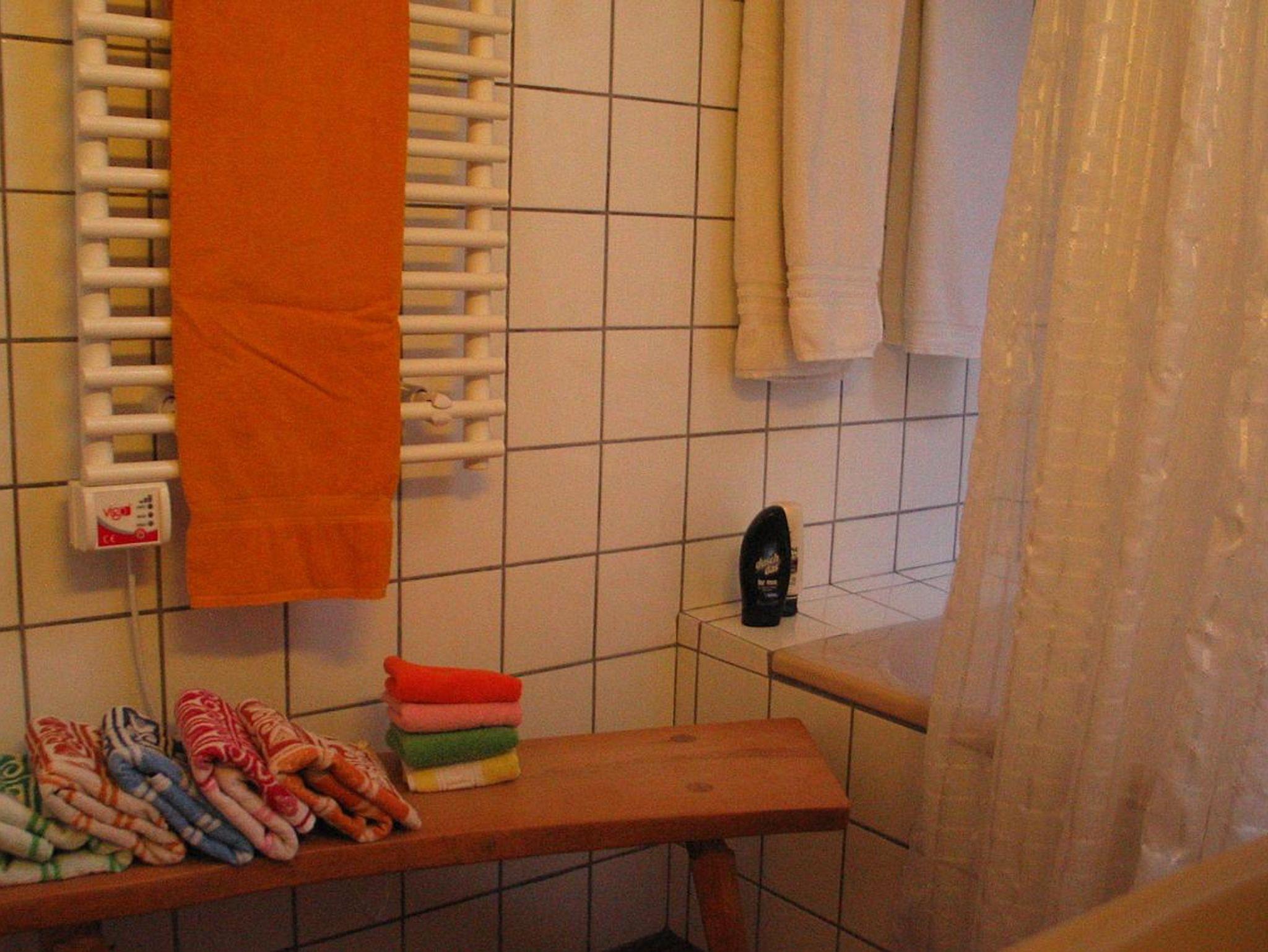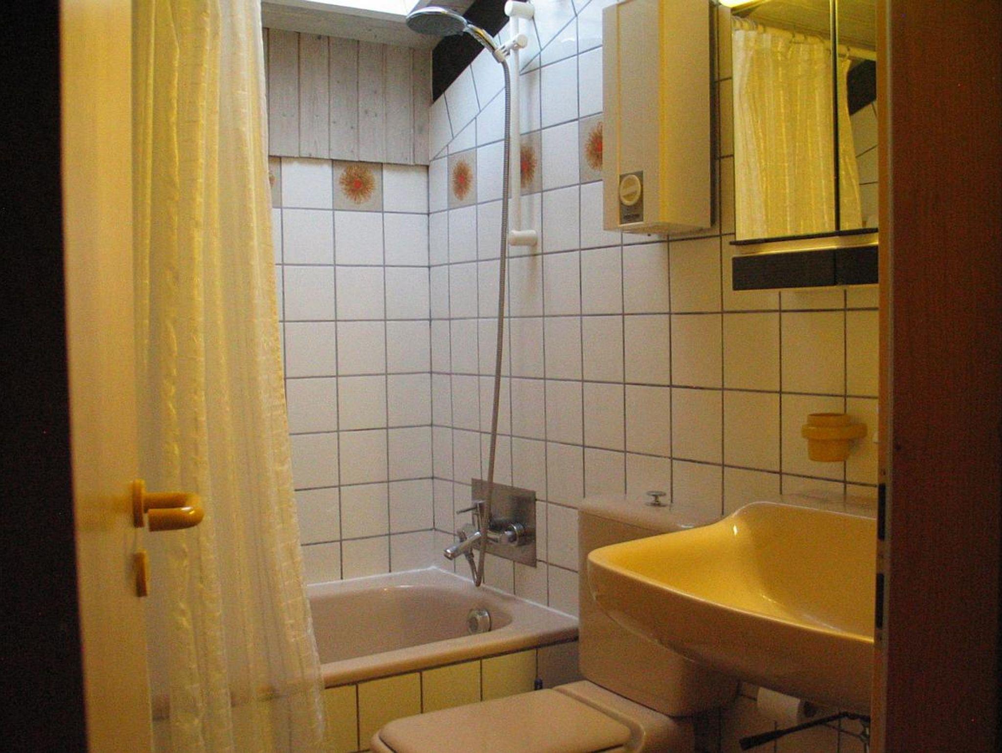 Bad: WC, Badewanne, Dusche in der Wanne, elekt. Durchlauferhitzer, Spiegelschrank, Fön, Mindesthygieneartikel, Hocker, Handtuchregal, Handtuchwärmer