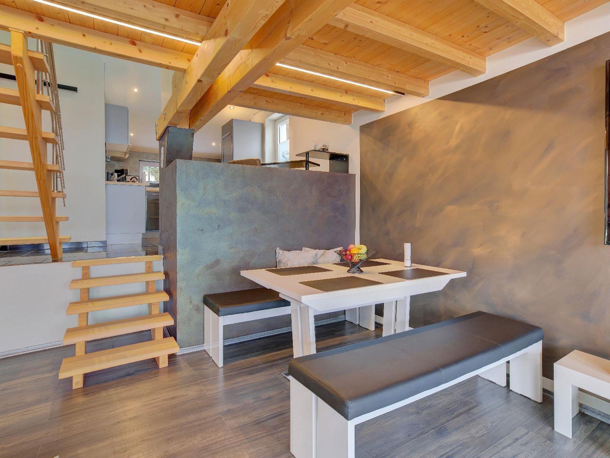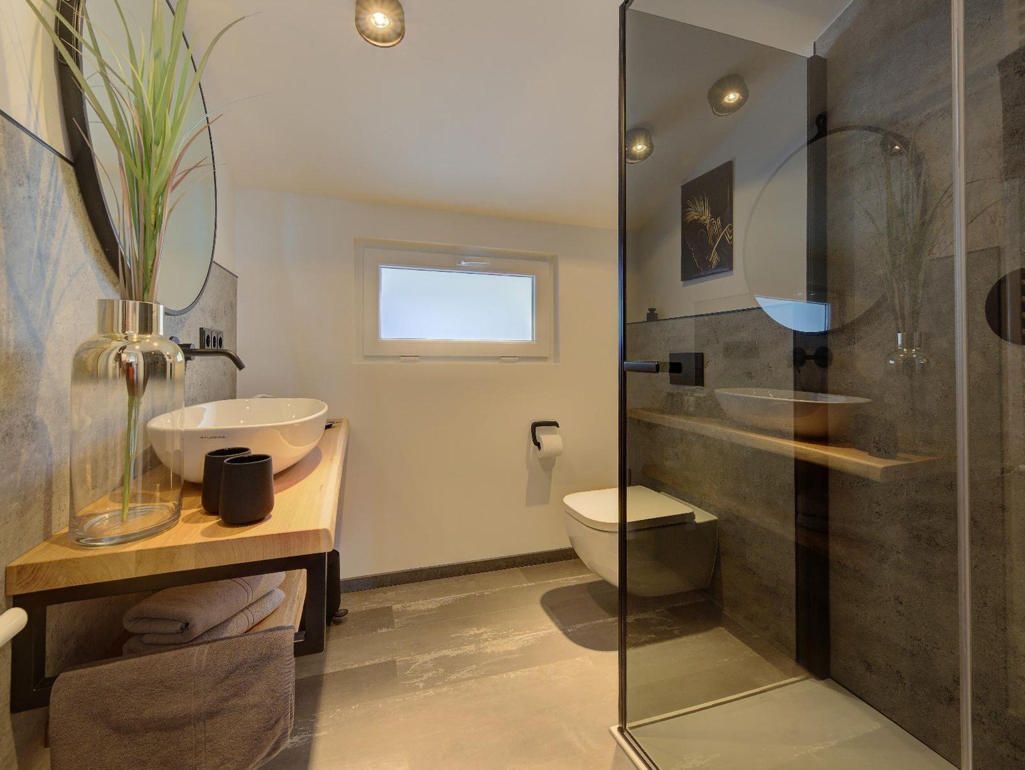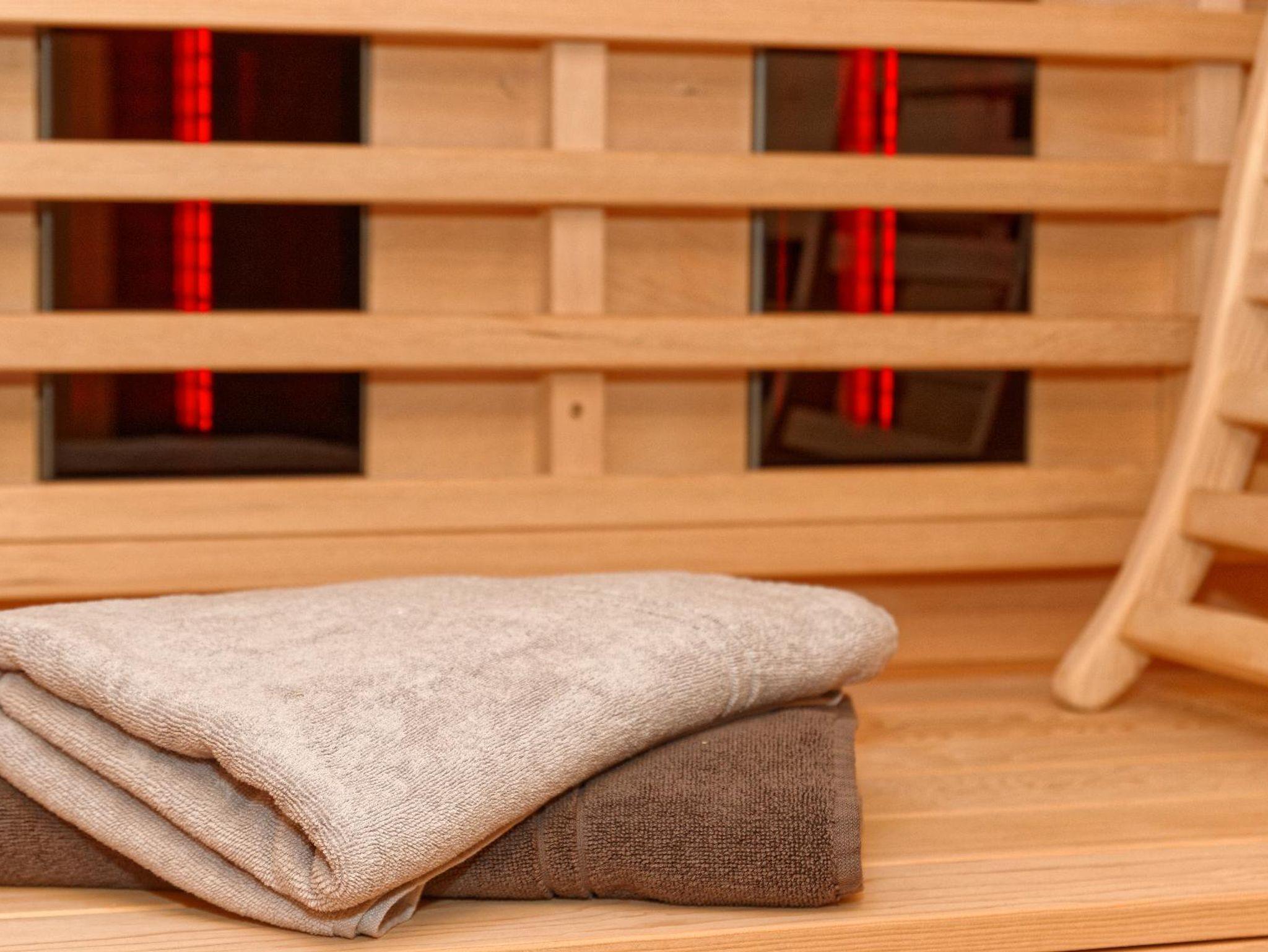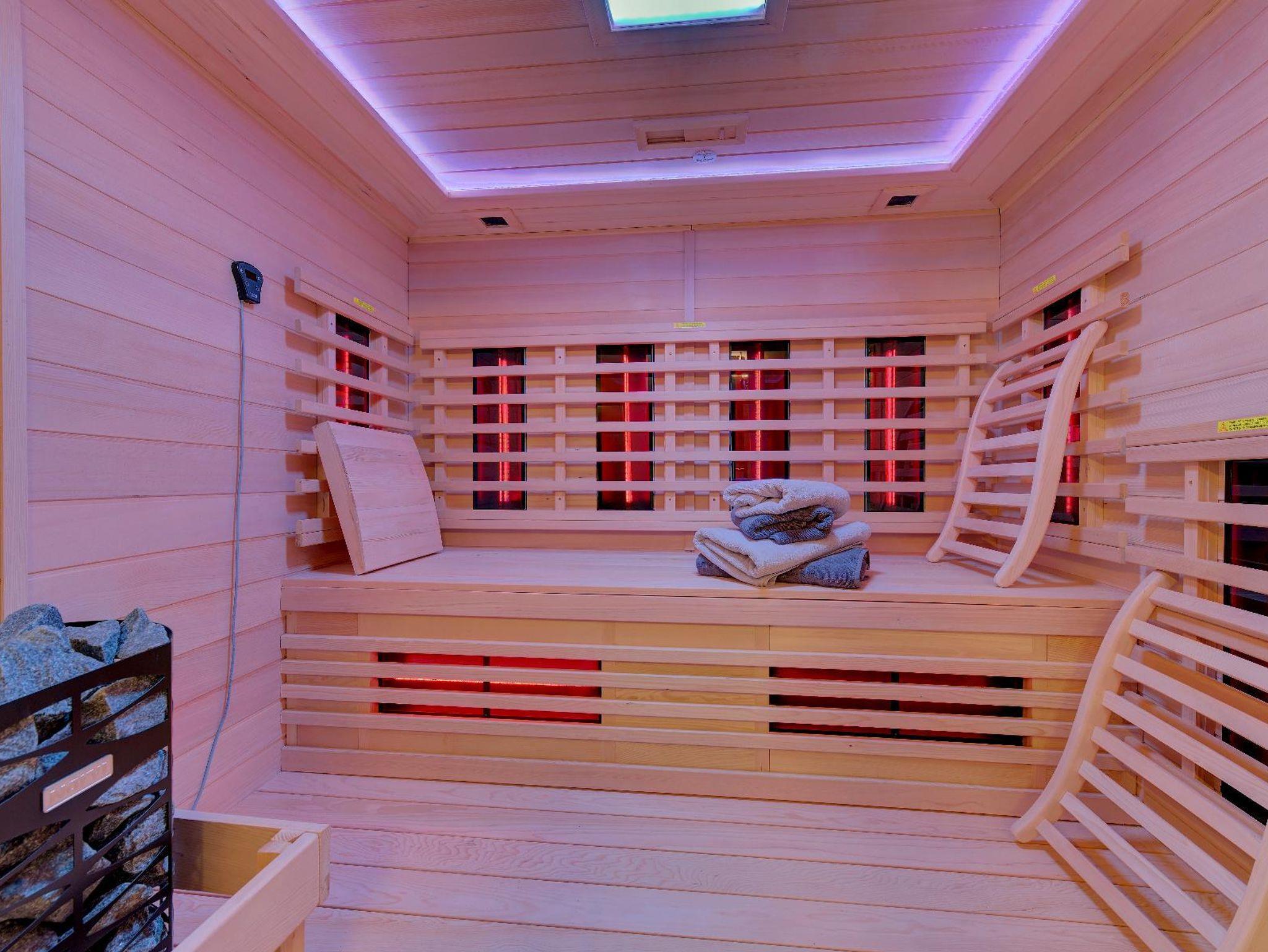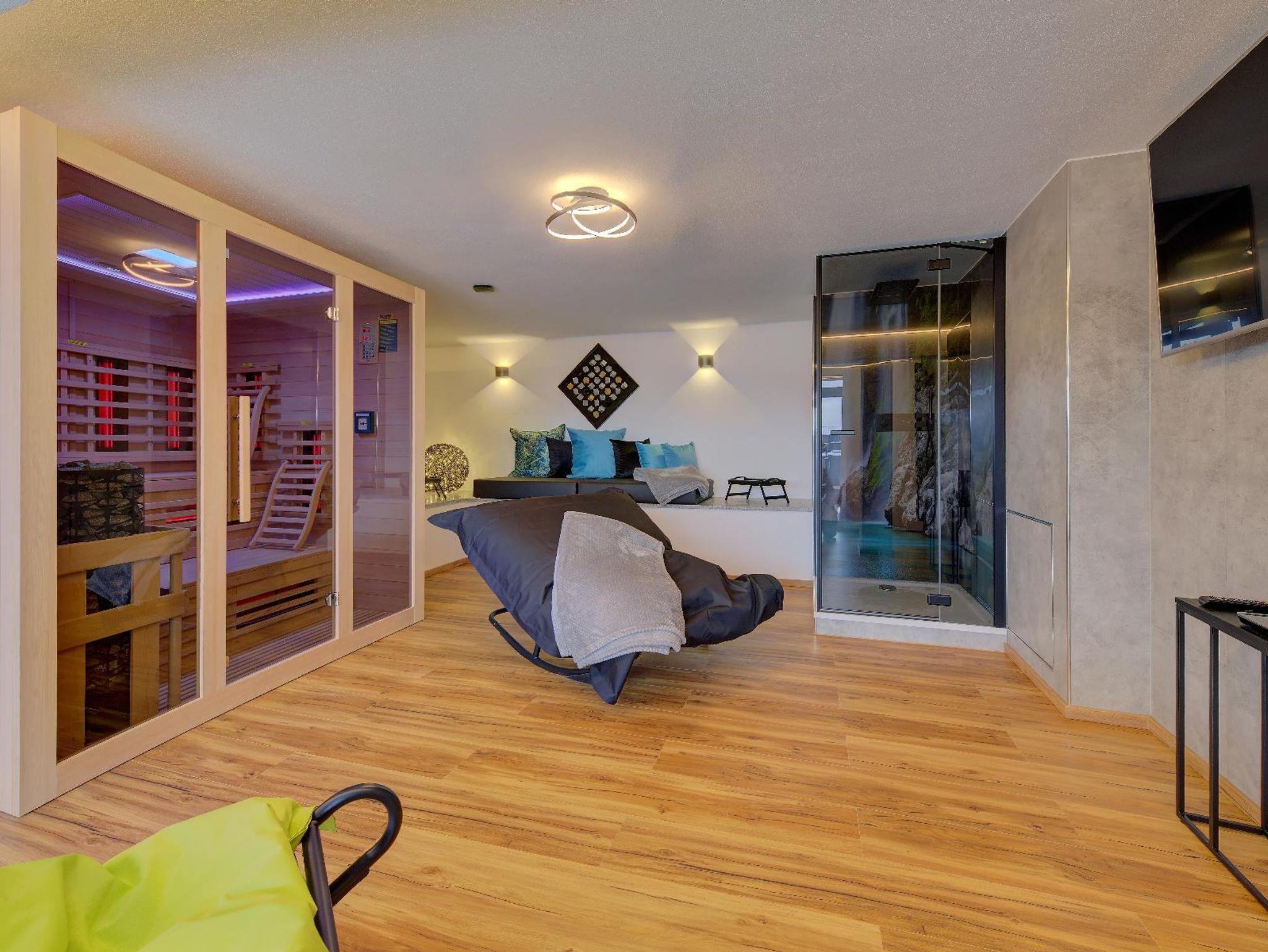 Der gemütlich gestaltete Wellnessbereich lädt Sie zum Relaxen in Ihrer privaten Kombisauna (Infrarot und/oder Ofen) ein. Ein durchgehende beheizter privater Whirlpool befindet sich auf Ihrer hauseigenen Terrasse direkt vom Wellnessraum zugänglich.