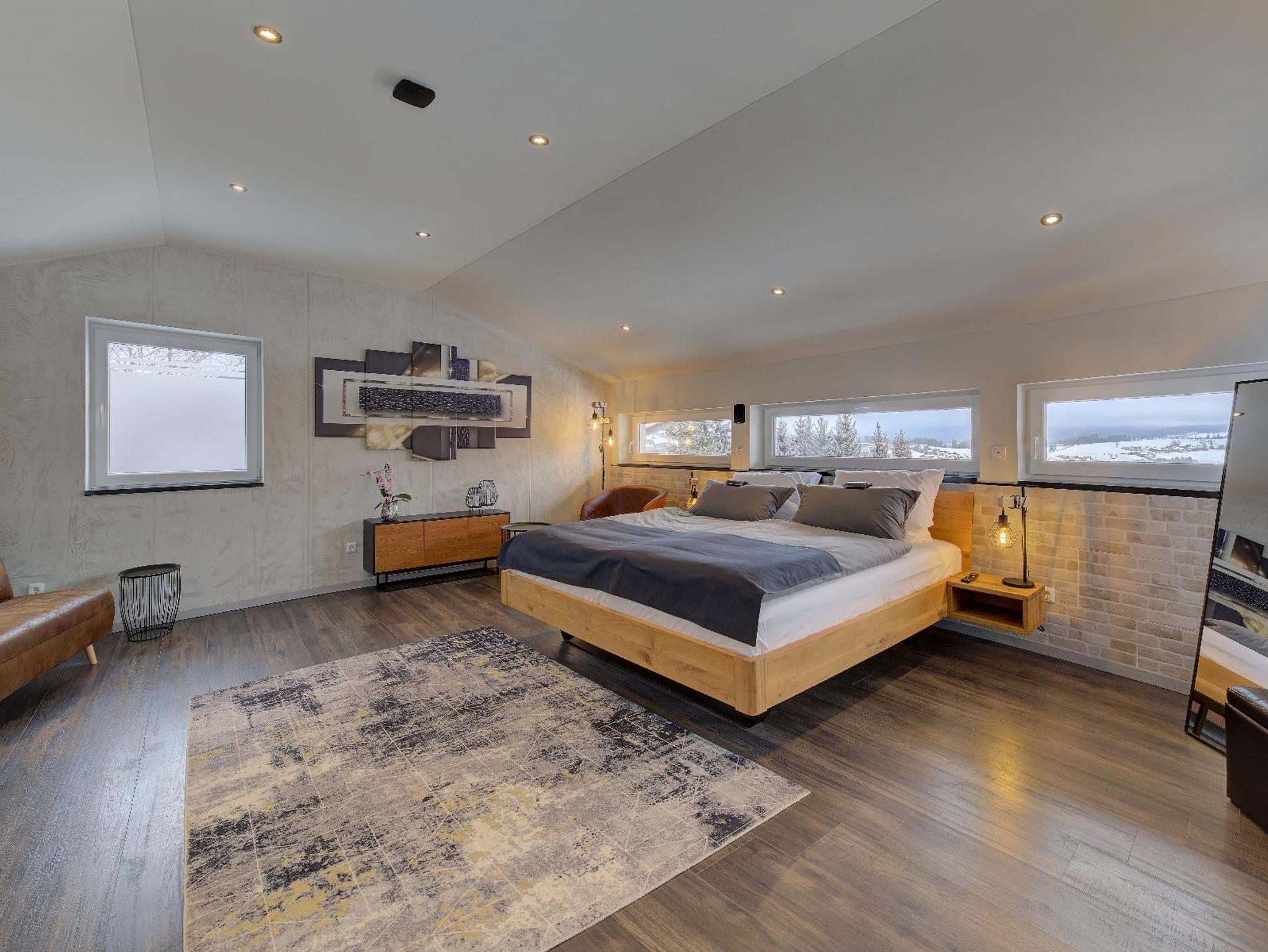Im Schlafzimmer, Wohnzimmer und Ihrem privaten Wellnessbereich steht Ihnen jeweils ein großer Fernseher zur Verfügung.