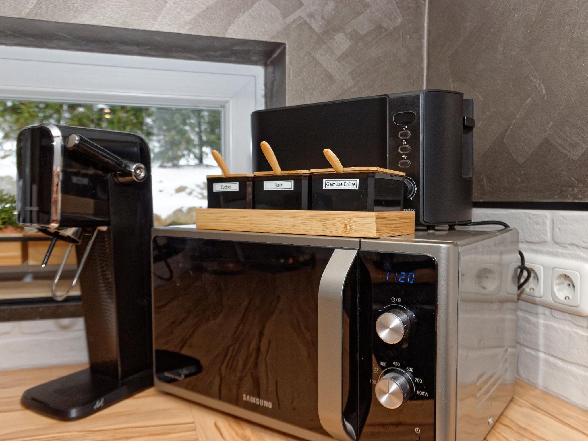 Unser Young & Fun Wellness Chalet ist vollständig ausgestattet. Vom Besteck, Geschirr, Pfannen und Töpfen bis zur Spülmaschine, von Bettwäsche, Handtüchern, Fön bis hin zum Tablet mit Internet ist alles vorhanden. Eine Nespresso-Kapsel-Maschine, ein Wasserkocher, Toaster, Backofen, Microwelle und Sodastream steht ebenfalls für Sie bereit.