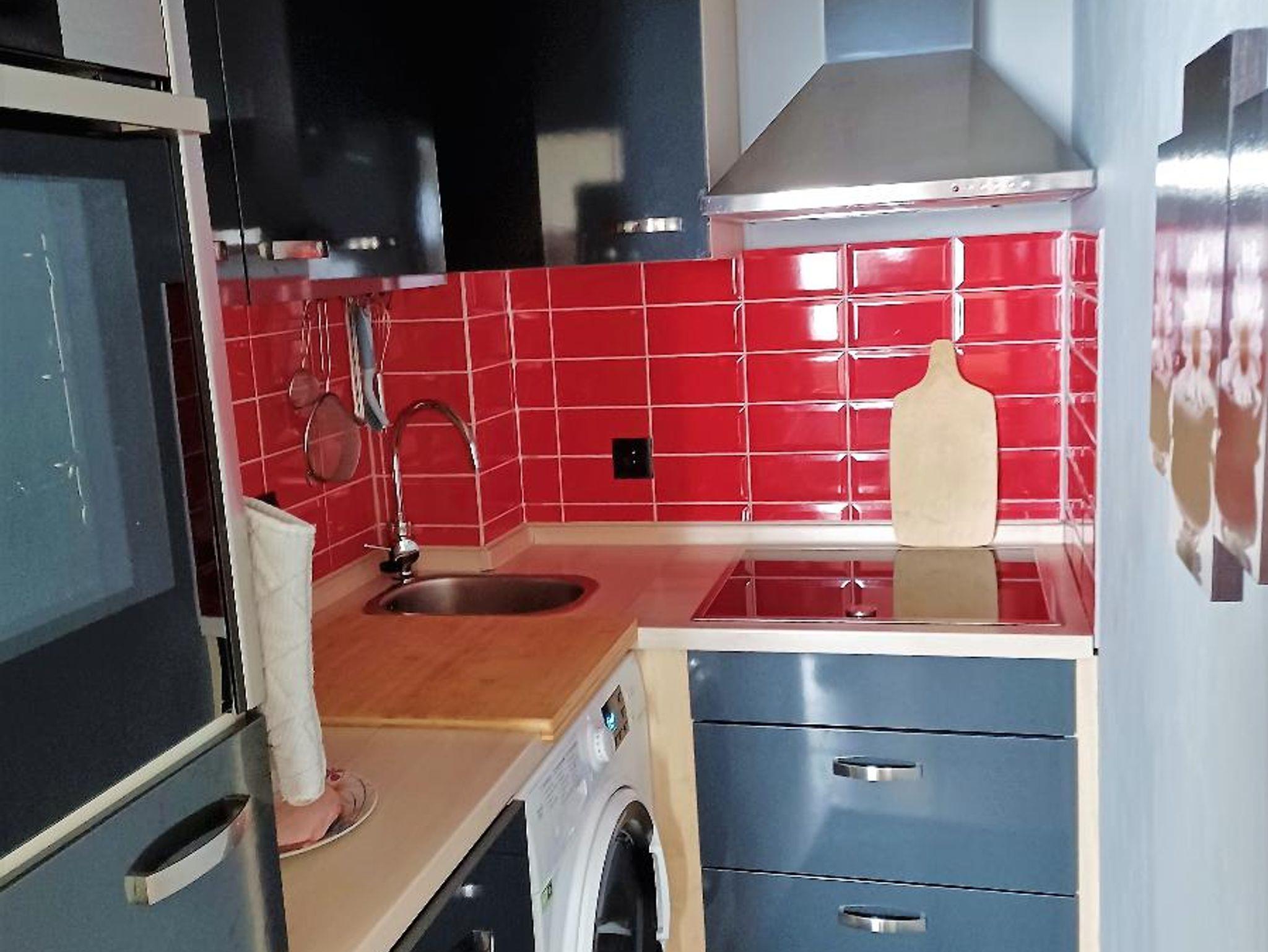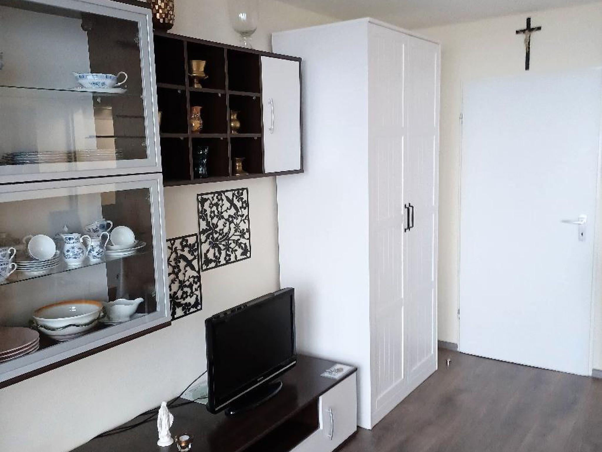 Bequemes Boxspring Doppelbett, inklusive Bettdecken und Kissen, Bade-, Hand- Geschirrtücher, Duschvorlage, Couchtisch, großer geräumiger Wohnzimmer Schrank, Flachbildschirm TV/Radio, moderne Sitz- Essecke mit Tisch und 4 bequemen Polster Stühlen, voll ausgestattete moderne Hochglanz Einbauküche (Farbe grau) mit Ceran Kochfeld, separater Backofen mit allen Funktionen (auch Grill), Toaster, Kaffeemaschine, Wasserkocher, Kühlschrank mit Gefrierfach, Spül- und Waschmaschine, Badezimmer Dusche (Wanne 80 x 80 cm) mit WC, Flur mit Garderobe und Schiebetür Schrank inkl. Staubsauger und diverser Reinigungsausstattung, großzügiger Balkon ausgestattet mit Tisch, Stühlen, verstellbaren Alu Sesseln und Sonnenschirm.