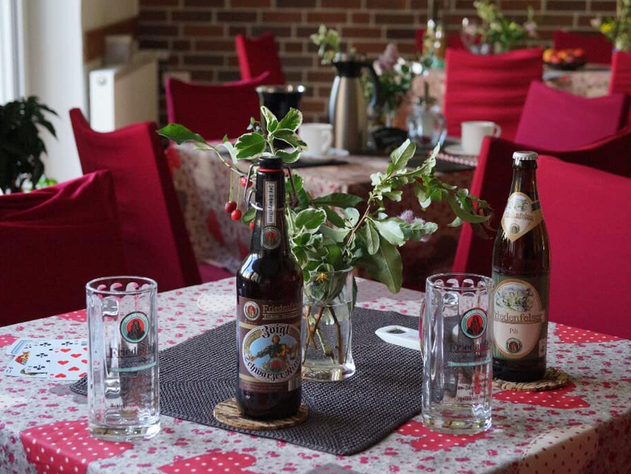 Wir sind mit unseren 6 ruhig gelegenen Zimmern gern für Sie da. Unsere Zimmer haben Sat-TV, Duschbad und WC sowie freies WLAN für unsere Gäste. Am Morgen steht für Sie ein Frühstücksbuffet bereit. Nach Absprache auch für Vegetarier. In unserem gemütlichem Frühstücksraum können Sie auch am Abend in geselliger Runde ein Glas Wein oder ein Bier trinken. Für Gäste, die gern lesen, befindet sich im Haus eine umfangreiche Bibliothek, die von allen genutzt werden kann. Seit Herbst 2017 können die Gäste in der hauseigenen Gartensauna zur Ruhe kommen.
