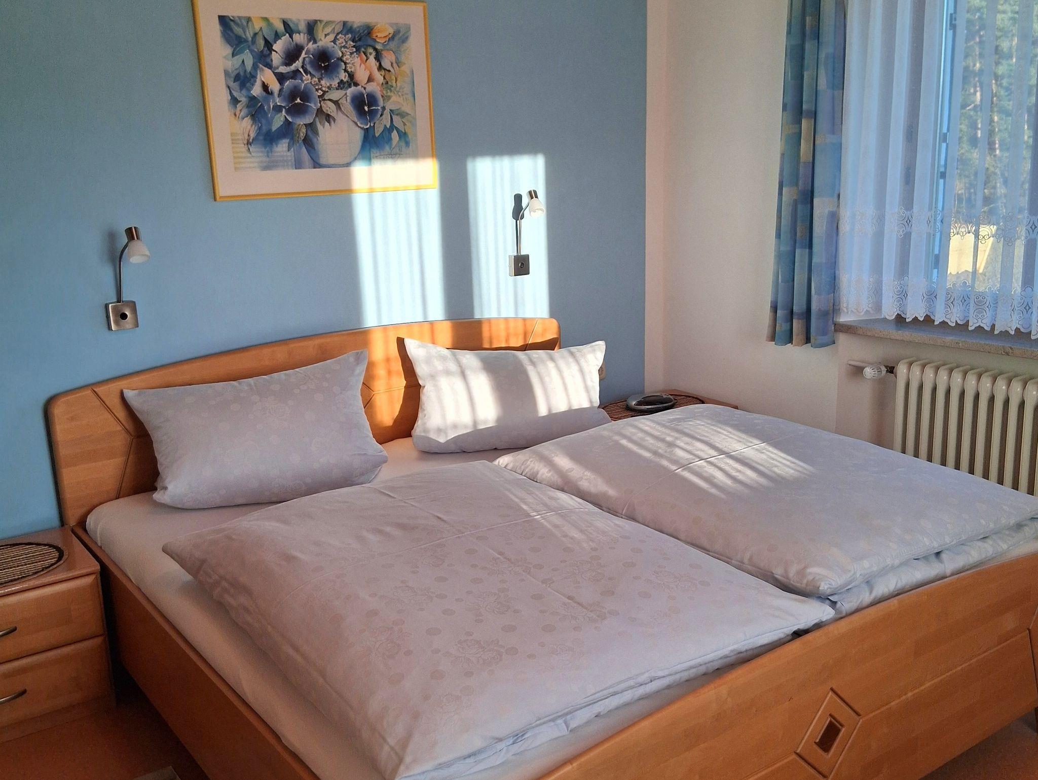 Friedenfels liegt im Naturpark Steinwald und inmitten der Natur. 140 km markierte Wanderwege führen zu sagenhaften Stellen im Naturpark. Außerdem lohnen sich Ausflüge ins Nachbarland - nach Eger, Karlsbad oder Marienbad. Die Wohnung bietet auf 61 m2 Platz für bis zu vier Personen. Beide Schlafräume sind jeweils mit einem Doppelbett ausgestattet. Der Wohnraum verfügt über einen SAT-TV und ein gemütliches Sofa. Die Küche ist ausgestattet mit einer Essecke, einem Kühlschrank, einer Kaffeemaschine, einer Mikrowelle und einem Toaster. Das Badezimmer mit Dusche und WC rundet das Gesamtbild ab. Der Südbalkon ist das Highlight der Wohnung. Außerdem finden Sie am Haus eine Liegewiese, einen Bolzplatz, Spielgeräte und einen Grillplatz.
