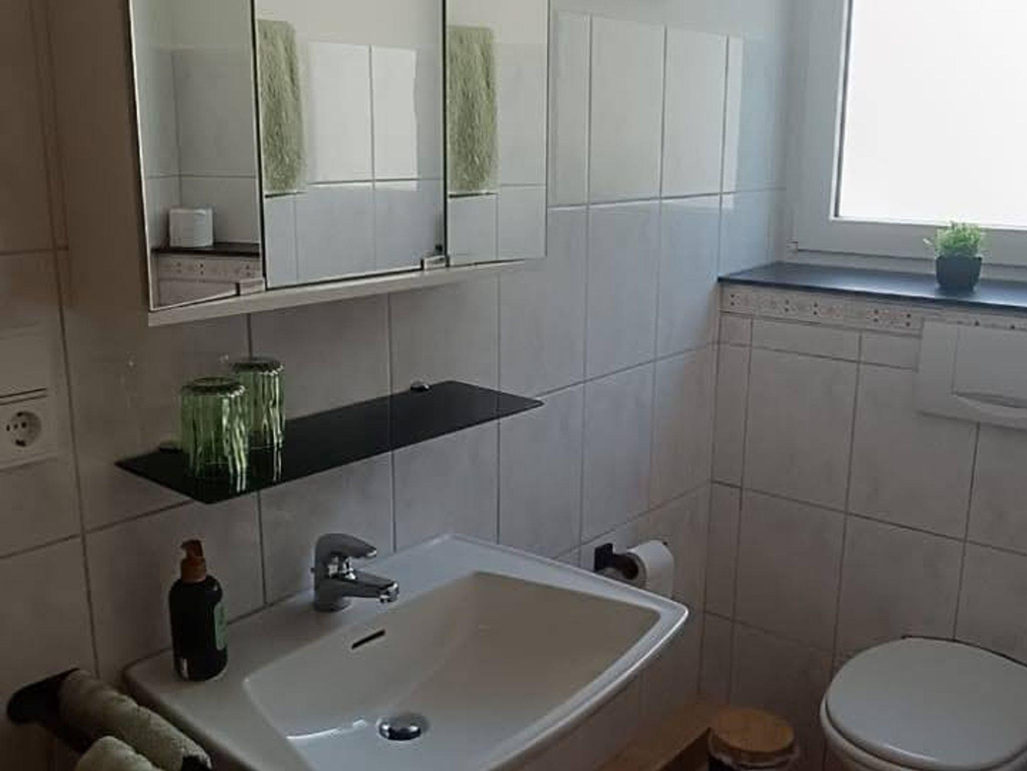 Unsere gemütlich eingerichtete Ferienwohnung mit 63 m² Wohnfläche befindet sich im EG und bietet Platz für 2-4 Personen. Die komplett ausgestattete Küche mit Essecke, Geschirrspüler, Kühlschrank, Herd, Backofen, Wasserkocher, Toaster, Kaffeemaschine und einer Grundausstattung an Geschirr, Gläser und Besteck lässt keine Wünsche offen. Im Wohnbereich befindet eine Schlafcouch, TV mit SAT-Empfang und Zugang zum Balkon mit einem herrlichen Blick ins Grüne. Die Ferienwohnung verfügt über ein Schlafzimmer mit einem Doppelbett und zwei Einzelbetten. Weitere Gäste finden auf dem bequemen Schlafsofa im Wohnbereich Platz. Das Badezimmer bietet eine Dusche und ein WC. Bettwäsche, Handtücher, kostenfreie WLAN-Nutzung, Parkplatz und Endreinigung sind im Preis enthalten. Bitte beachten Sie, dass Haustiere nur nach Absprache erlaubt sind.
