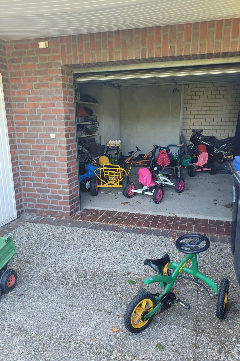 At Ferienhaus Landskron in Friederikensiel, you will stay in a family-friendly holiday flat for up to four people. The holiday home is situated on an extensive plot in a very quiet location directly on the old summer dyke. The large play and sunbathing lawn with numerous children's play equipment is equally popular with our holiday guests and their children. Our large children's vehicle park with go-karts, bobby cars and other children's vehicles for young and old is a particular favourite with the children. So that the children of our holiday guests can play together even in bad weather, they will find numerous opportunities to play in the large open area in the centre of the first floor.