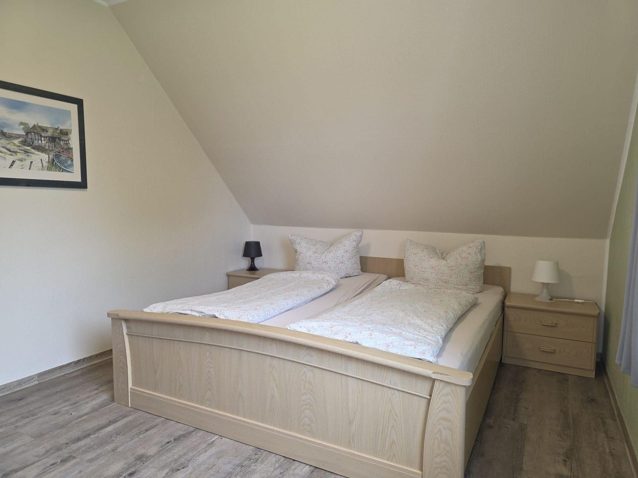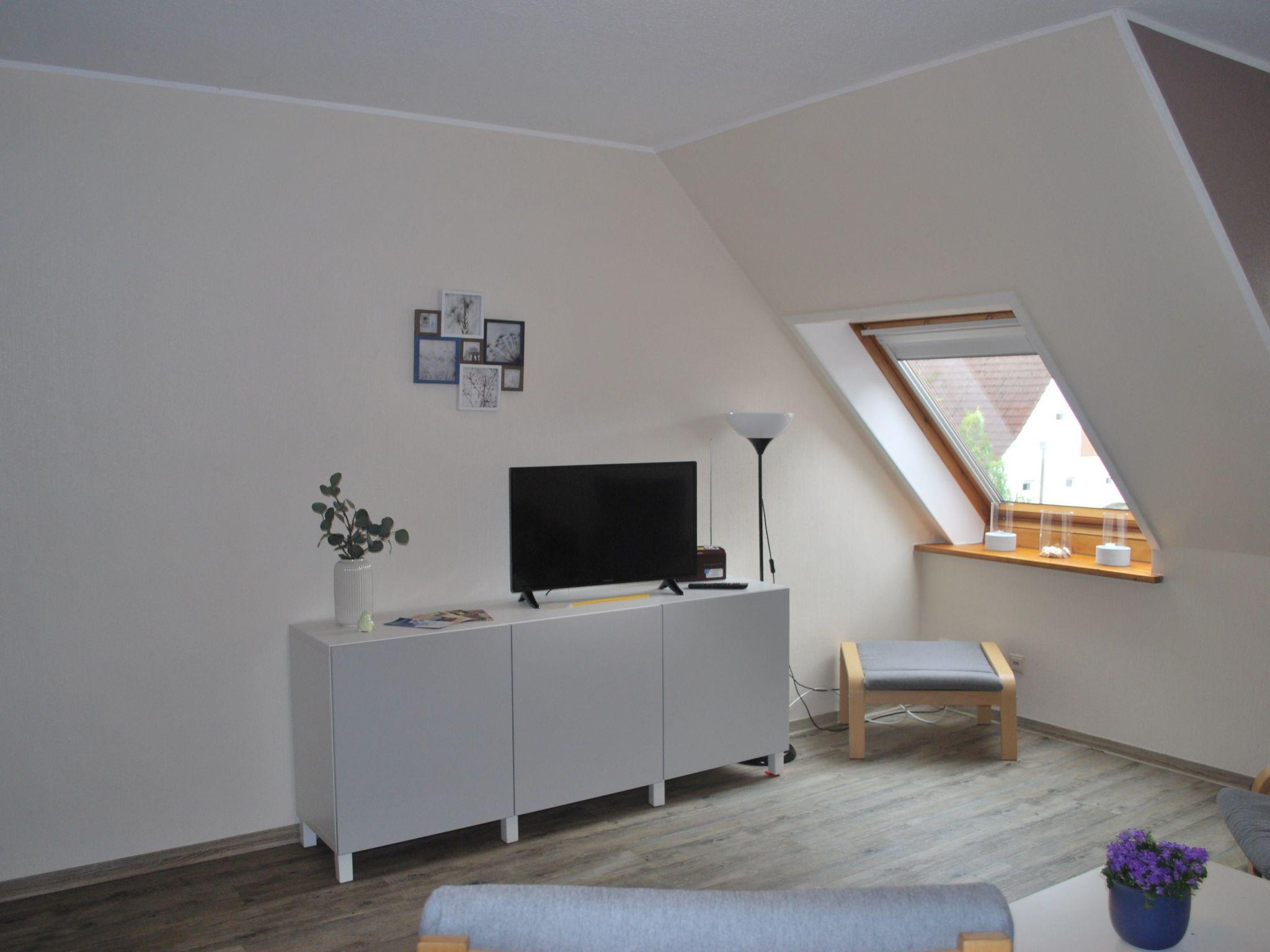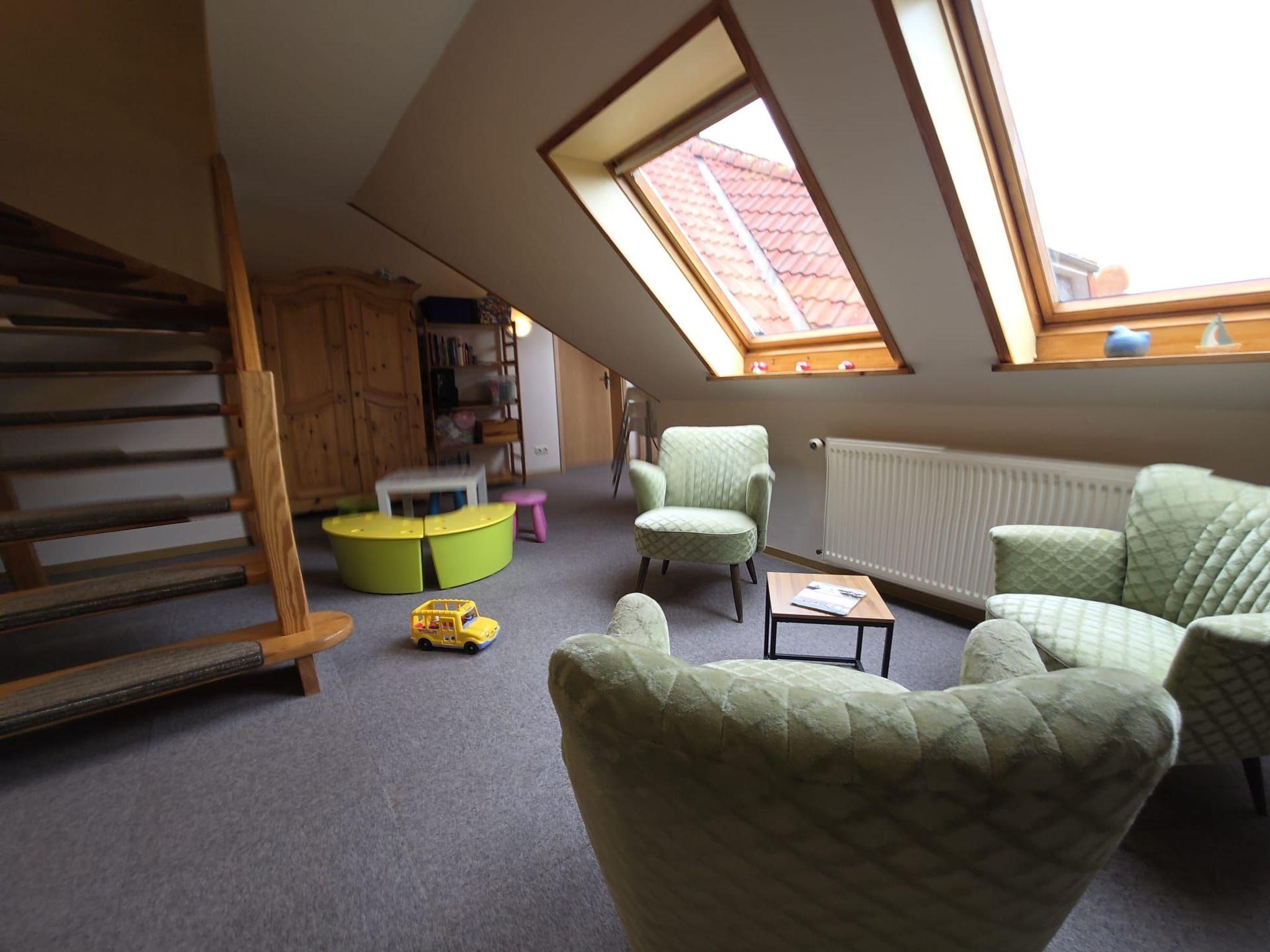 You will stay in a comfortably furnished, approx. 60 square metre, barrier-free 3-room holiday flat on the 1st floor. The centre of the flat is a spacious living area with an open-plan kitchen and dining area for four people. Here you will also find cable TV and a DVD player. Highchairs for children are available if required.