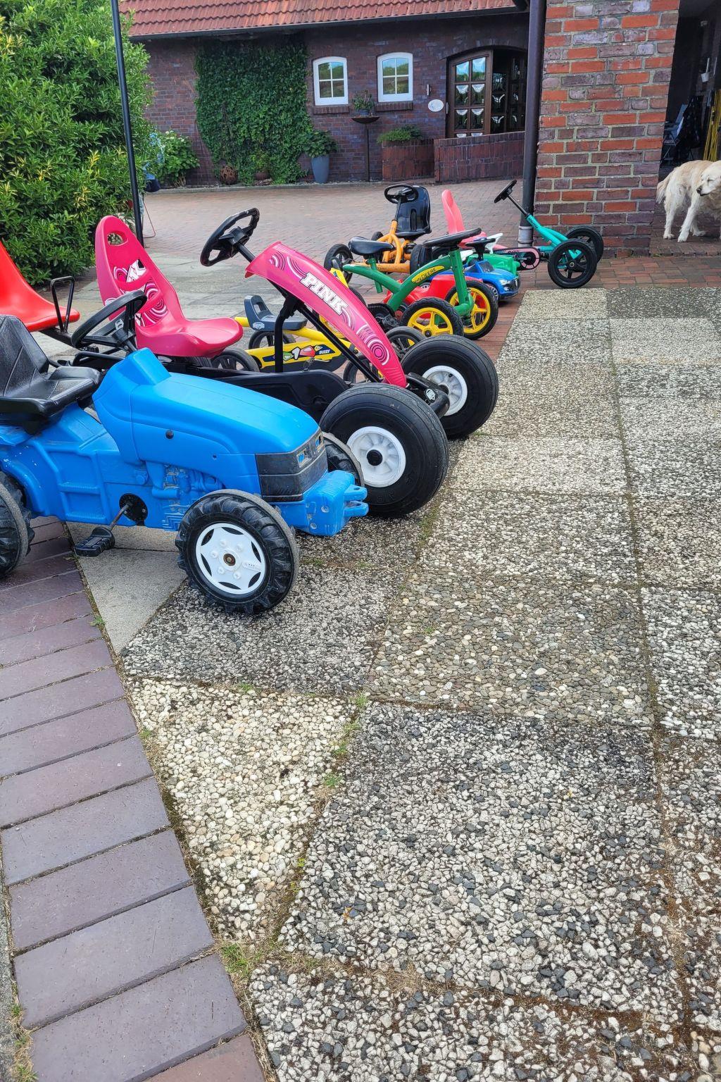 At Ferienhaus Landskron in Friederikensiel, you will stay in a family-friendly holiday flat for up to four people. The holiday home is situated on an extensive plot in a very quiet location directly on the old summer dyke. The large play and sunbathing lawn with numerous children's play equipment is equally popular with our holiday guests and their children. Our large children's vehicle park with go-karts, bobbycars and other children's vehicles for young and old gives the children particular pleasure.
