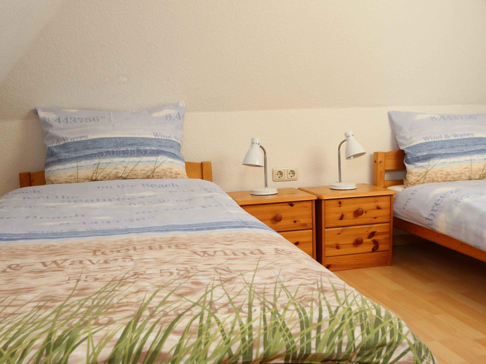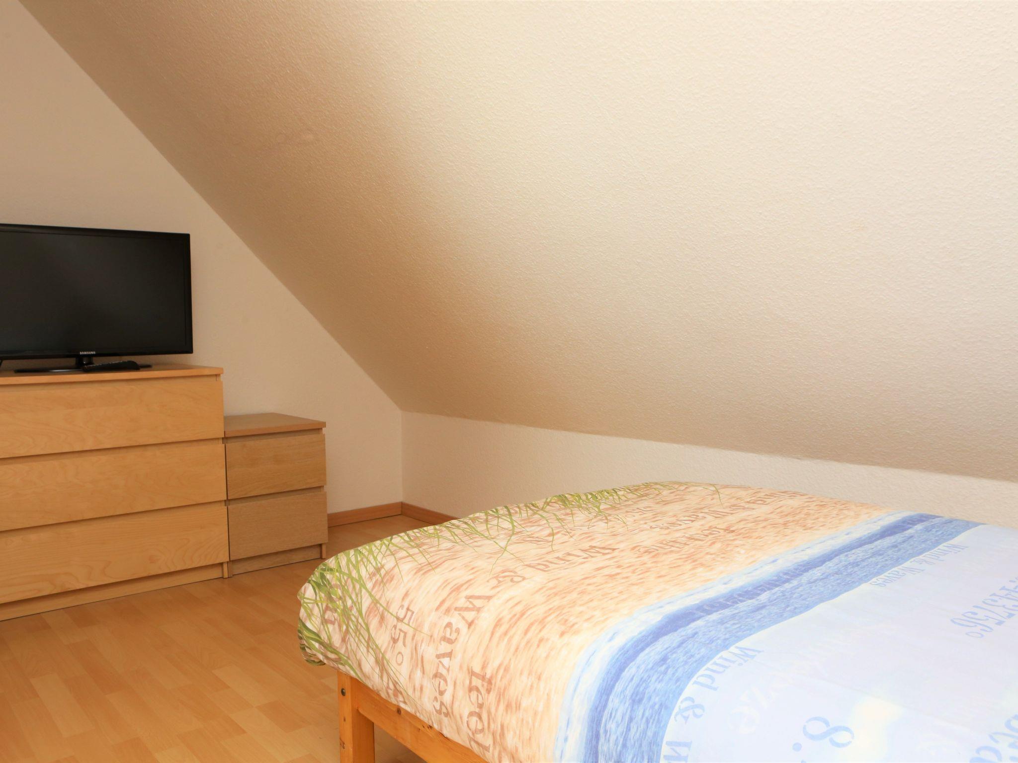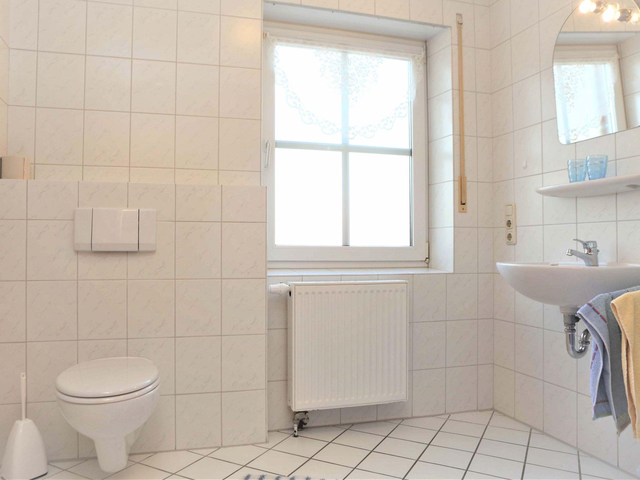 The holiday flat is suitable for 1 to 3 people. It is modern and comfortably furnished in a maritime style. In the kitchenette you will find a cooker, oven, fridge with freezer compartment, kettle and coffee machine, as well as almost everything you need for cooking and enjoyable meals. If you need anything else, please do not hesitate to contact us. We are also happy to provide you with a microwave on request. The dining table is suitable for up to 4 people. The living area has new seating furniture (couch and armchair) with a living room table. Cable TV and a hi-fi system as well as WLAN guarantee the best entertainment. Books and board games are also available.