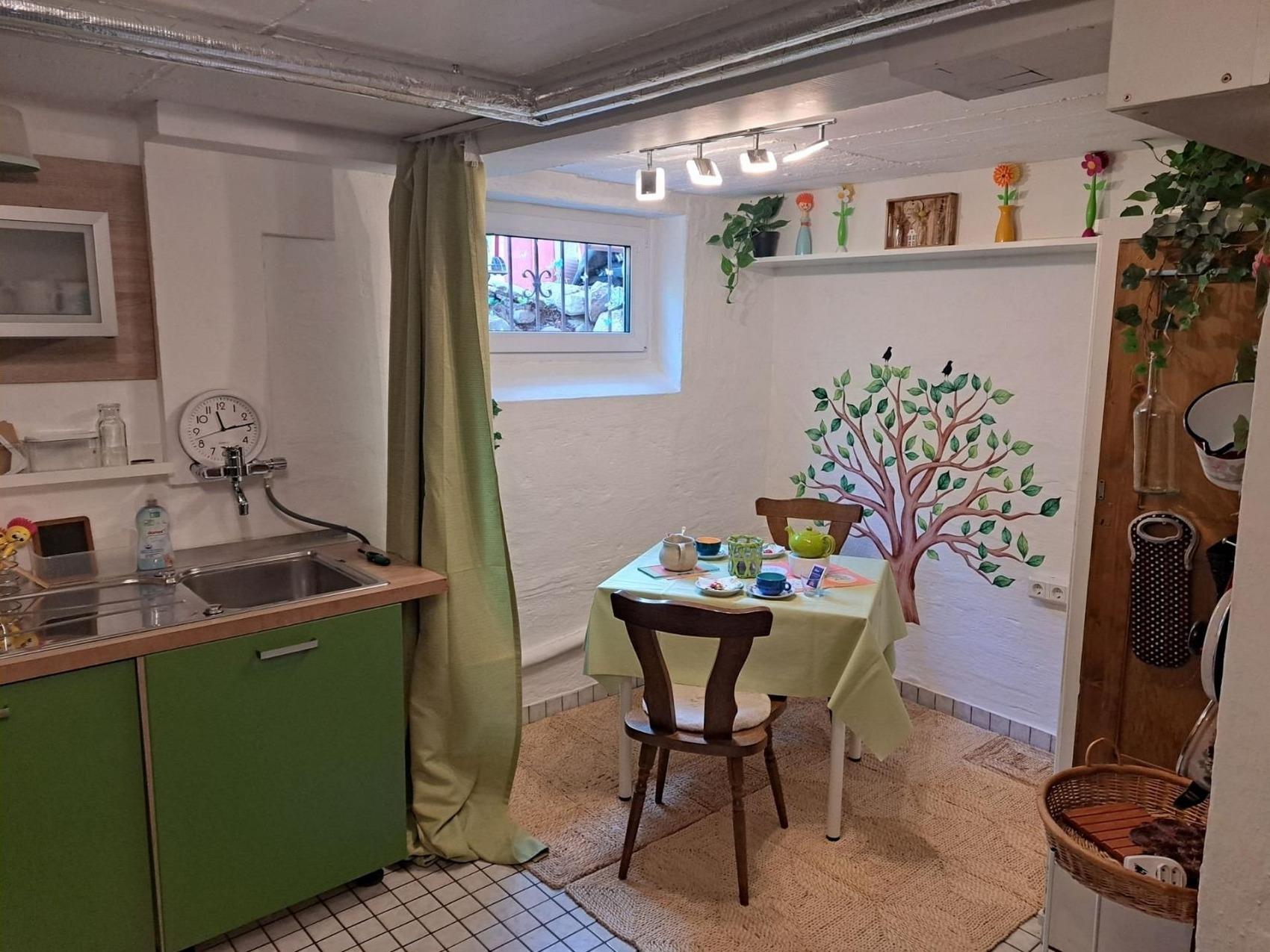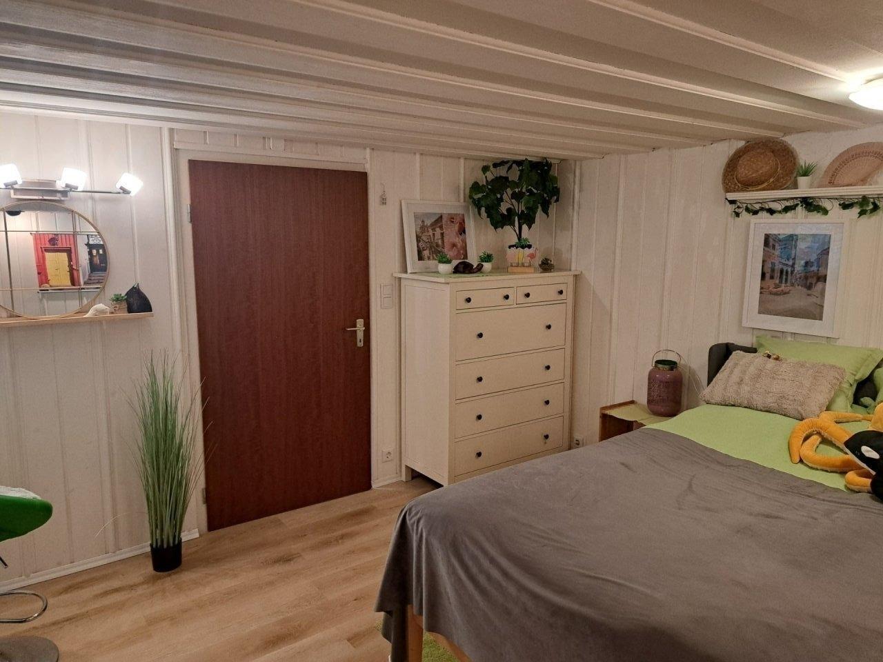 Vermietet wird eine Ferienwohnung in Niedernjesa Gemeinde Friedland südlich von Göttingen in Niedersachsen. Das Haus liegt in einer Sackgasse am Rande des Ortes. Die Wohnung haben wir frisch renoviert und liebevoll gestaltet. Jedes Zimmer hat ein Thema. Das Schlafzimmer Kuba, der Flur Frankreich und das Wohnzimmer Österreich und seine Berge.Als Schlafmöglichkeiten haben wir 1 Doppelbett, 1 Schlafsofa mit einer Liegefläche von 1 m und ein ausklappbares Schrankbett. Falls eine große Feier sein sollte, sie 5 Personen sind, dann ist es möglich, auch noch ein weiteres Bett aufzustellen. Das ist aber nur nach Anfrage möglich und nicht standardgemäß vorgesehen.Falls sie einen Kühlschrankauffüllservice brauchen, weil sie nur 1 Nacht da sind oder eine weite Anreise haben, dann ist dieser Service gegen einen Aufpreis möglich.Wir möchten, dass sie sich wohlfühlen.Wenn wir ihr Interesse geweckt haben und sie noch Fragen haben (v.a. wenn sie Haustiere haben), dann kontaktieren sie uns bitte.Mit dem Fahrrad ist man in 20 min im Zentrum und in 30 min in der Uniklinik.Die Busse fahren 1 mal die Stunde, in den Stoßzeiten auch 2 mal.Mit dem Auto braucht man 5-7 min um in jeder Richtung einkaufen gehen zu können und um auch im Zentrum zu sein.Bis zur Autobahn A7 und A 38 fährt man in 7 min.Gleich in der Nähe ist ein Stausee zum Baden. Hier kann man mit dem Auto in 3 min sein, zu Fuß in 15 min.Sollten Sie vorab Fragen haben, können Sie mir gern eine Mail an lianehenke29(at)gmail.com senden.Freizeitvorschläge:Rosengarten in ReinhausenForum Wissen in GöttingenStadtführungen in Deutsch und EnglischWaldspaziergänge am Kehr in Göttingender Seeburger Seeder SollingBadeparadies EiswieseBowlingmöglichkeit in Göttingen und HeiligenstadtVitalpark EichsfeldthermeHerkules in KasselSchmetterlingspark in UslarP.S. Museum in EinbeckTretbootfahren auf dem KiessseeZiegentrekking in WitzenhausenGhostmobil vom Escape Room - eine Tour duch Göttingen (die Stadt kennenlernen mal anders)