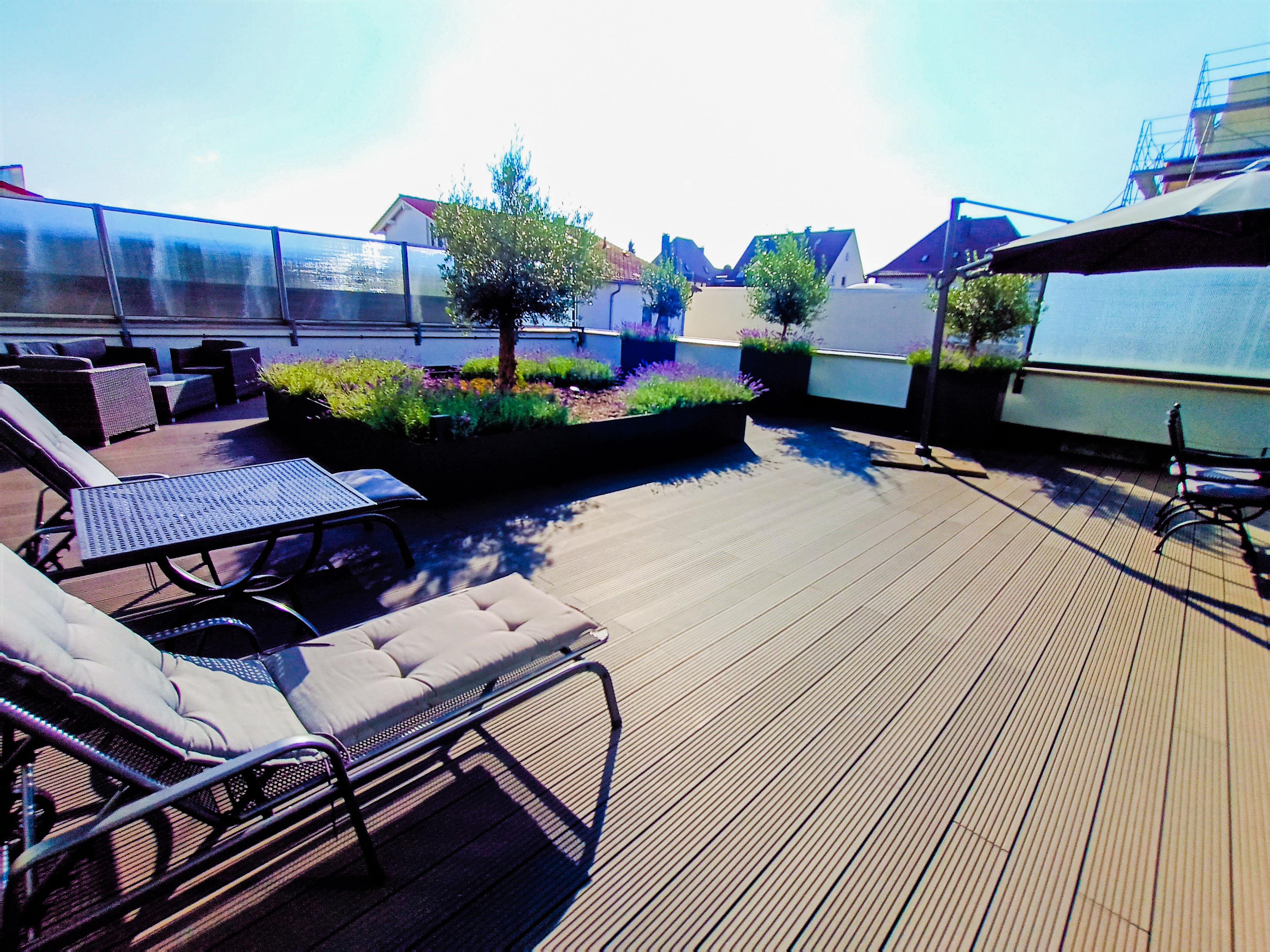 Auf der großen Dachterrasse besteht die Möglichkeit bis 22:00 Uhr zu verweilen und die Sonne zu genießen.