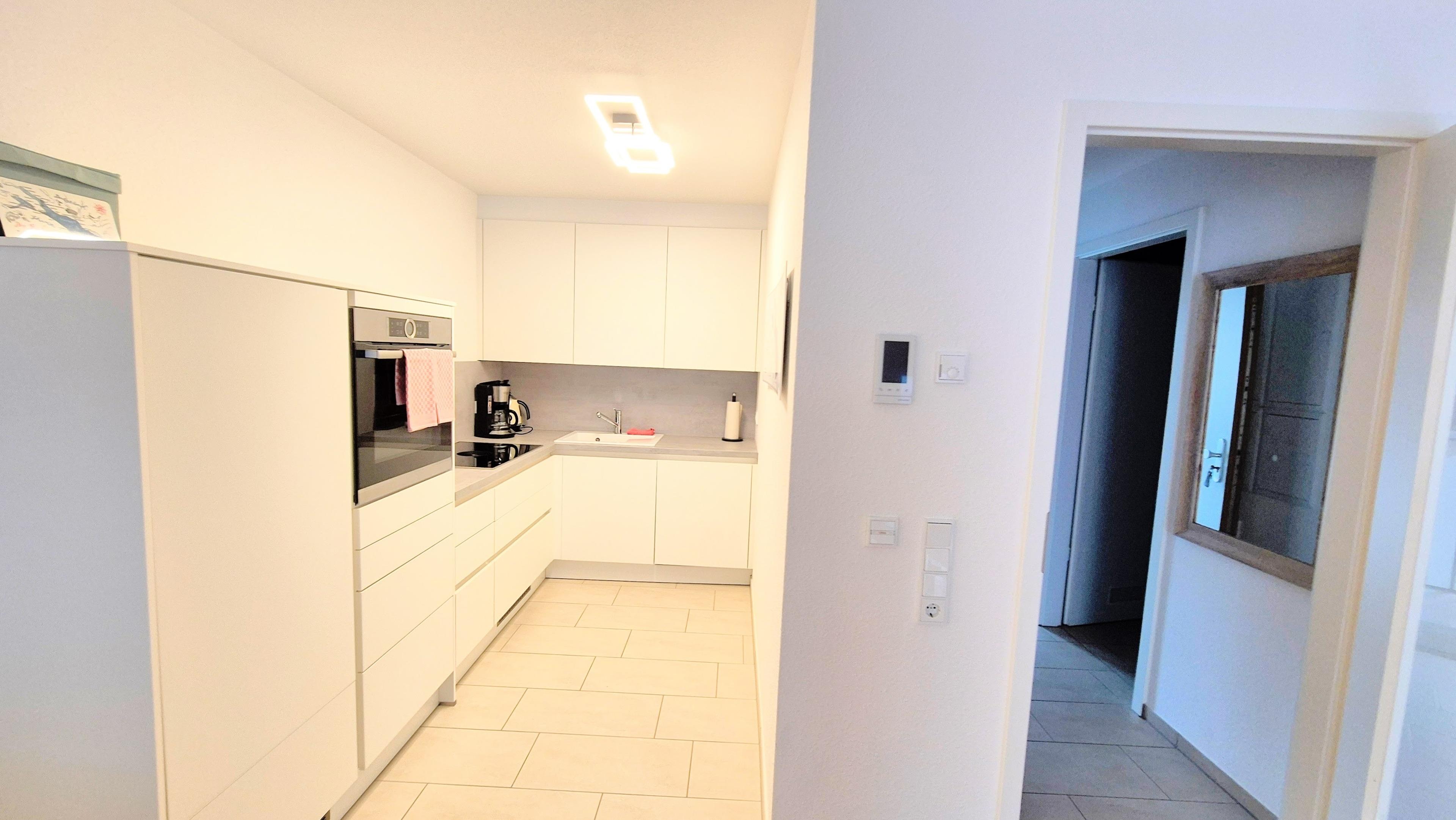 Die Wohnung liegt in einem Mehrfamilienhaus mit Tiefgarage, Aufzug und Fahrradkeller. Gleich um die Ecke die Tourist Information Friedrichshafen und der Bahnhof sowie Busbahnhof mit Flixbusanbindung.