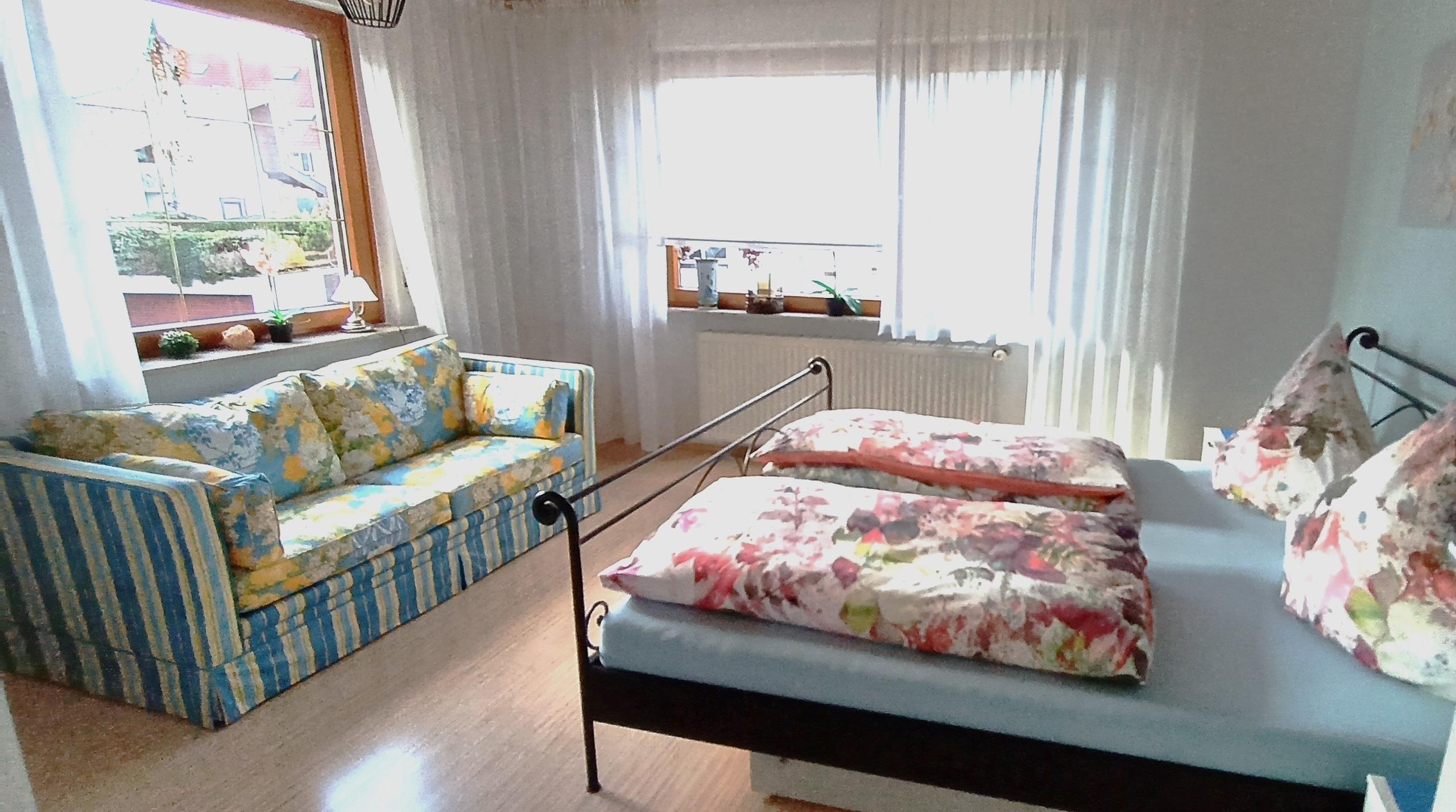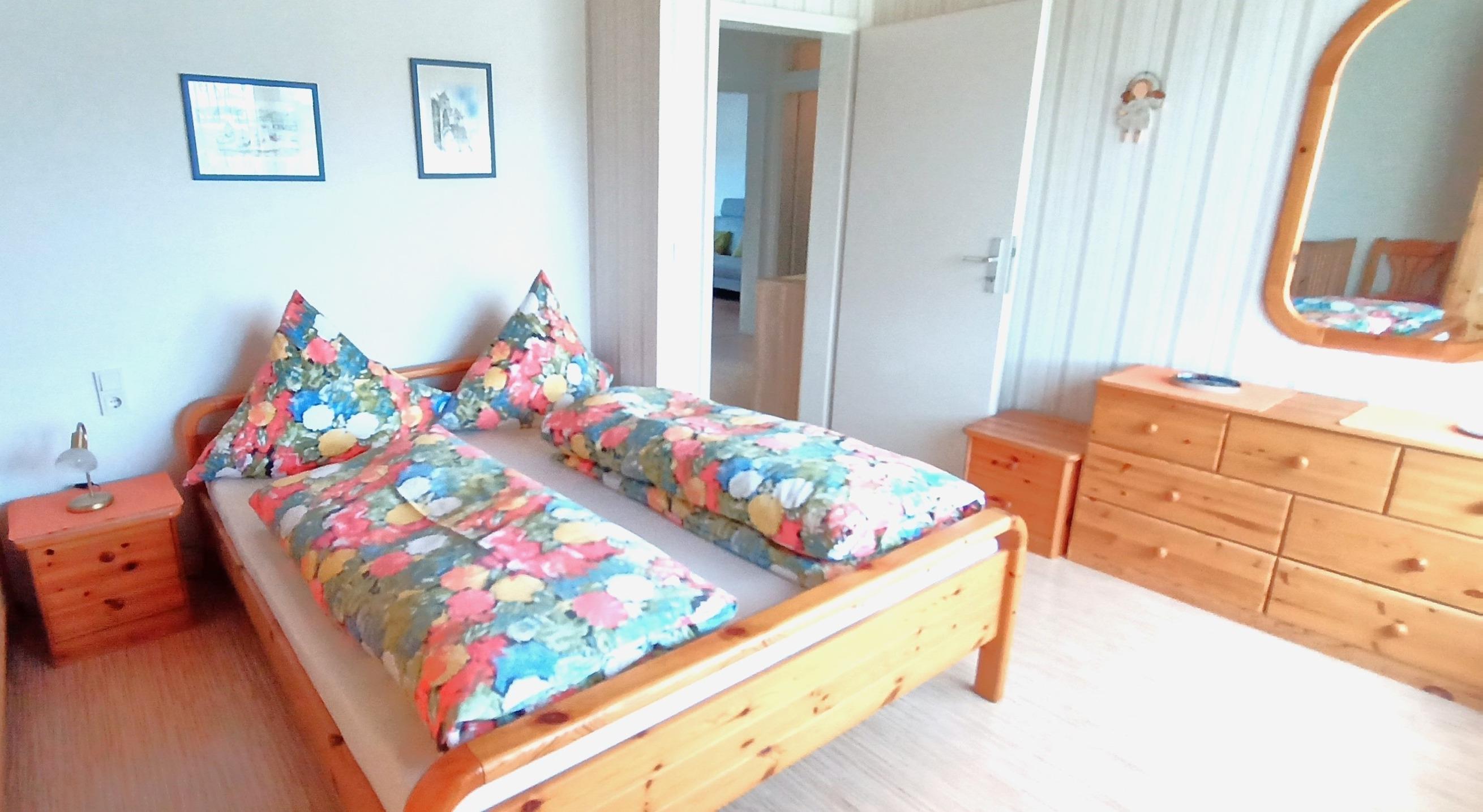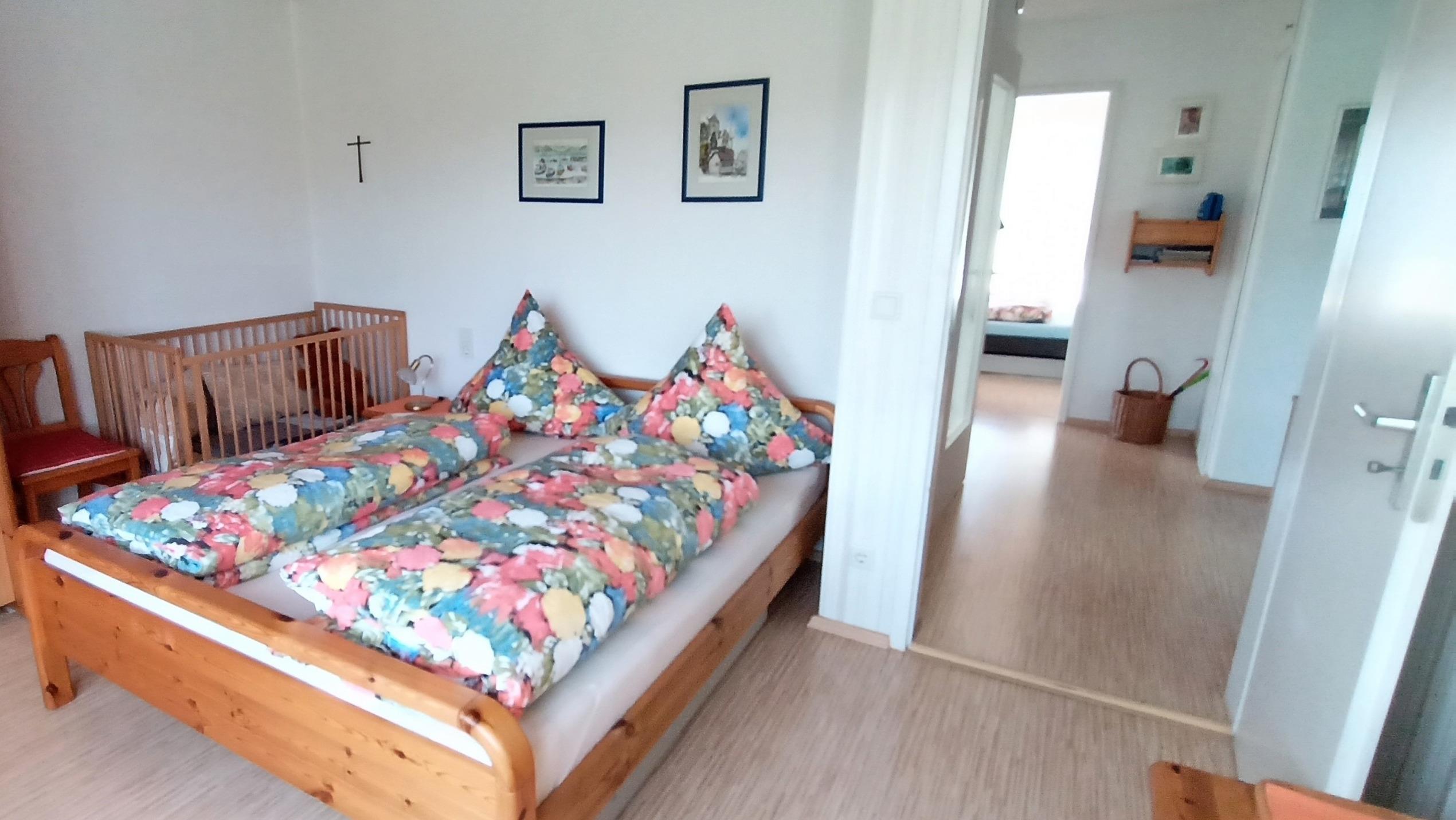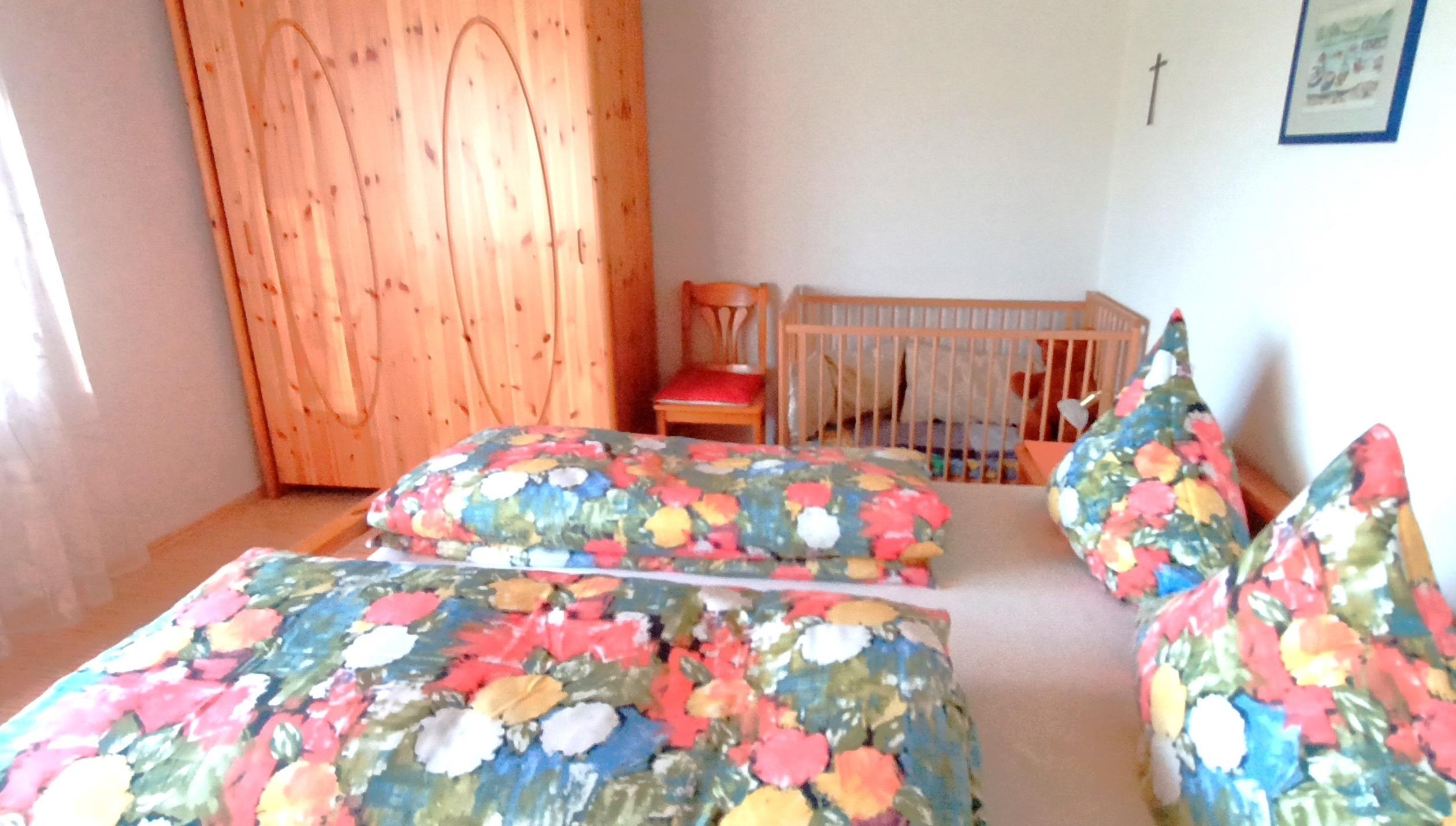 Gemütliche 3-Zimmer-Ferienwohnung mit zwei separaten Schlafzimmern - jeweils mit Doppelbett ausgestattet, separate Küche, Wohnzimmer mit Balkon, Badezimmer mit Dusche sowie separates WC. Im ersten Schlafzimmer ist eine Schlafcouch für ein Kind bis 12 Jahre - im zweiten Schlafzimmer steht ein Kinderbett für Kinder bis 3 Jahre.