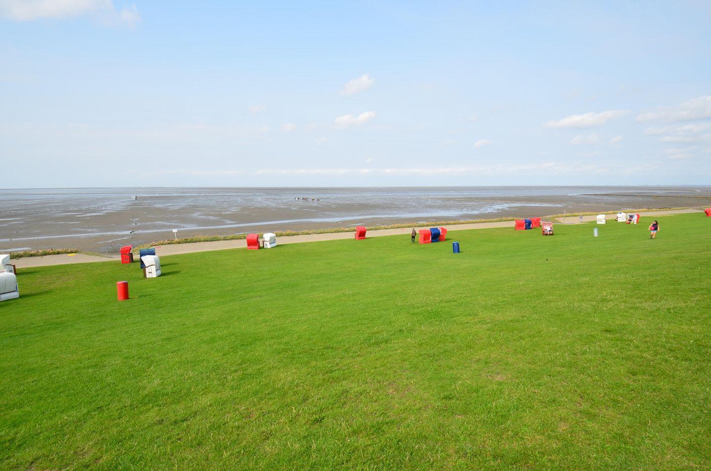 Grüne Marschwiesen wechseln mit ausgedehnten Kohlfeldern, endlose Deichlinien begrenzen den westlichen Horizont, weite Blicke wandern über Watten und Fluten. Hier, auf Böden, die in Jahrhunderten mühseligen Kampfes dem "Blanken Hans", der oft stürmischen Nordsee, abgerungen wurden, liegt auch ihr Urlaubsort.