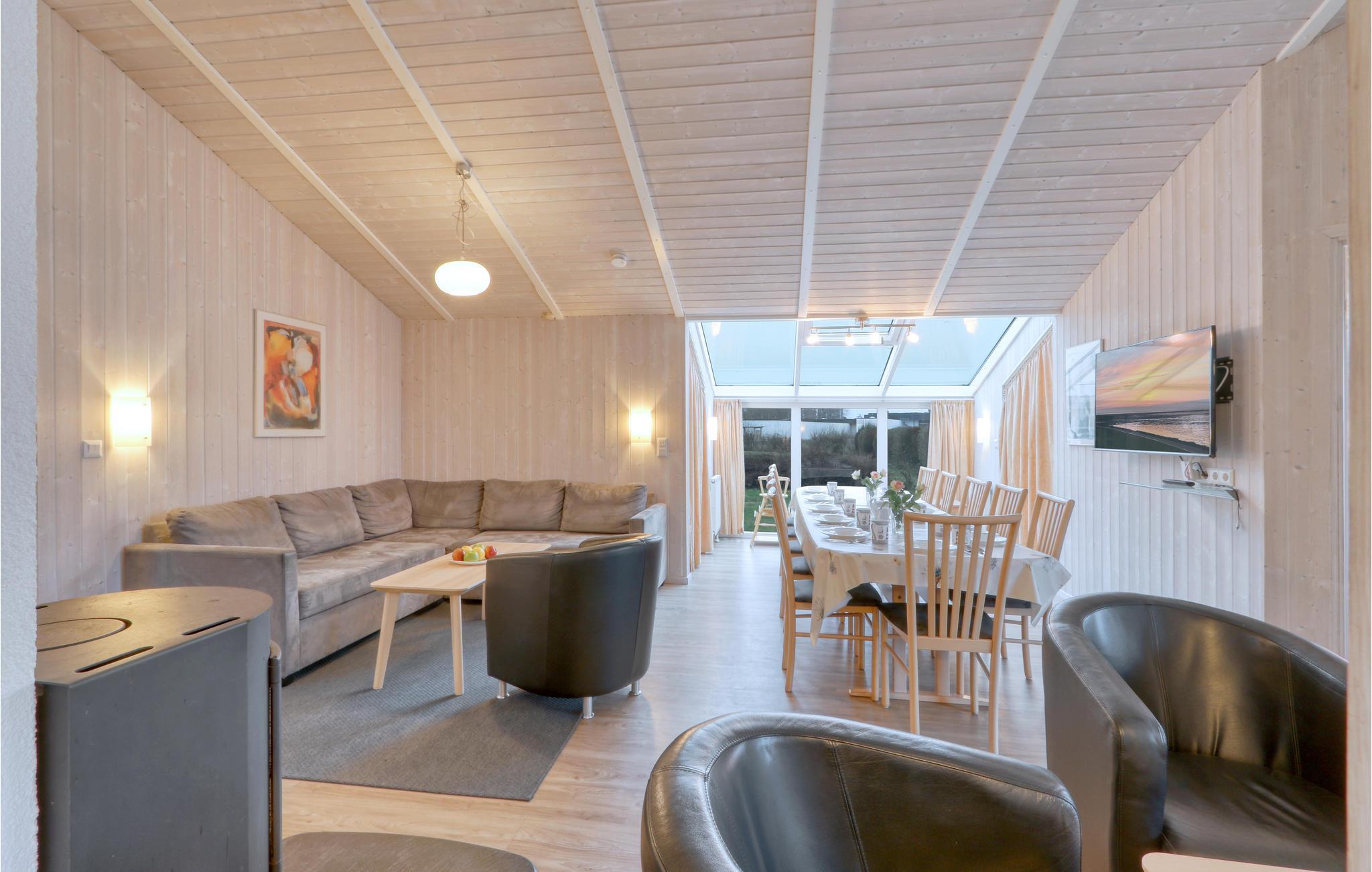 Hvis I vil holde ferie i komfortable omgivelser langt væk fra byliv, så er dette et oplagt valg. Dette store hus er ideelt indrettet til otte voksne og fire børn, I alkoven er der god plads at sove på til ’de store’. Huset kan anbefales til ferie året rundt: i whirlpoolen og saunaen er det skønt at slappe af efter en lang spadseretur på stranden, ligesom den hyggelig brændeovn indbyder til fordybelse i en snak eller i en dejlig feriebog.