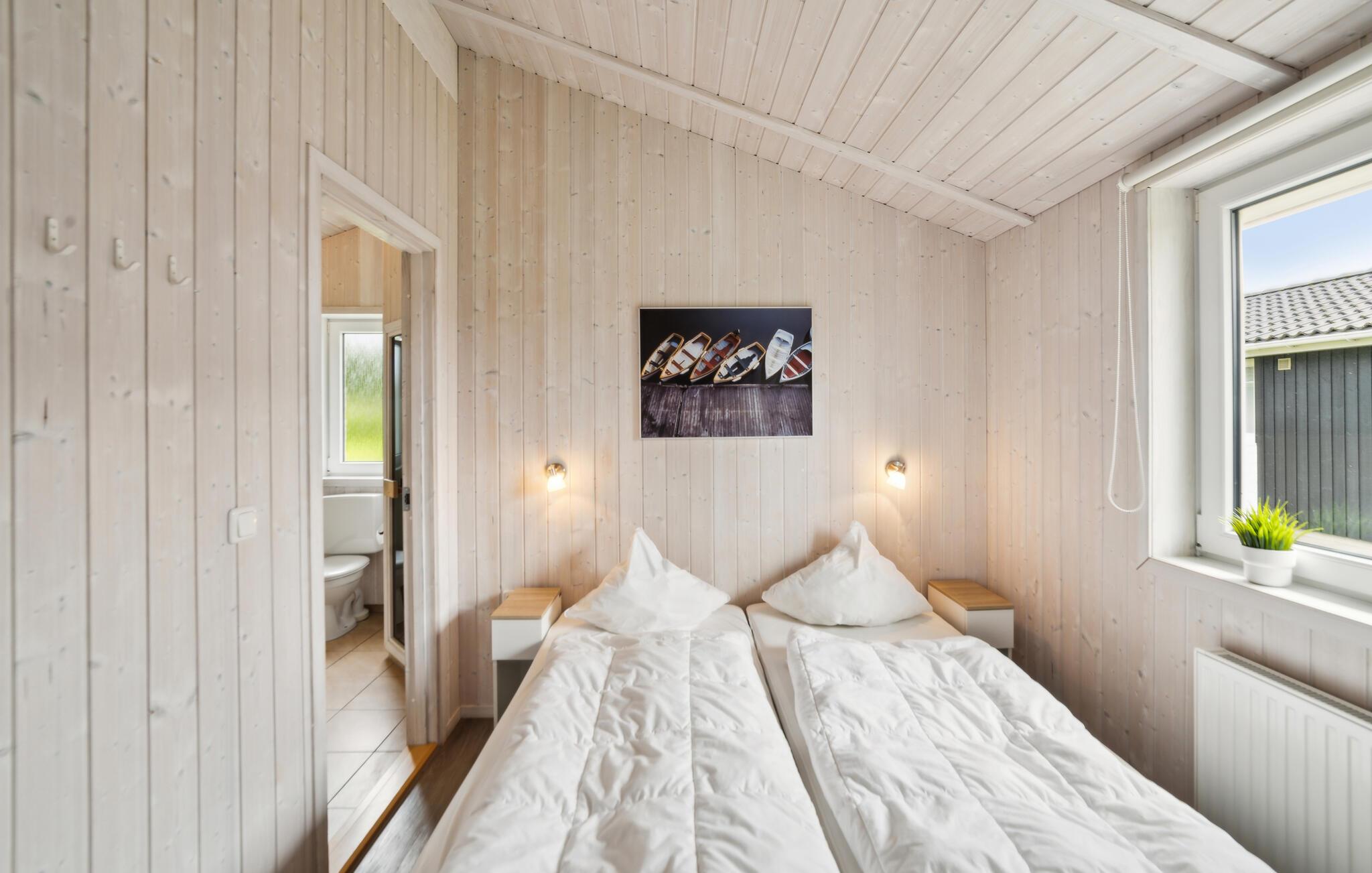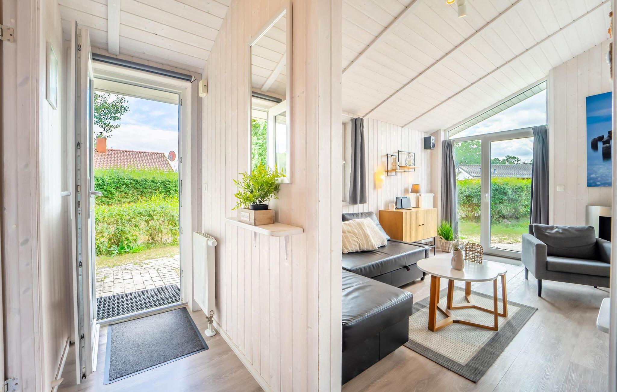Det fuldt udstyrede åbne køkken er oplagt til hyggelige madlavningssessioner med familien. Jeres private terrasse lægger op til lange solbadninger, grillmiddager eller en afslappet morgenmad med duftende rundstykker. En udtræksskærm giver privatliv. Takket være en sovesofa i stuen kan huset rumme op til seks personer. Selv de mindste er tænkt på, da en barneseng og højstol er tilgængelige gratis.