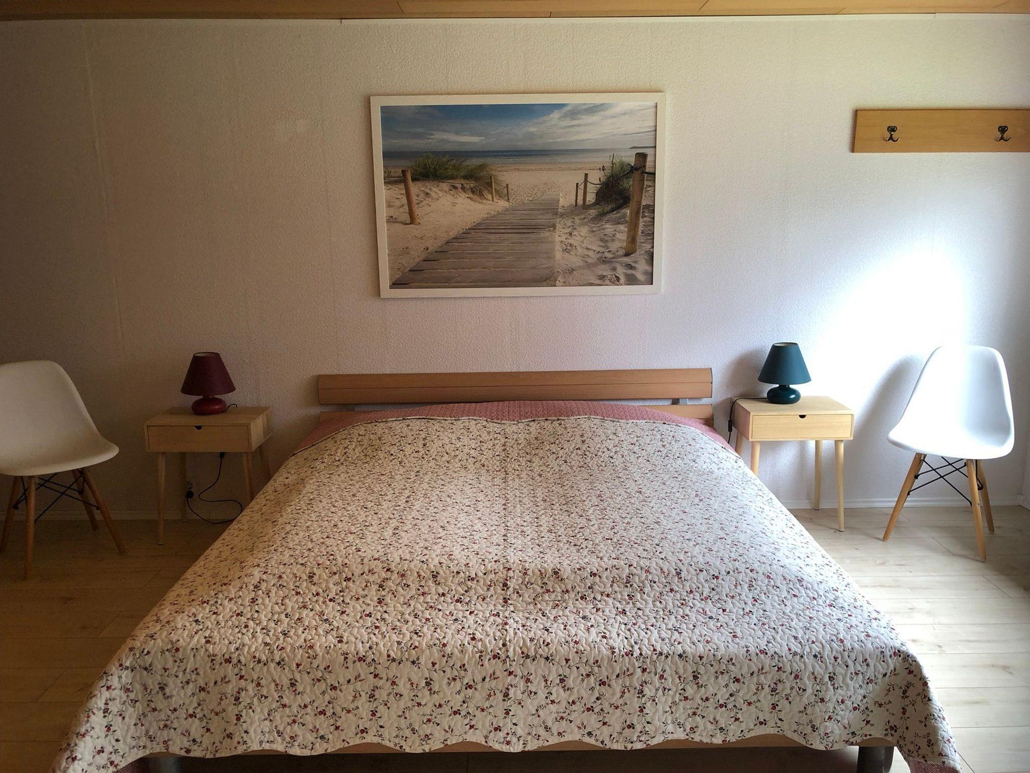 Das große Schlafzimmer im Erdgeschoss bietet ein Doppelbett (180 x 200 cm), einen großen Kleiderschrank mit 6 Türen und 4 Schubladen sowie ausreichend Ablageflächen und Hakenleisten für Ihre Kleidung.