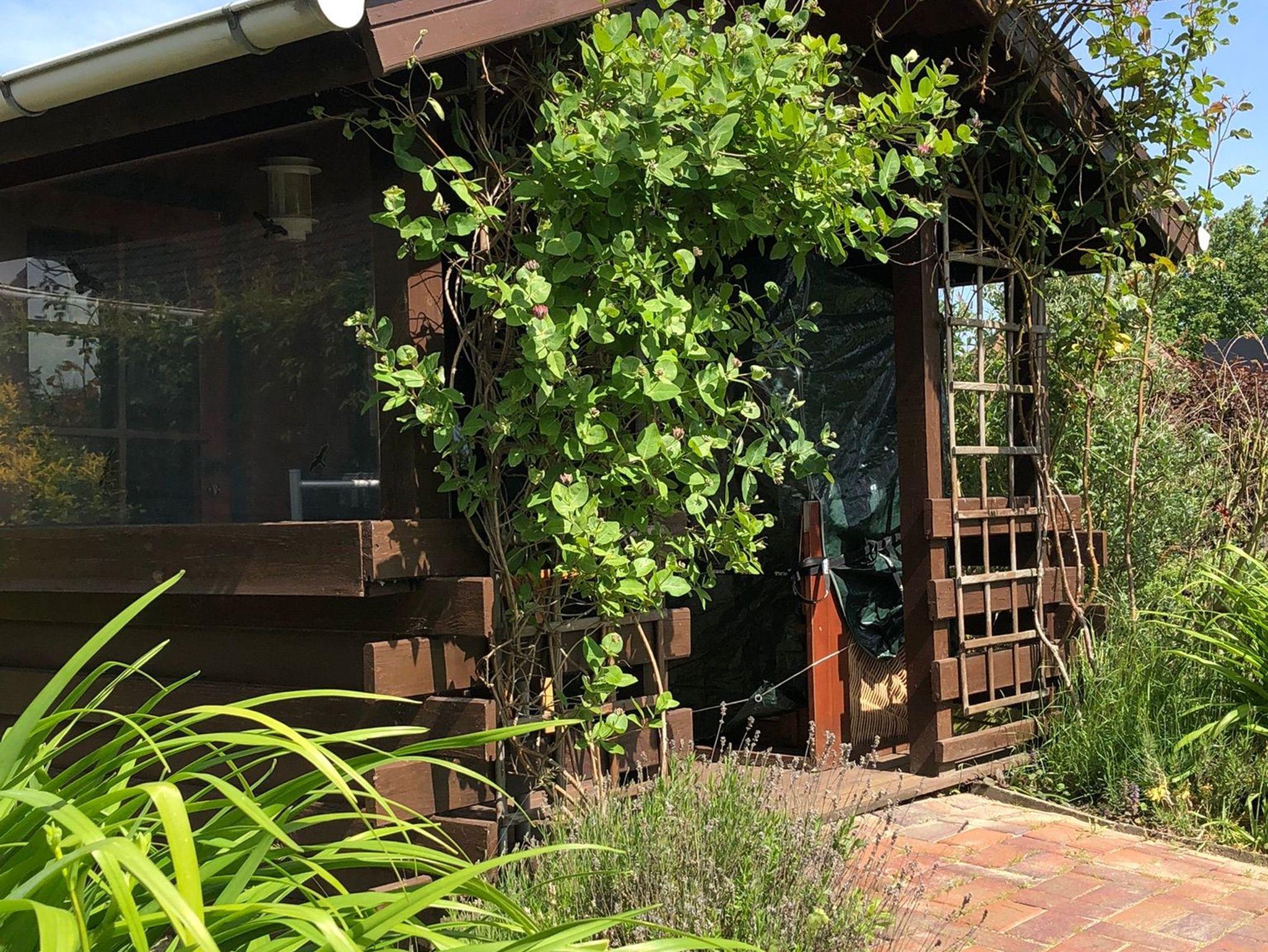 In dem schönen, großen, rundum abgeschlossenen Garten befinden sich ein rustikal möbliertes Gartenhaus, ein Strandkorb sowie Gartenmöbel. In einem weiteren Teil des Gartens finden Sie eine Sitzecke mit Feuerschale zum gemütlichen Zusammensein. Ein Grill ist vorhanden.