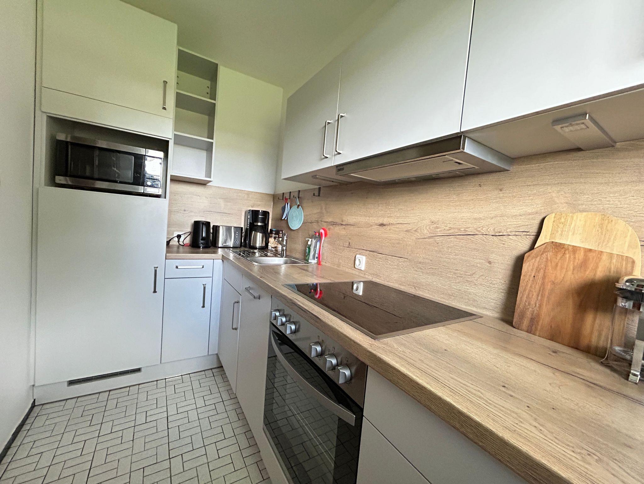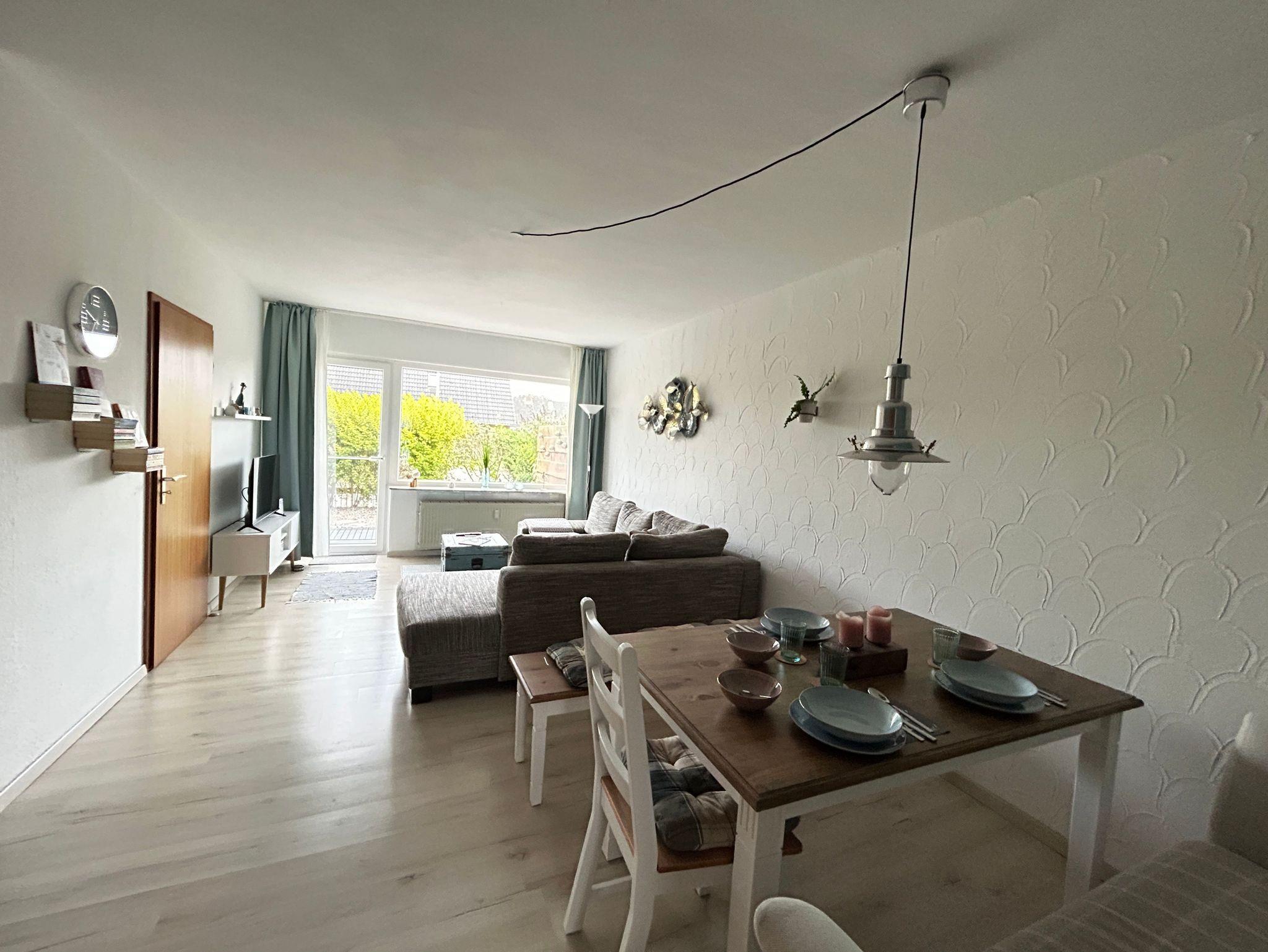 Sie befindet sich im EG eines Mehrfamilienhauses und hat eine voll ausgestattete Küche, einen großen Wohn- und Essbereich, ein Duschbad sowie ein separates Schlafzimmer.