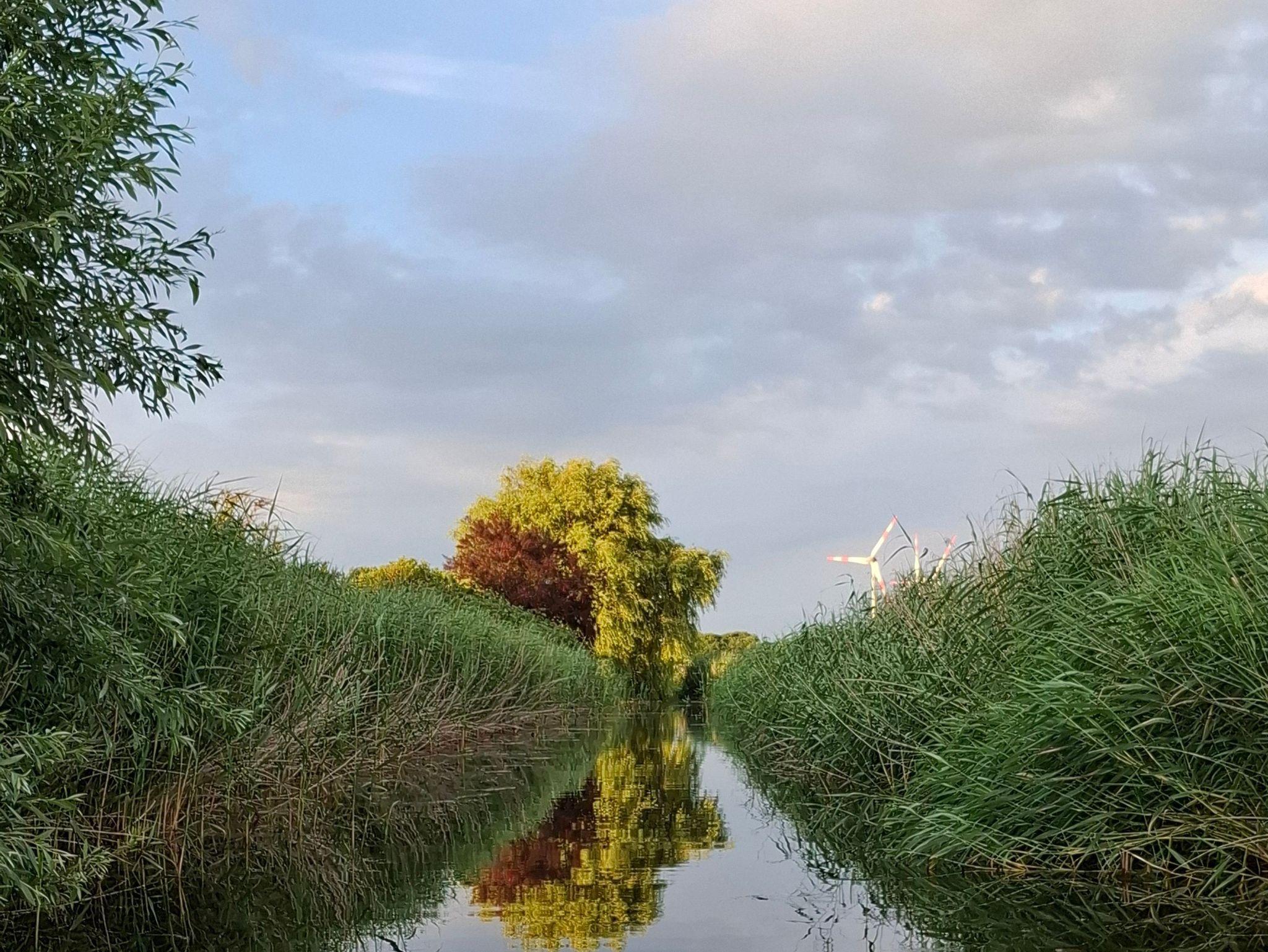 Ruhige, sonnige Terrasse direkt am Fleet, umgeben von Obstbäumen und Natur