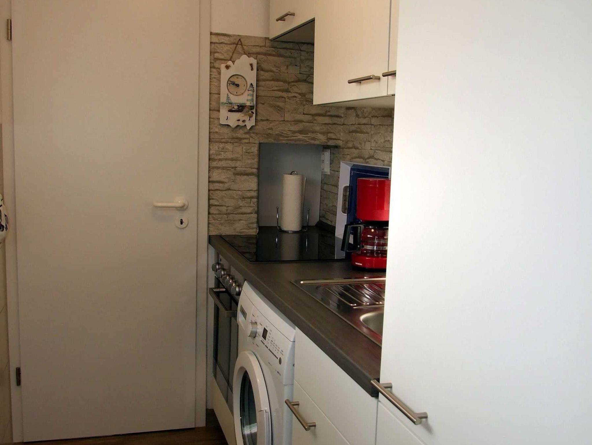 • Einbauküche mit Mikrowelle und Waschmachine