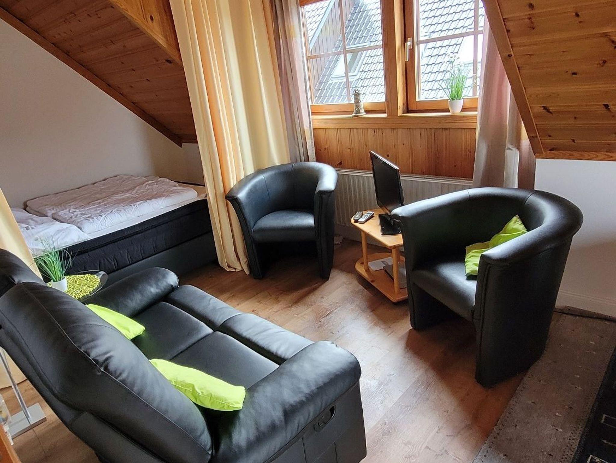 Dachgeschoss, bis drei Personen, ca. 45 m² große, gemütliche Wohnung mit Kieferndecken. In der Wohnung befinden sich Flur, gemütlicher Wohn-/Schlafraum mit Essecke, Badezimmer mit Wanne, separate Küche mit Einbauküche.